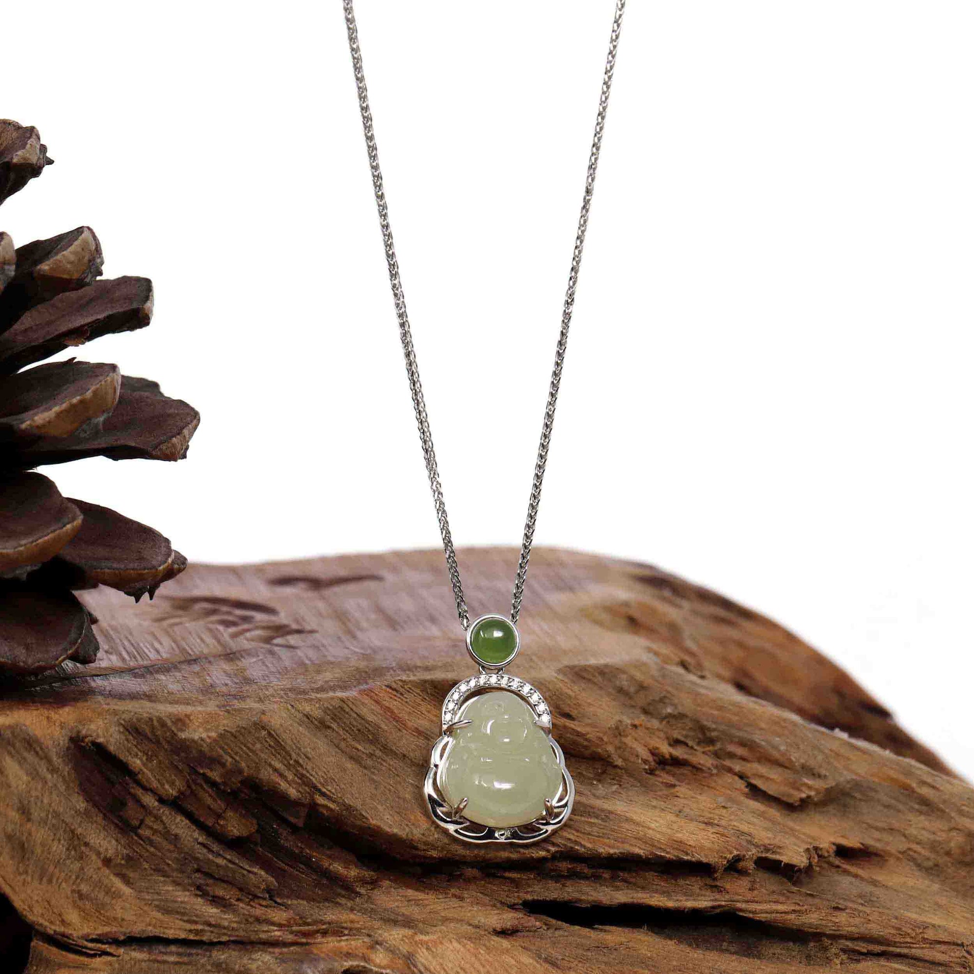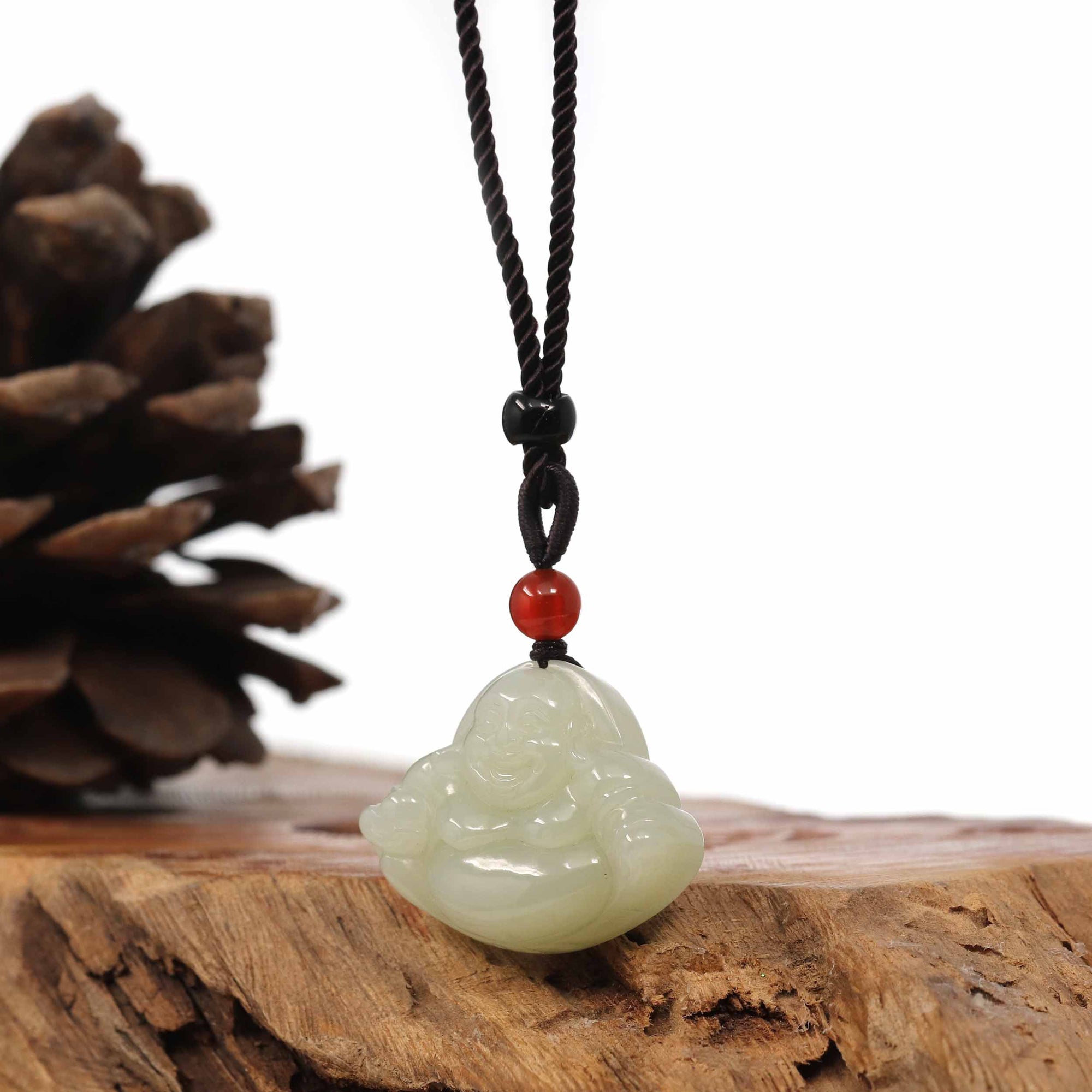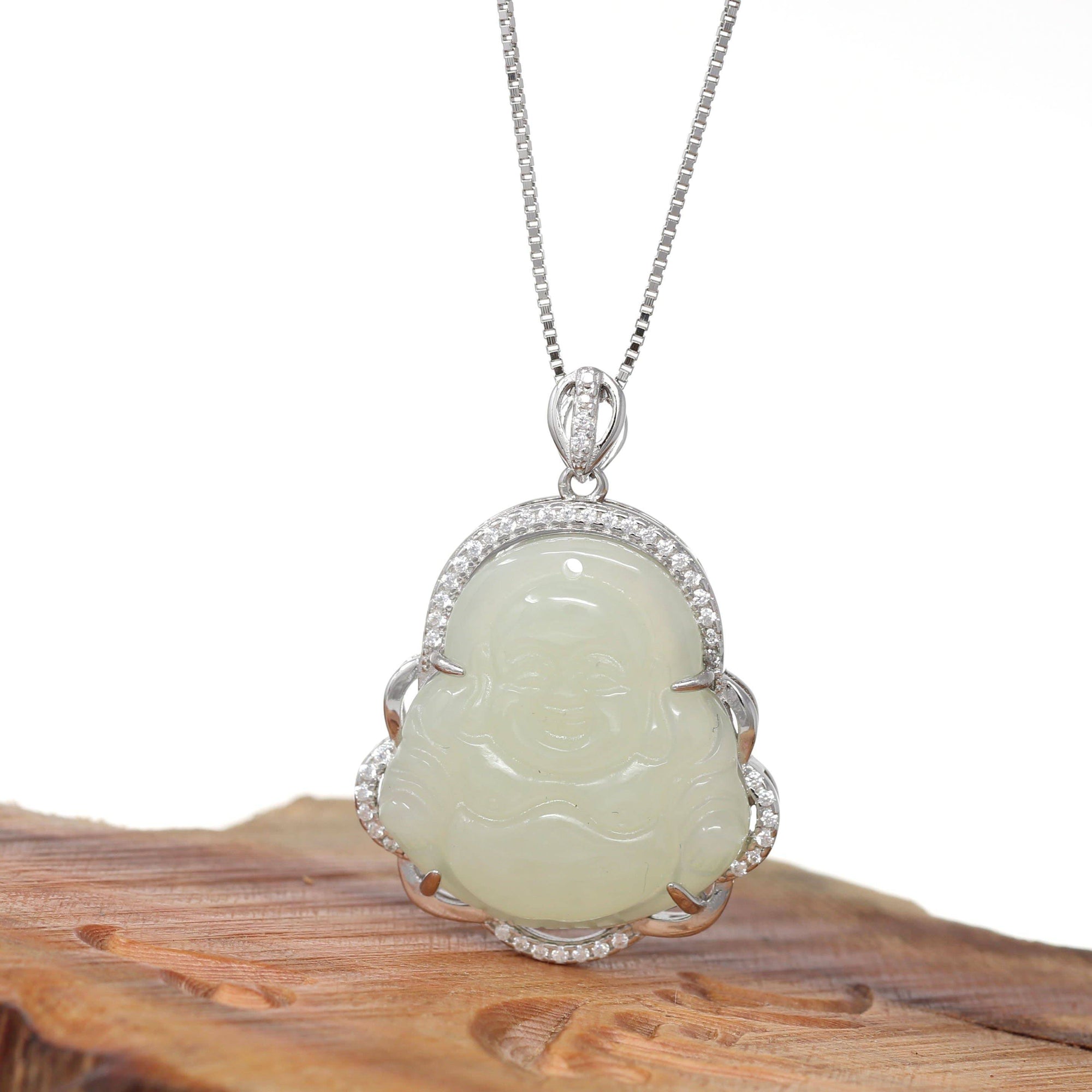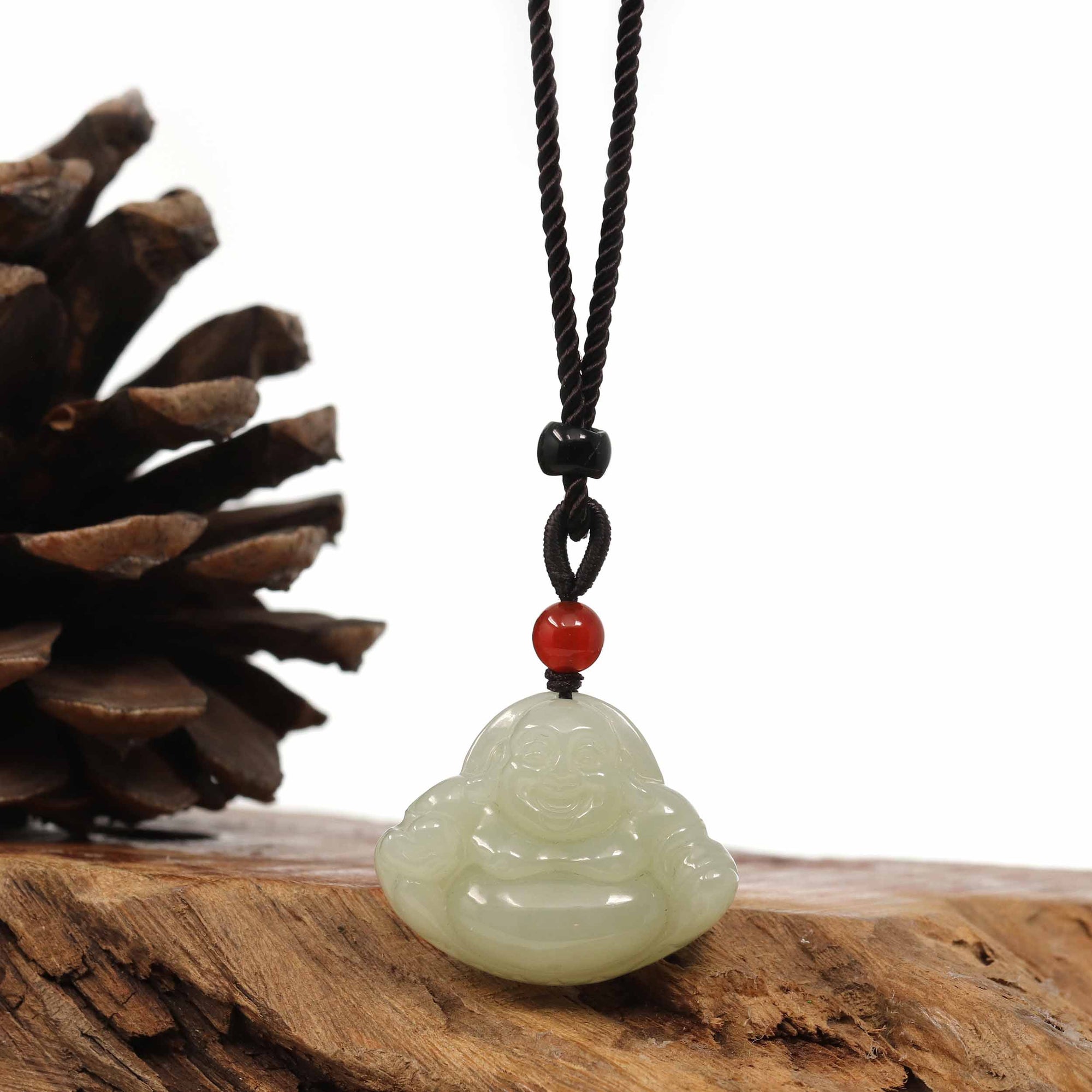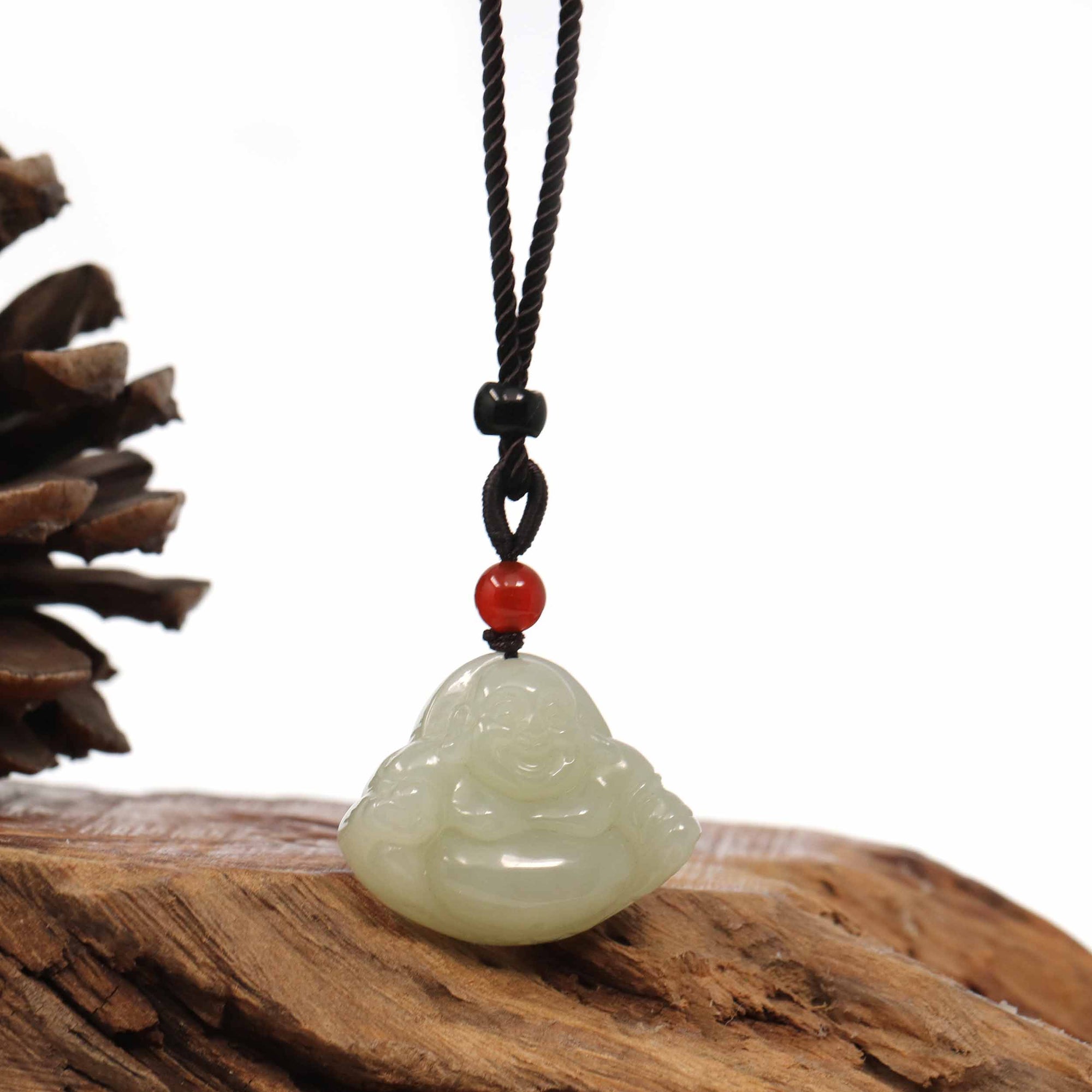 Baikalla™ "Laughing Buddha" Genuine Nephrite White Jade (high quality) Buddha Pendant Necklace