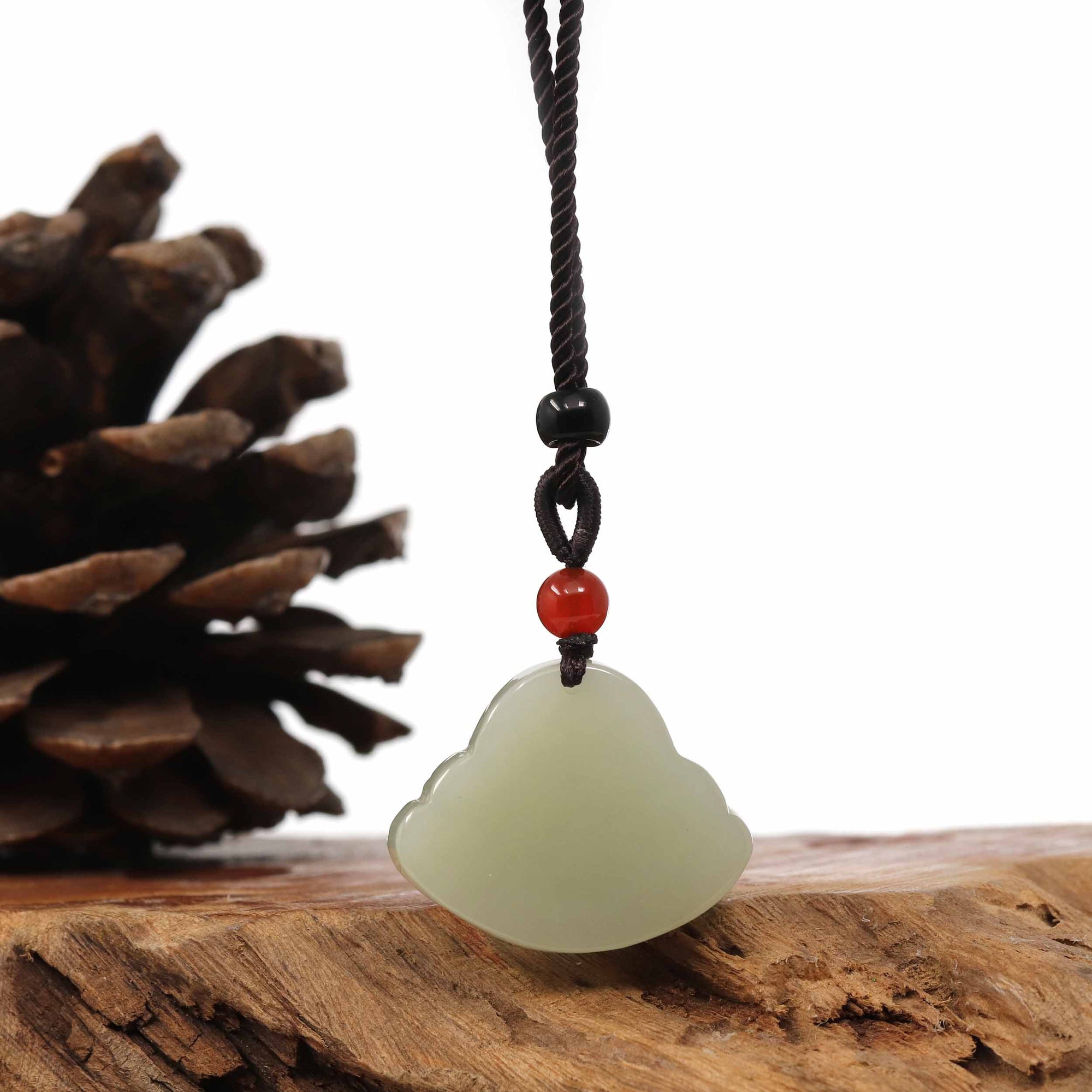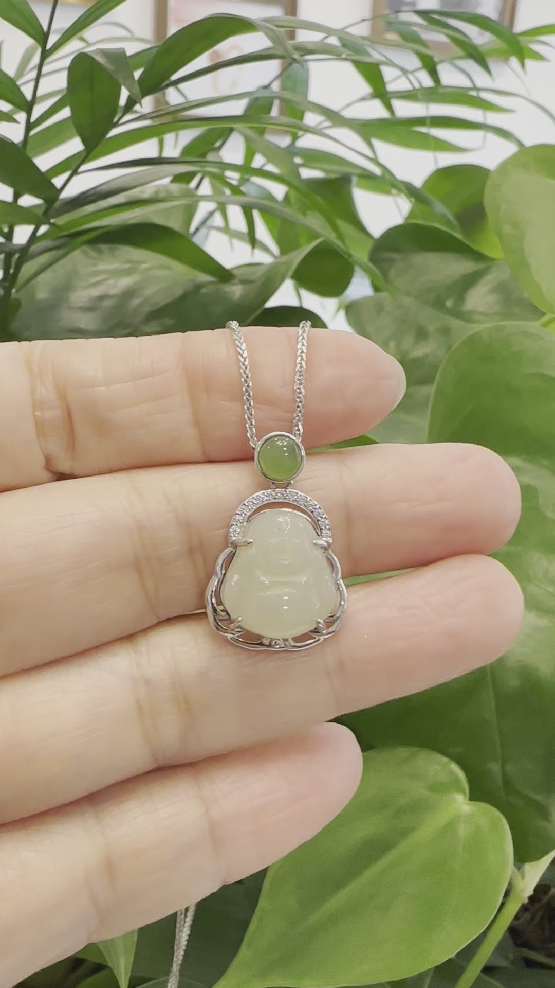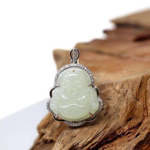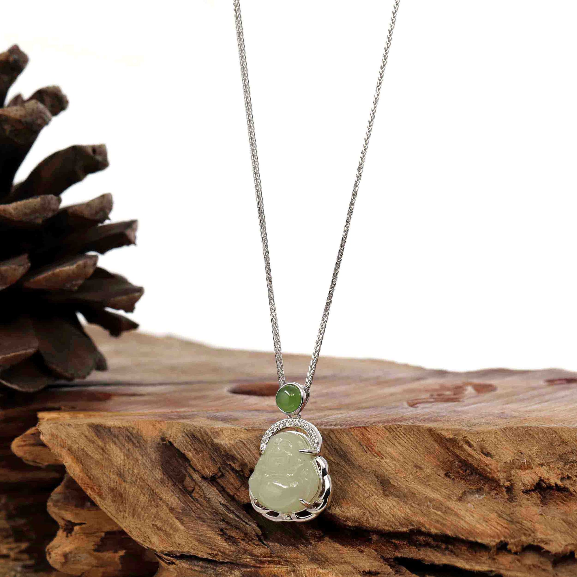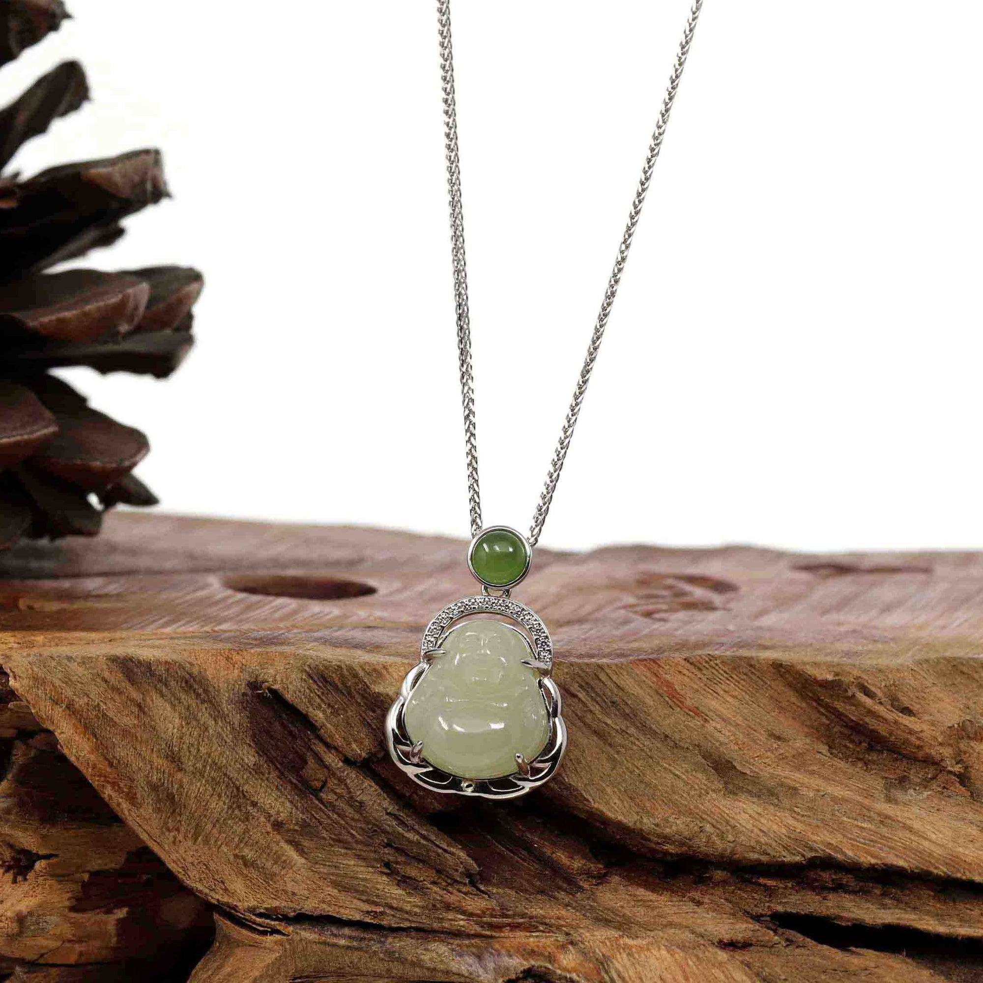 Baikalla™ "Laughing Buddha" Genuine Nephrite White Jade (high quality) Buddha Pendant Necklace
