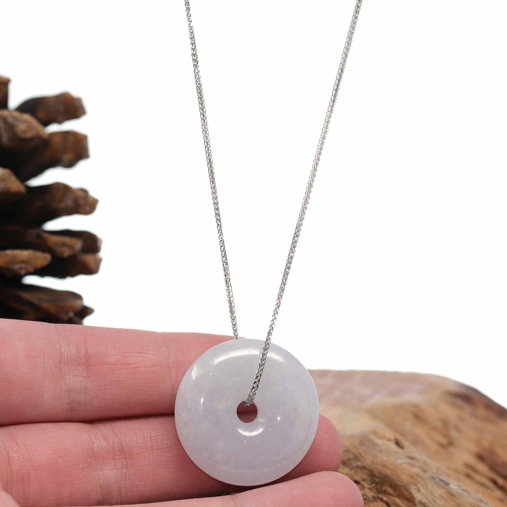 Baikalla™ "Good Luck Button" Necklace Real Lavender Jade Lucky KouKou Pendant Necklace