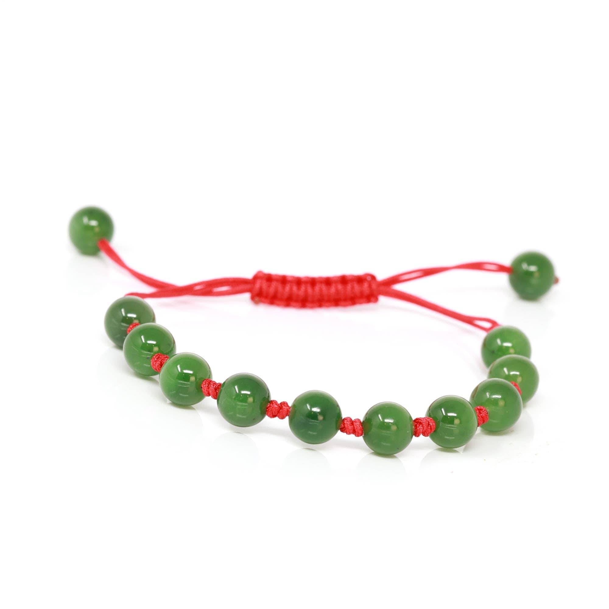 Baikalla 5 in Baikalla Natural Nephrite Jade Bead Bracelet With Red String