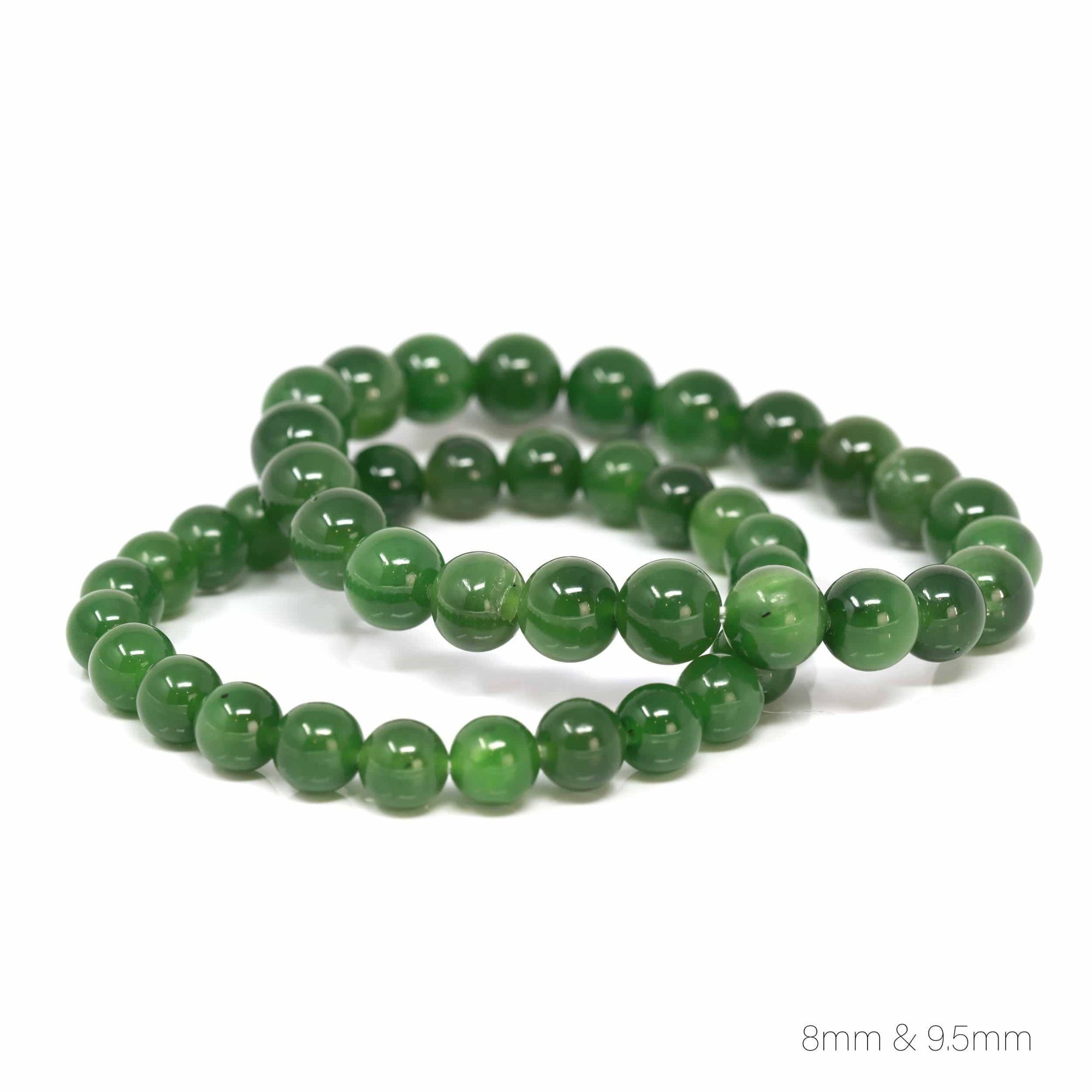 Baikalla™ "Classic Jade Stud" 14K Gold Genuine Nephrite Green Jade Beads (high quality) Earrings