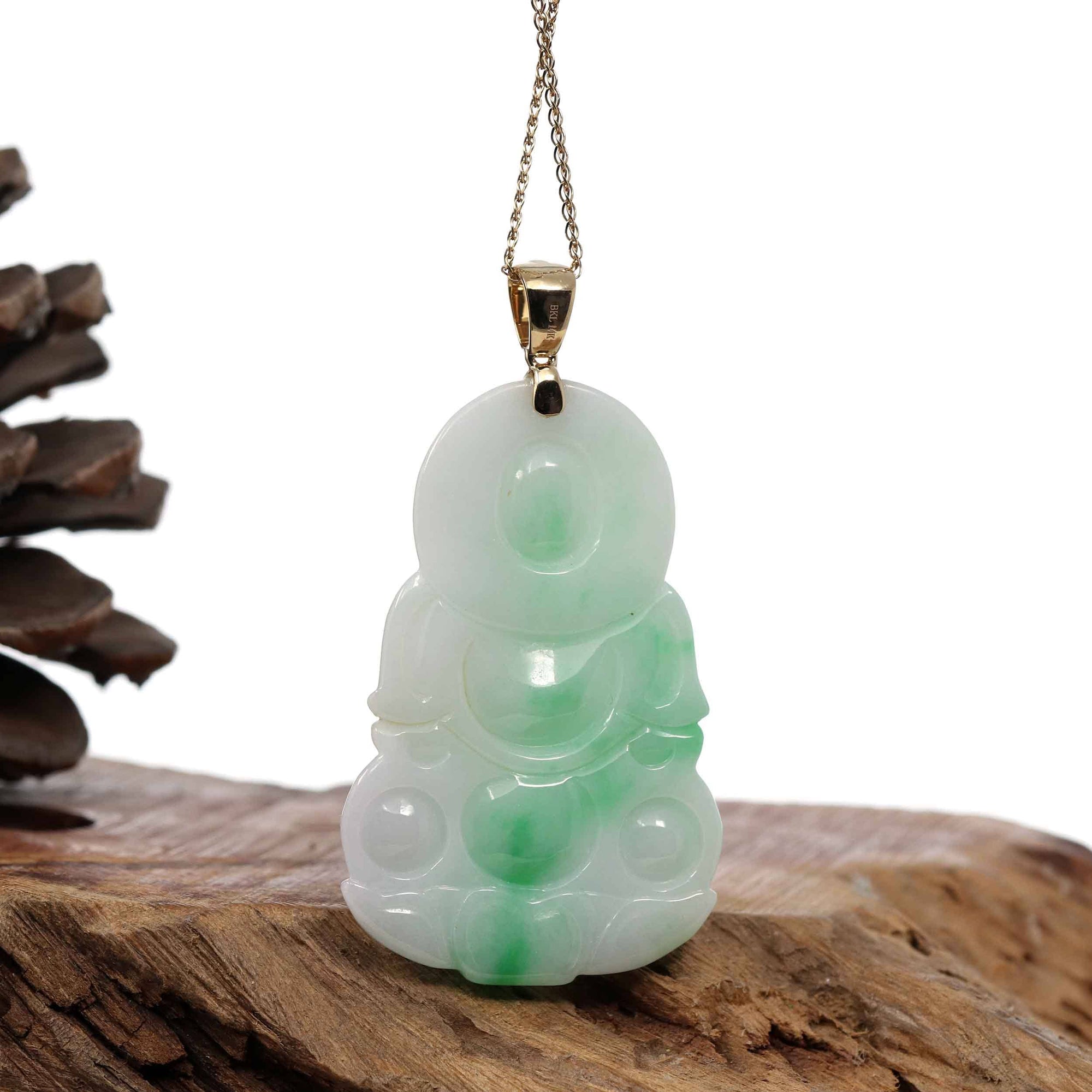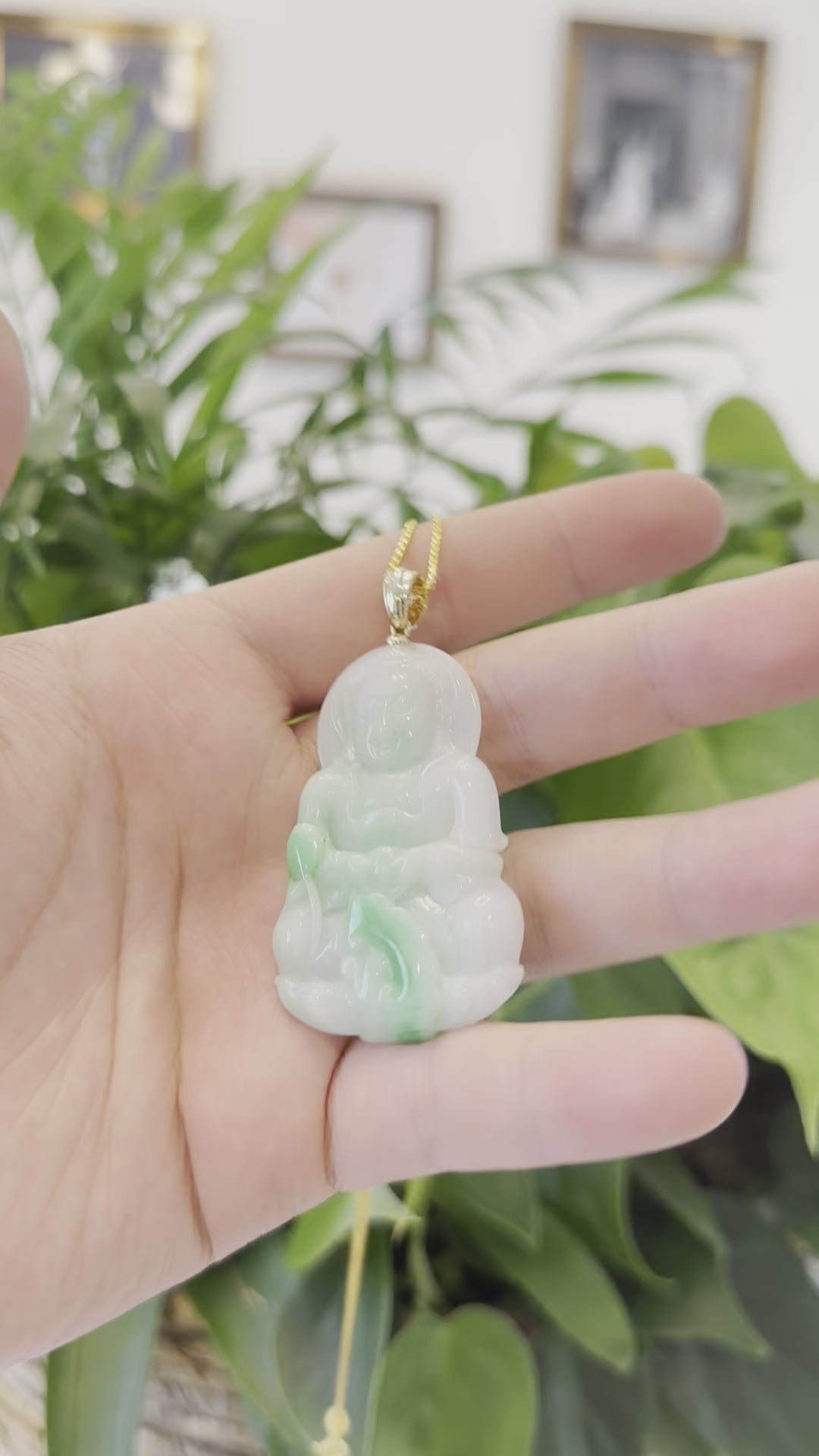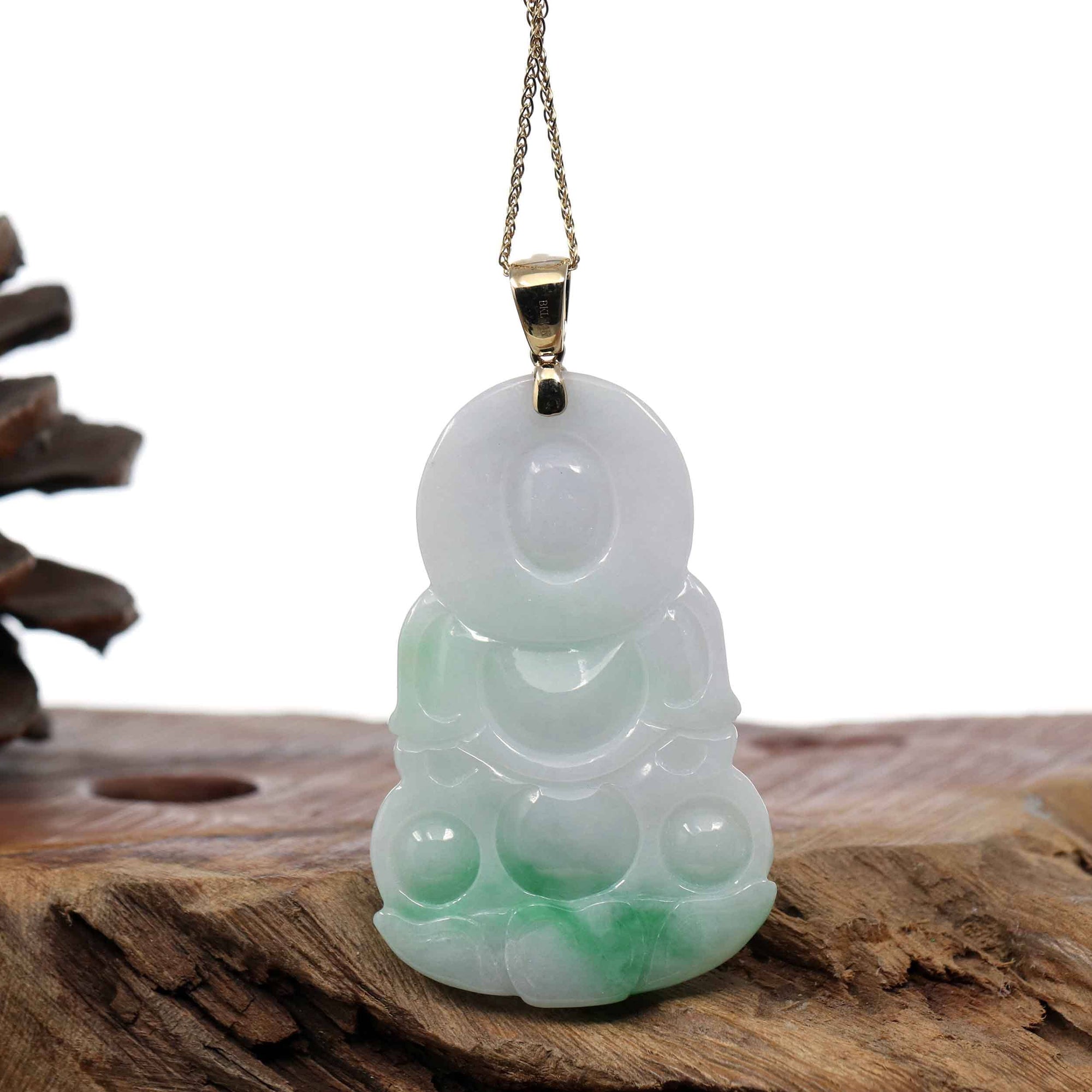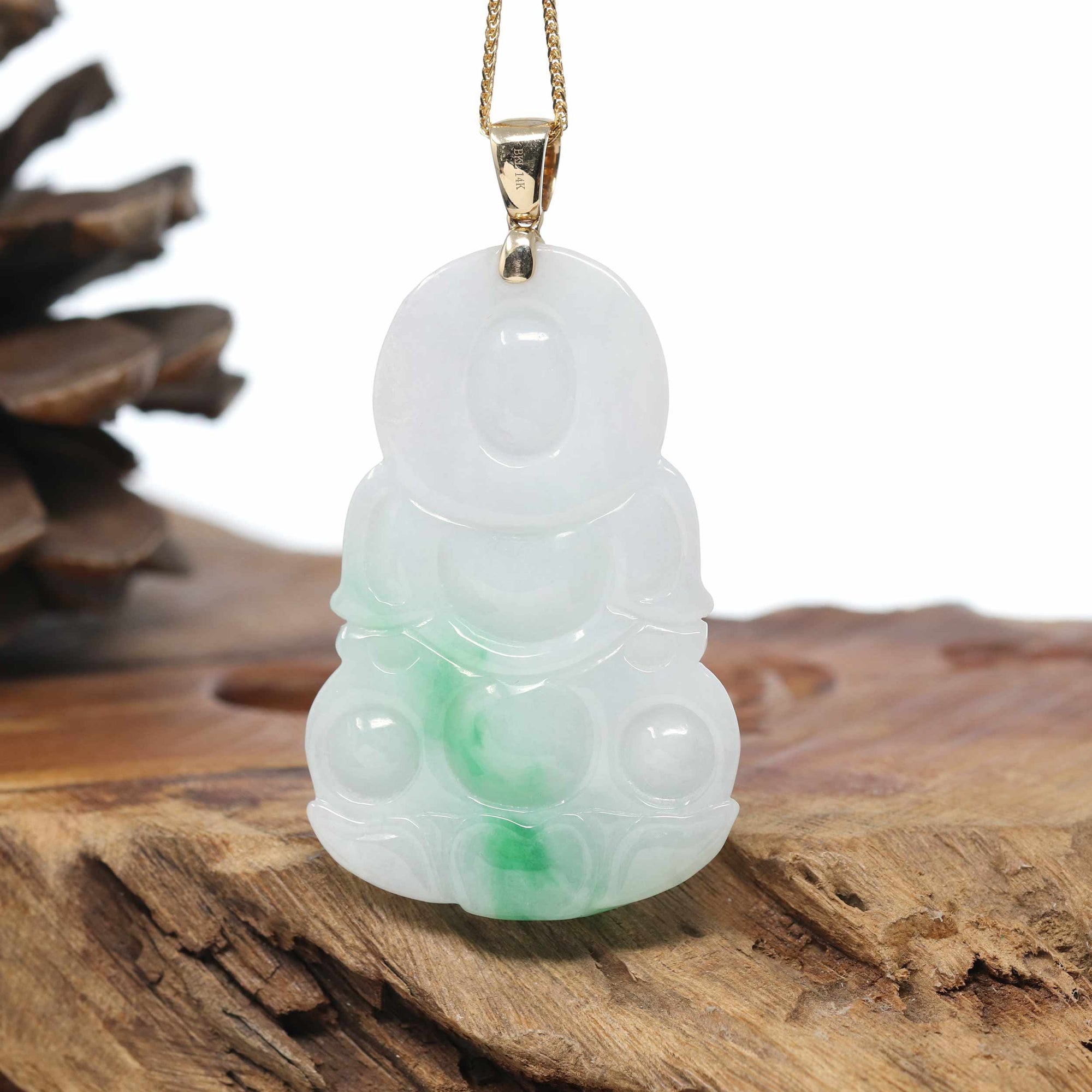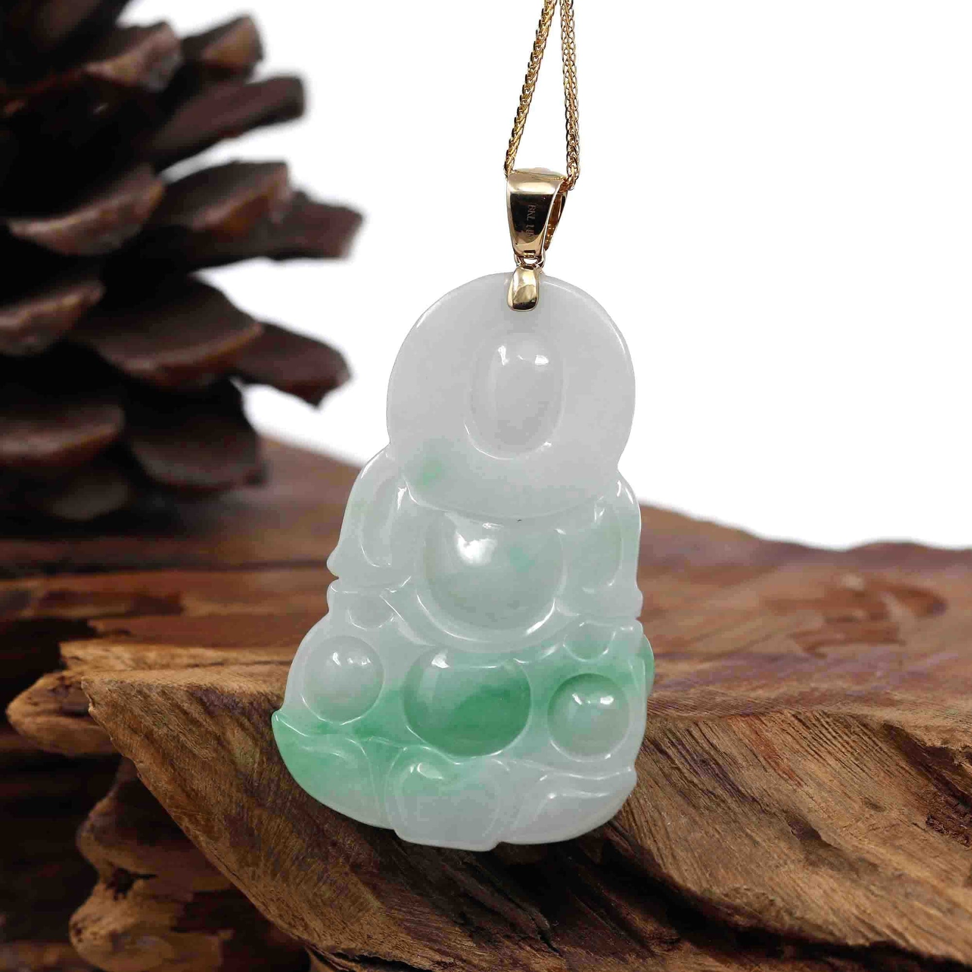 Goddess of Compassion" 14k Yellow Gold Genuine Burmese Jadeite Jade Guanyin Necklace With Good Luck Design
