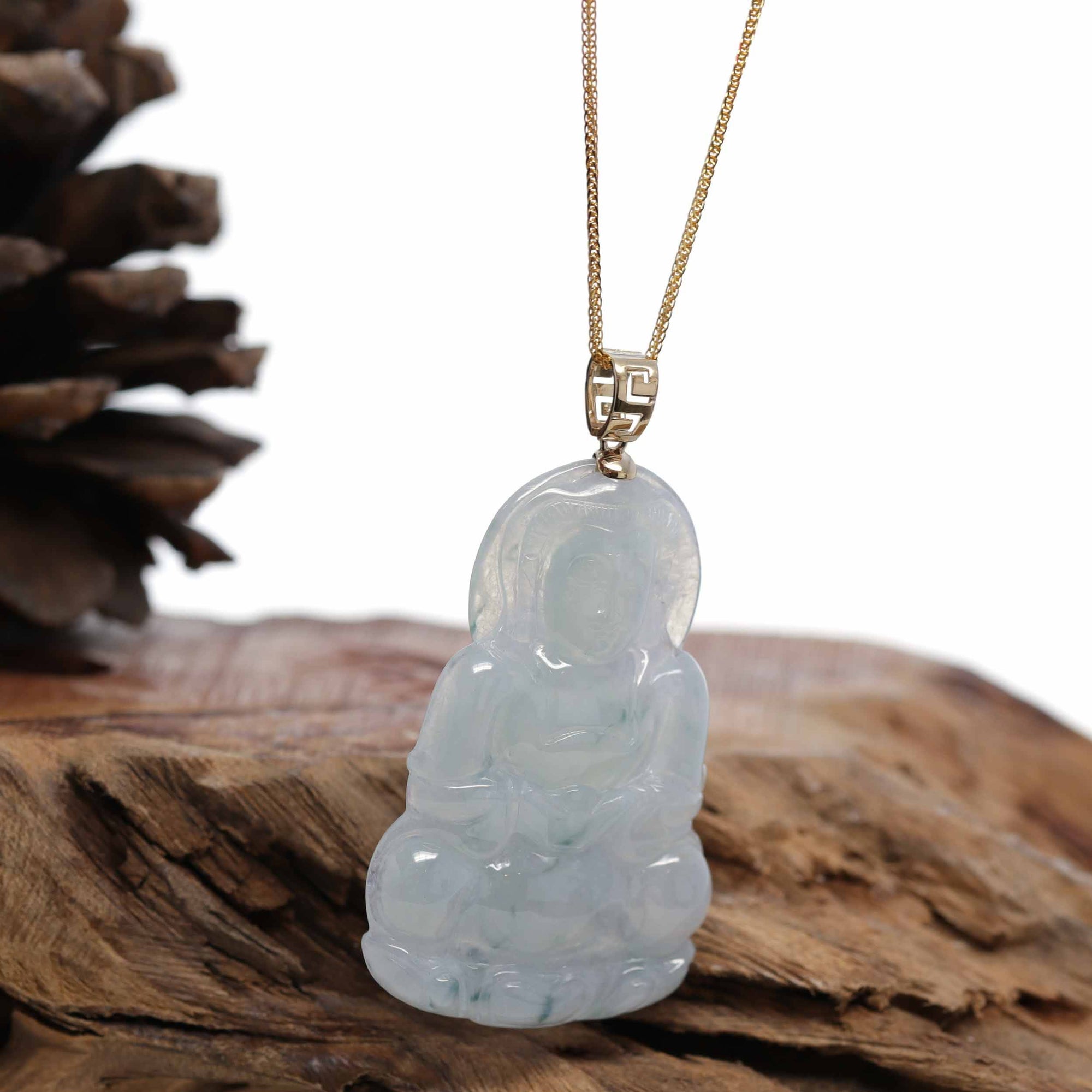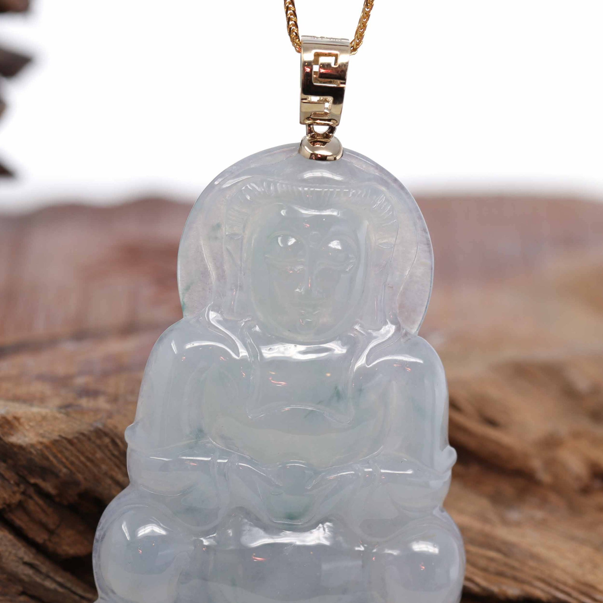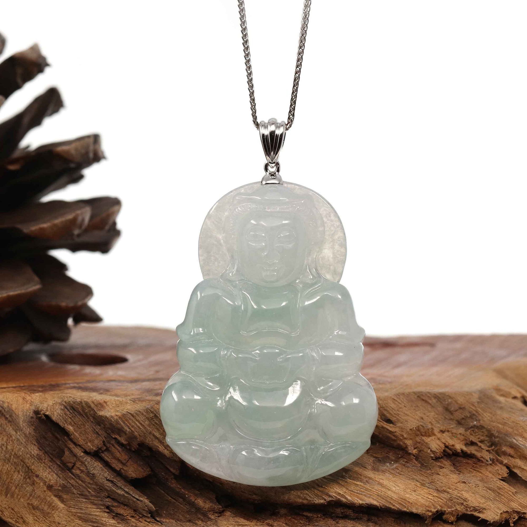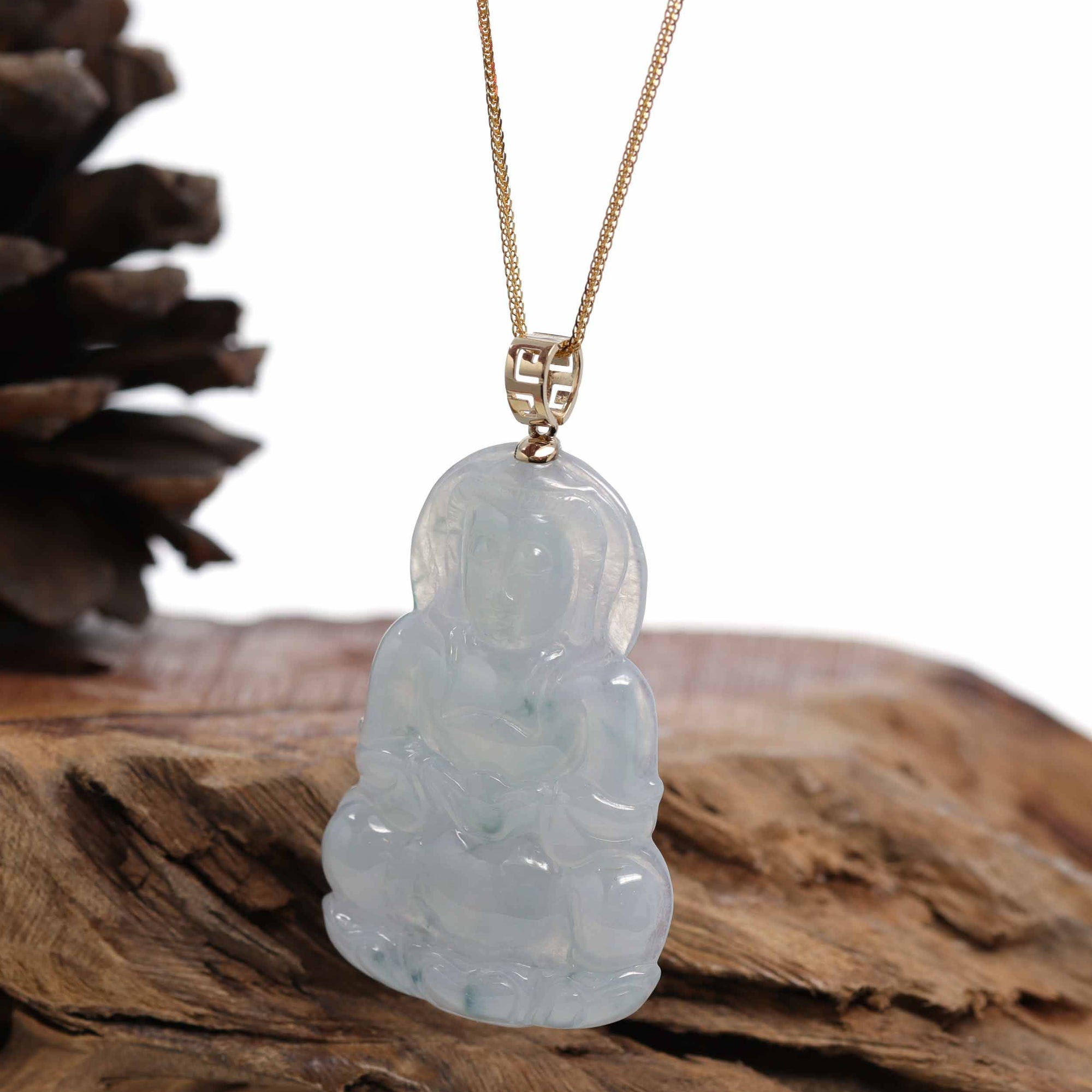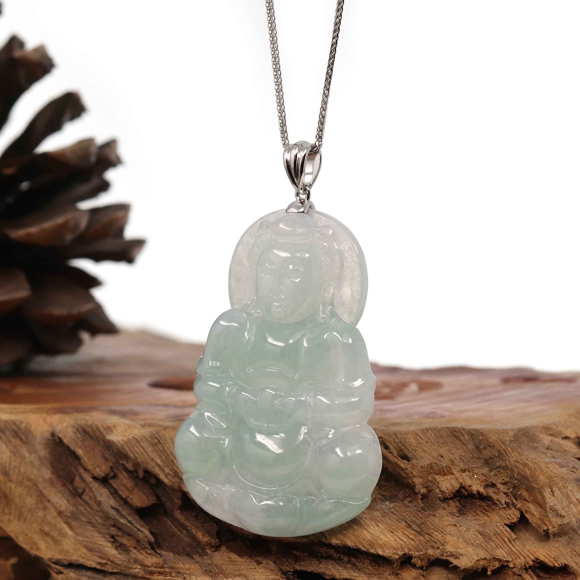 "Goddess of Compassion" Genuine Burmese Ice Blue Jadeite Jade Guanyin Necklace