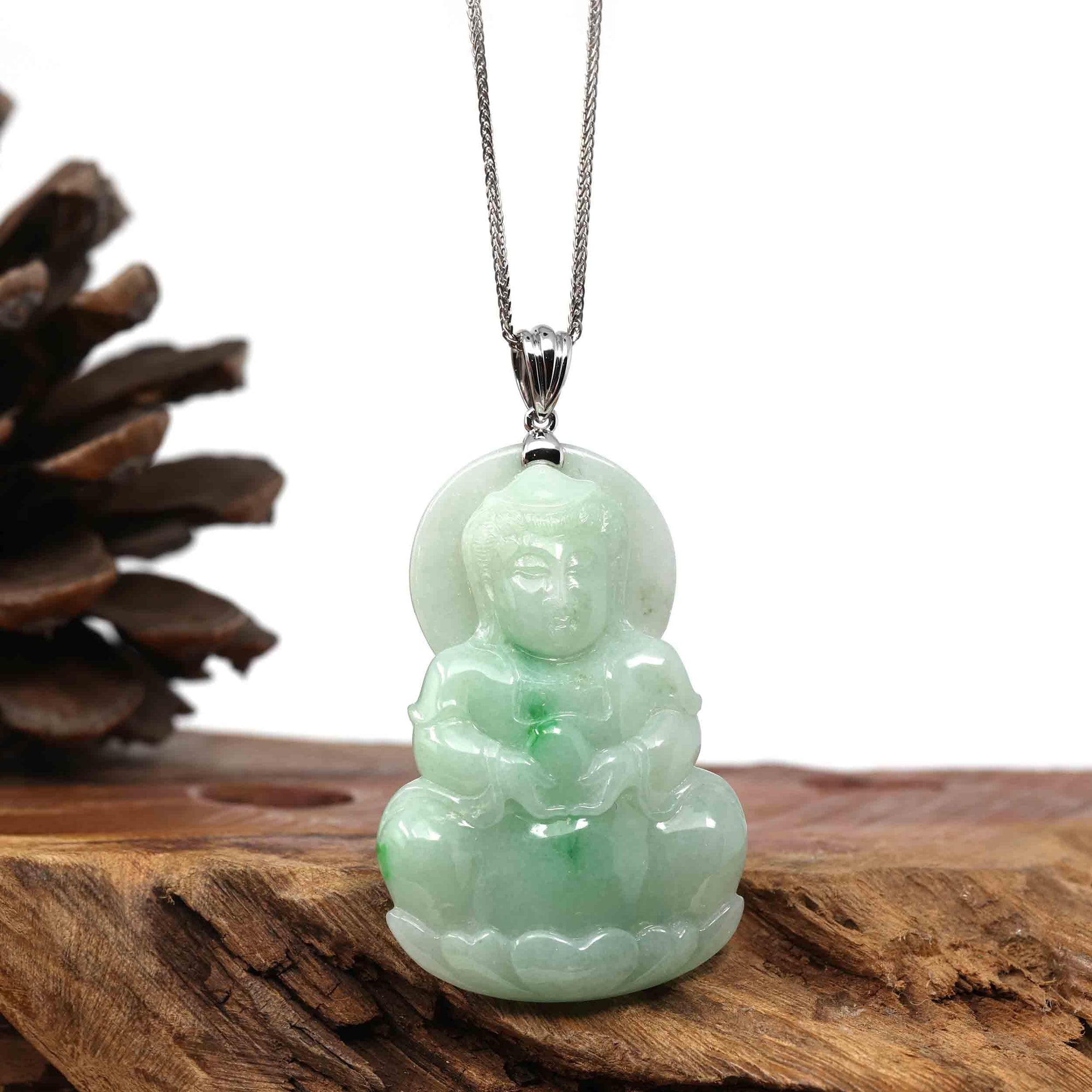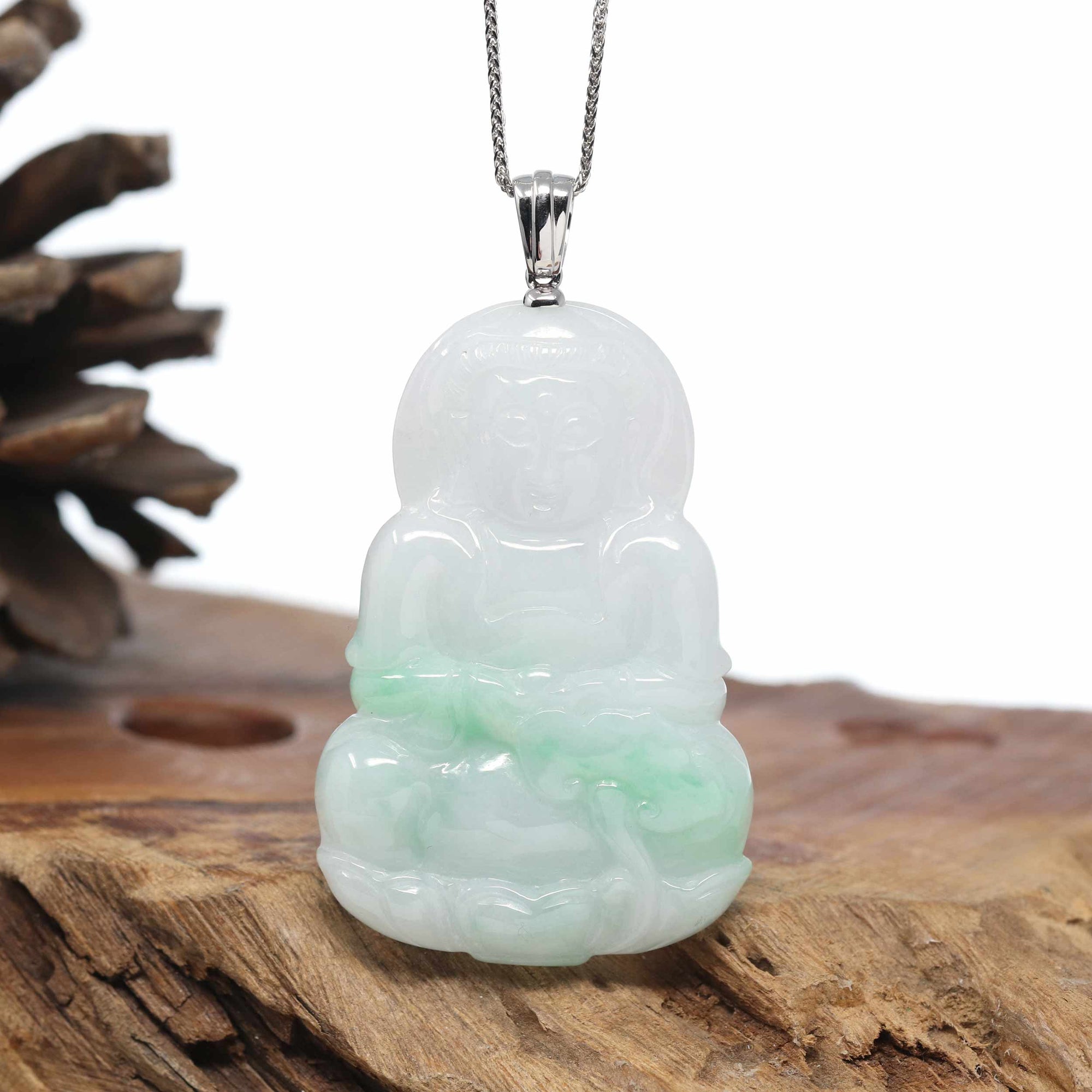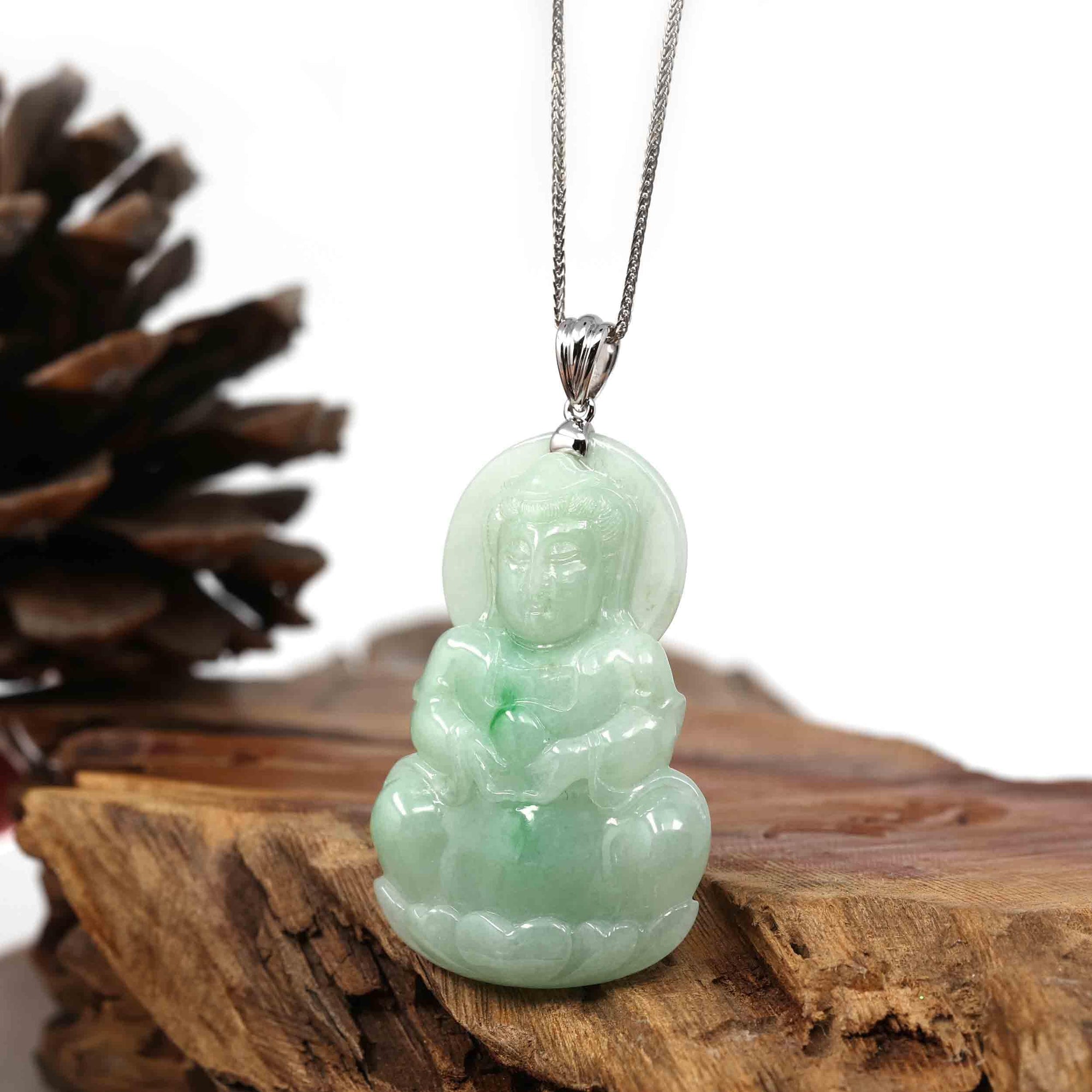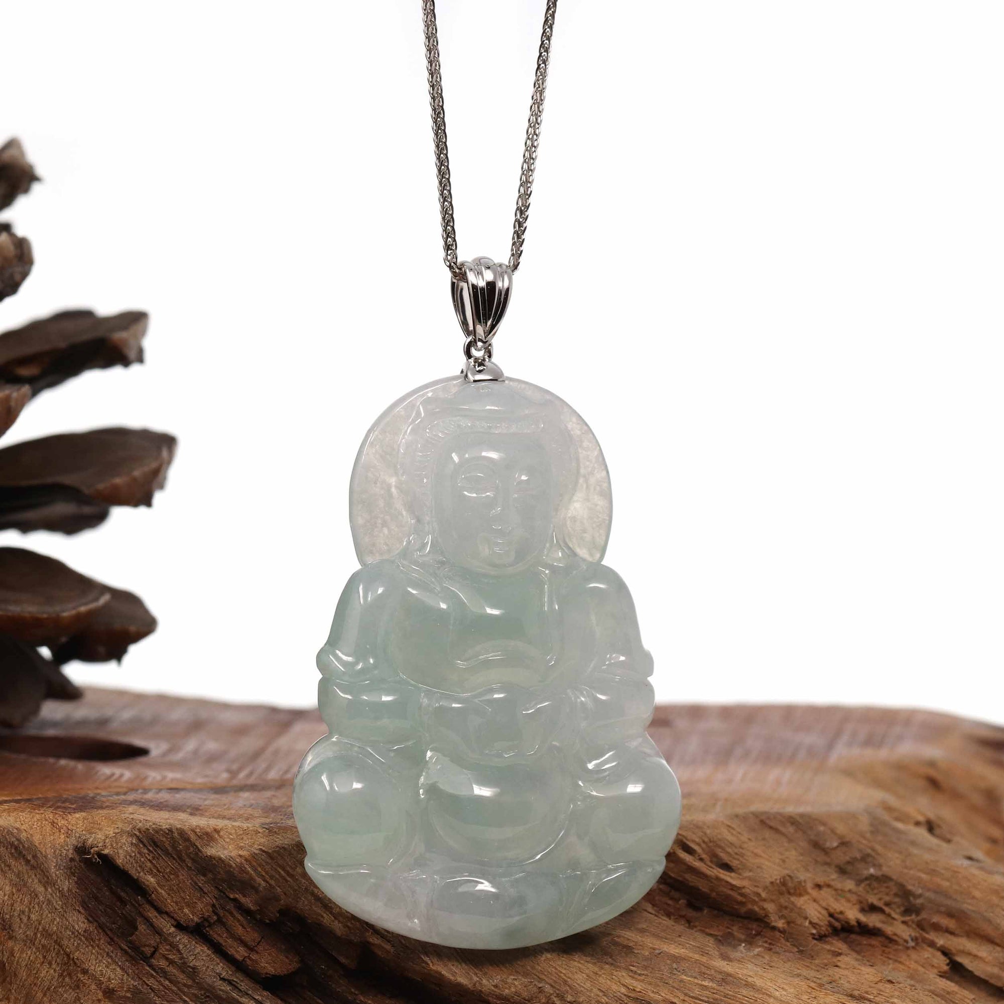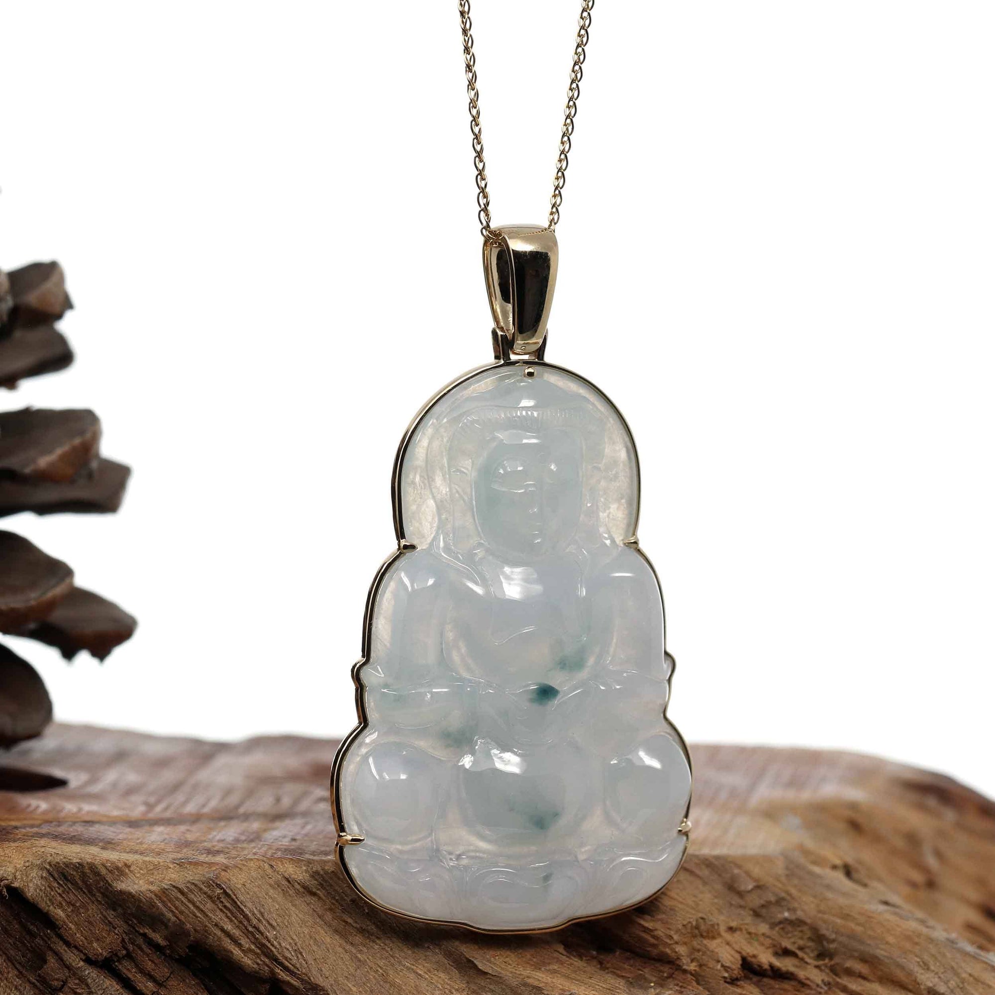 "Goddess of Compassion" Genuine Burmese Ice Blue Jadeite Jade Guanyin Necklace