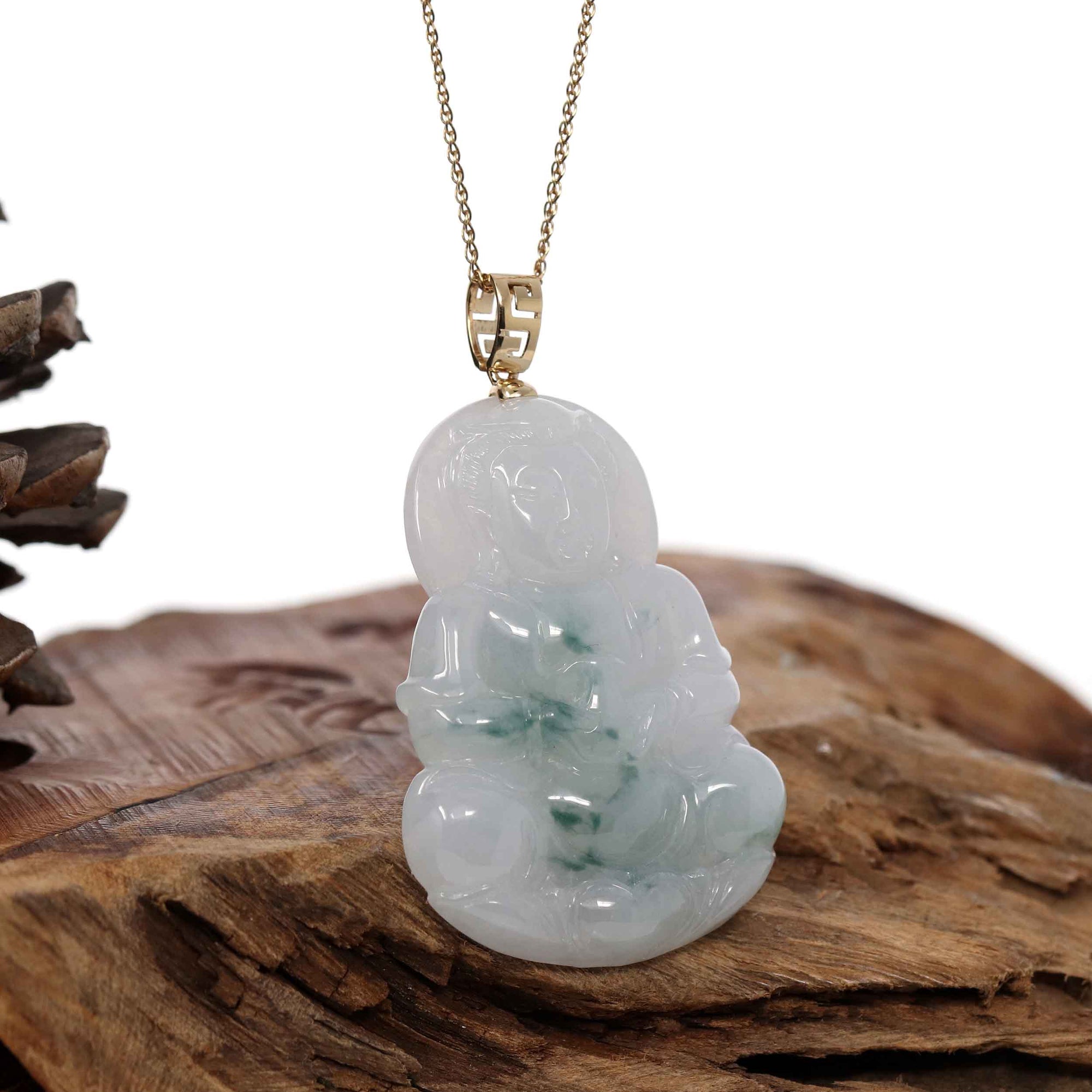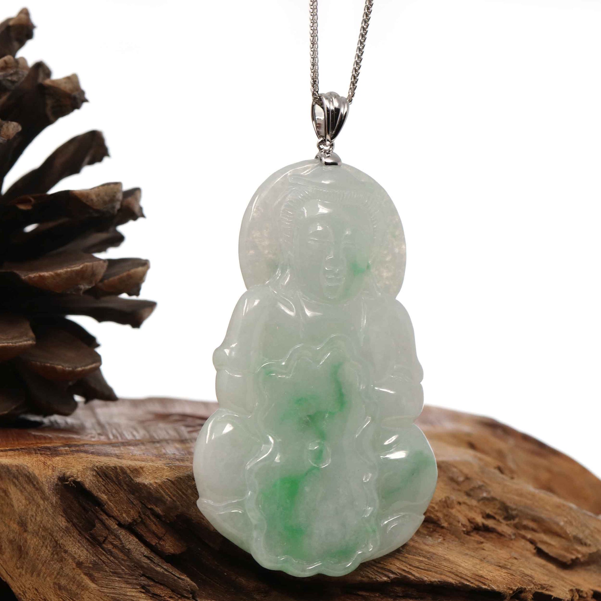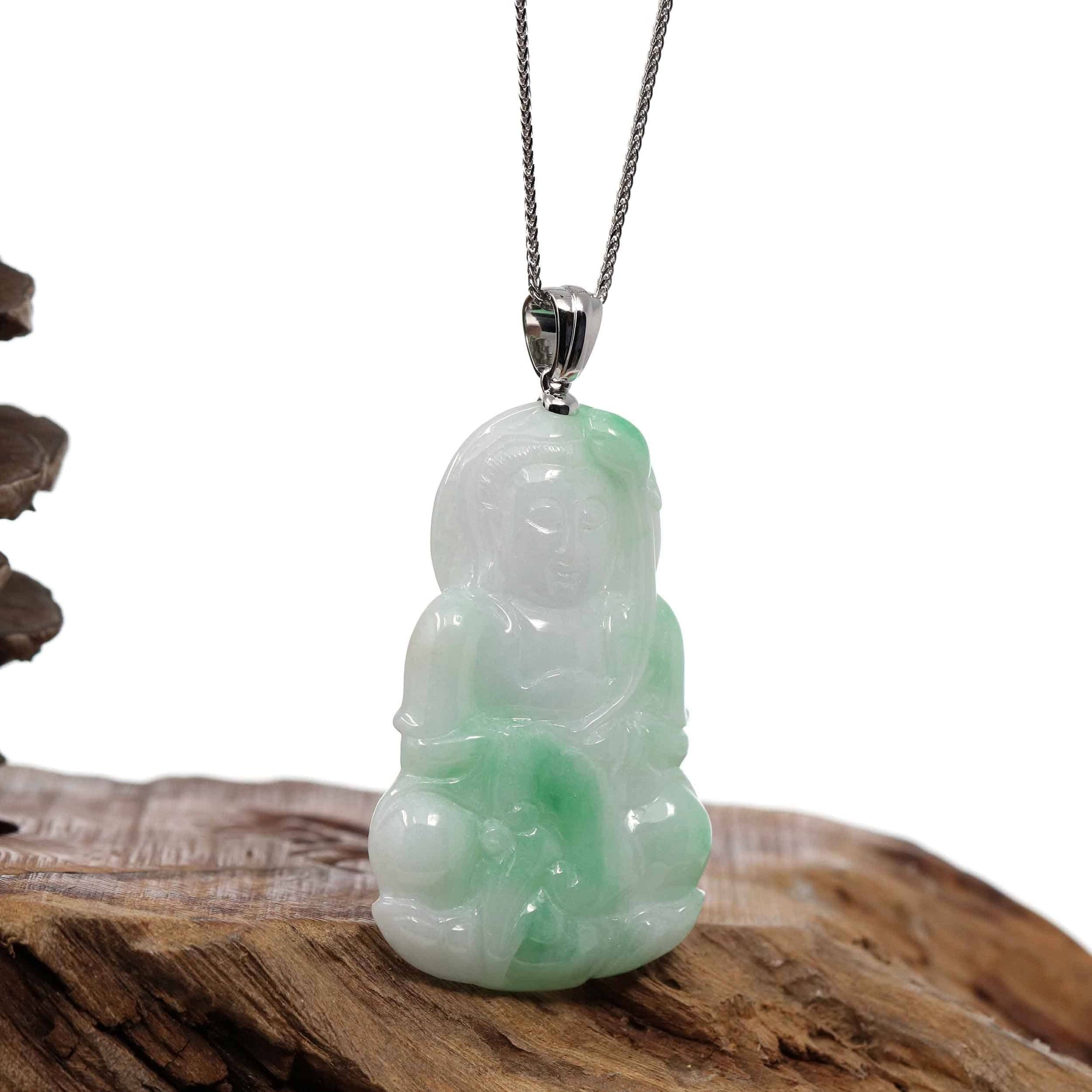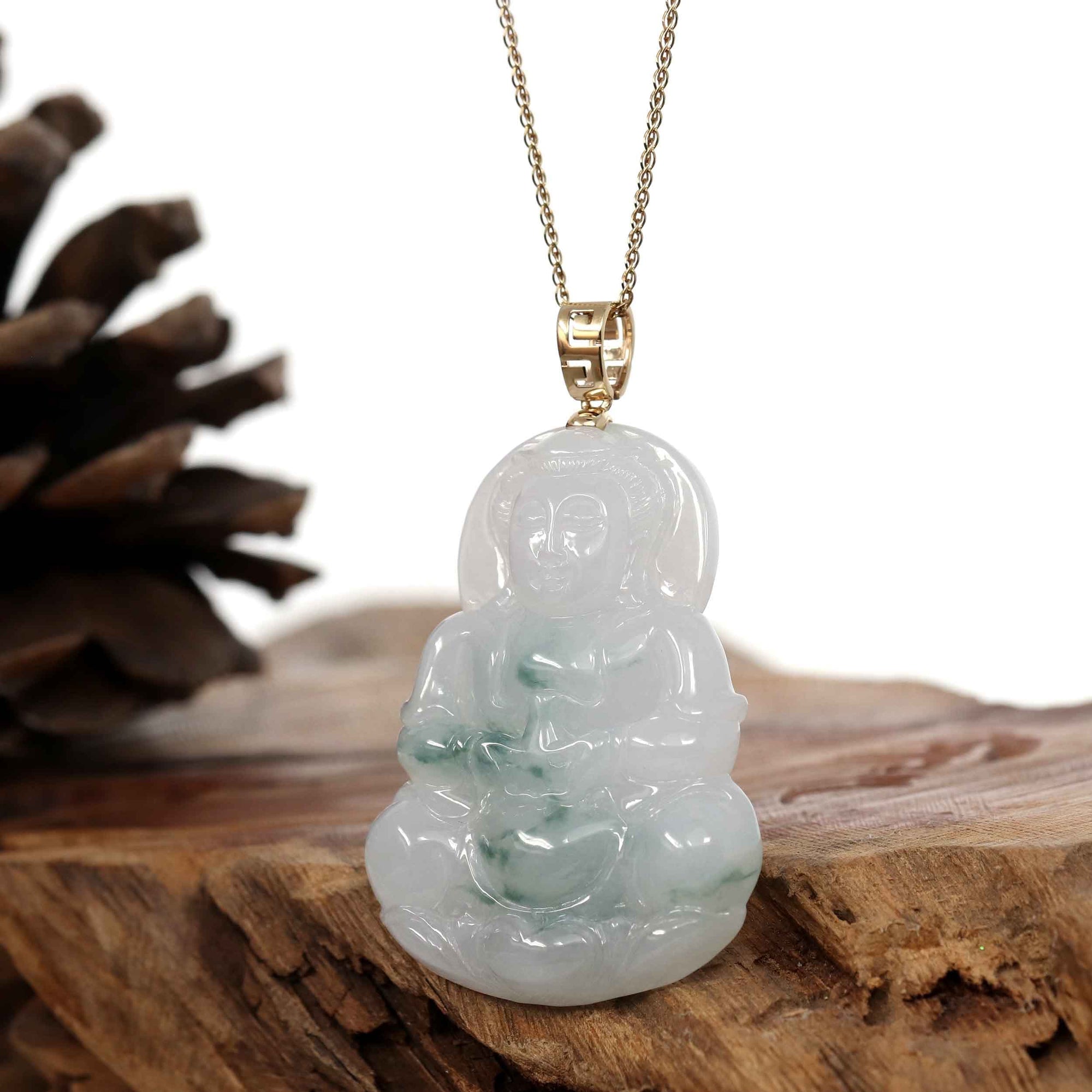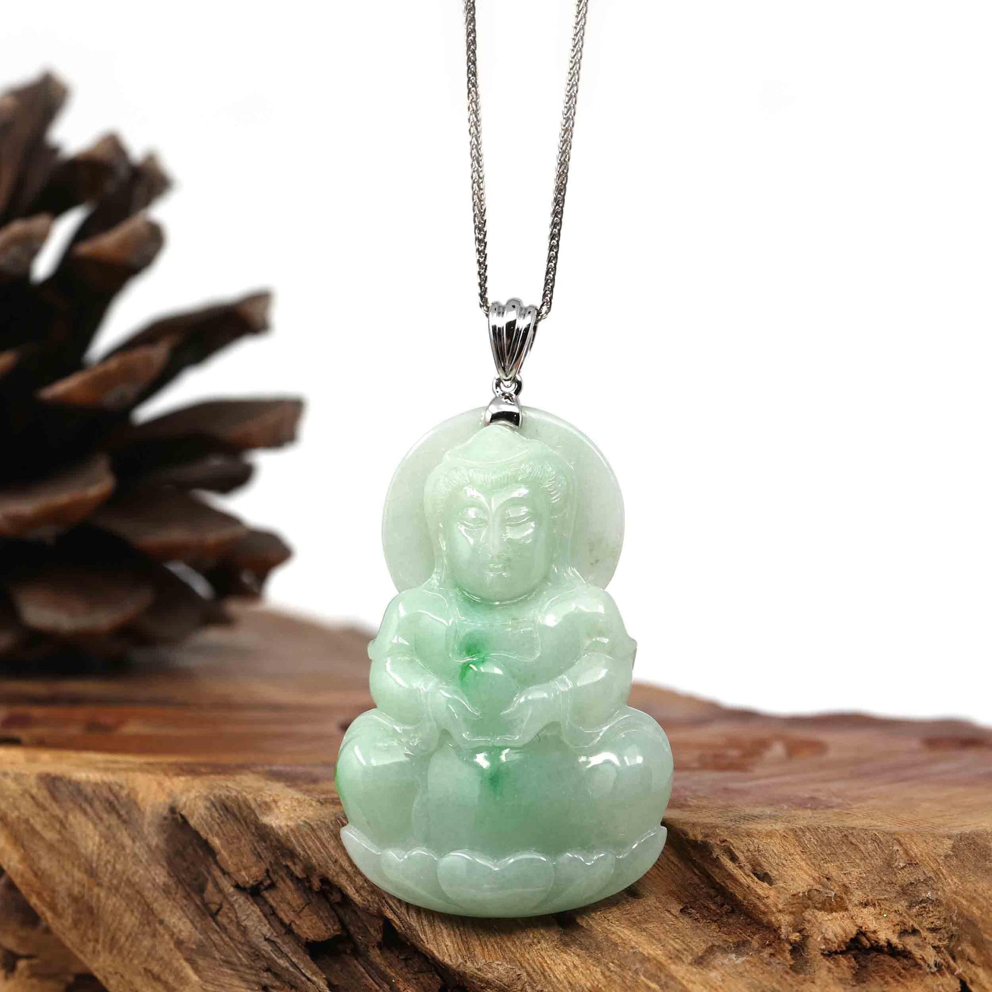 "Goddess of Compassion" Genuine Burmese Ice Blue Jadeite Jade Guanyin Necklace