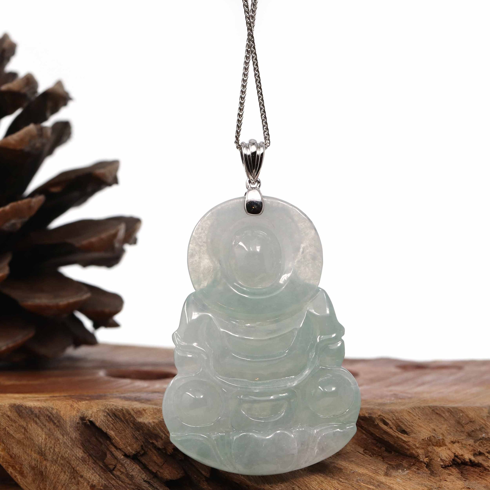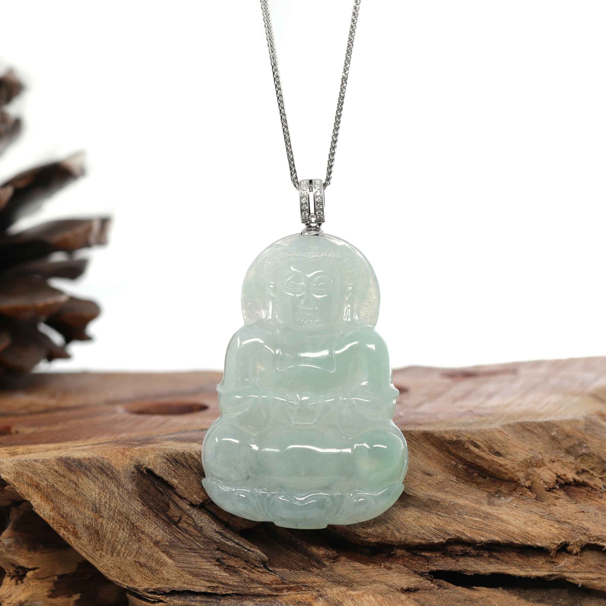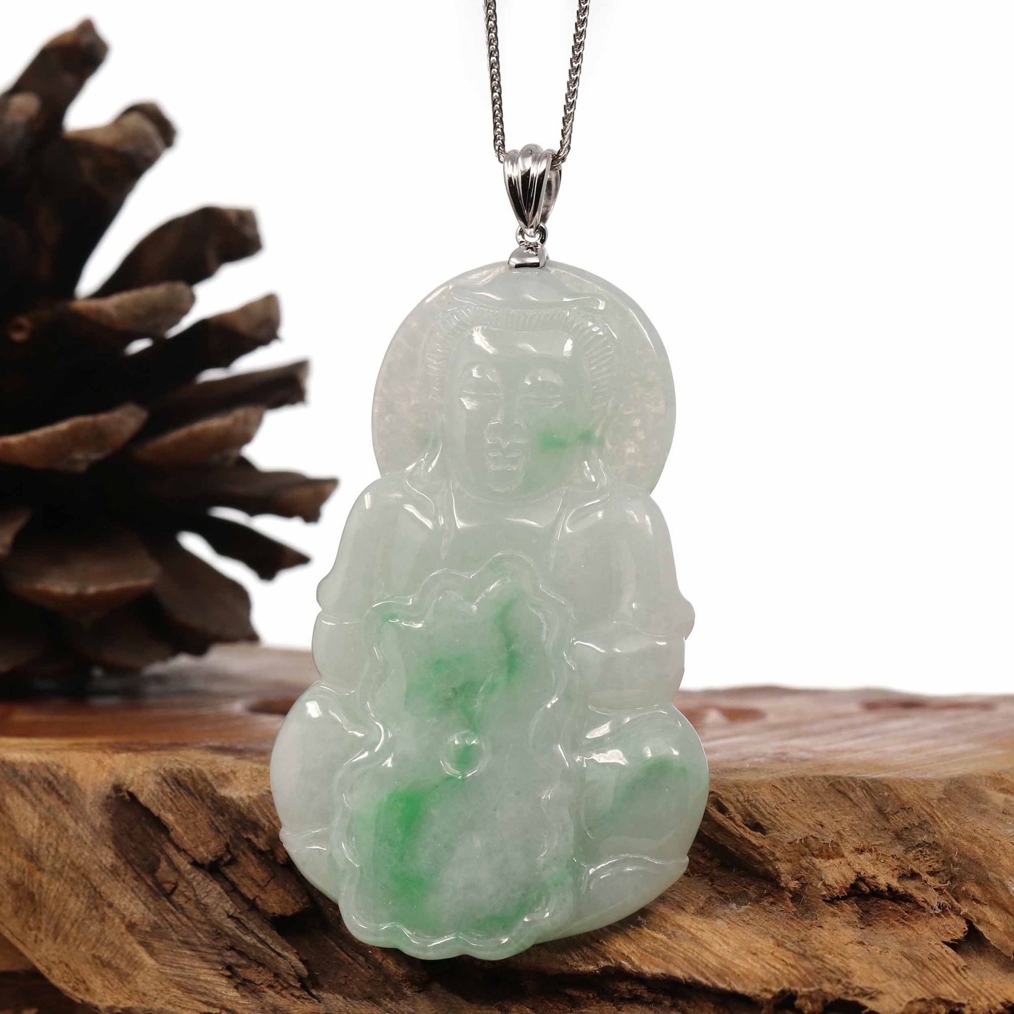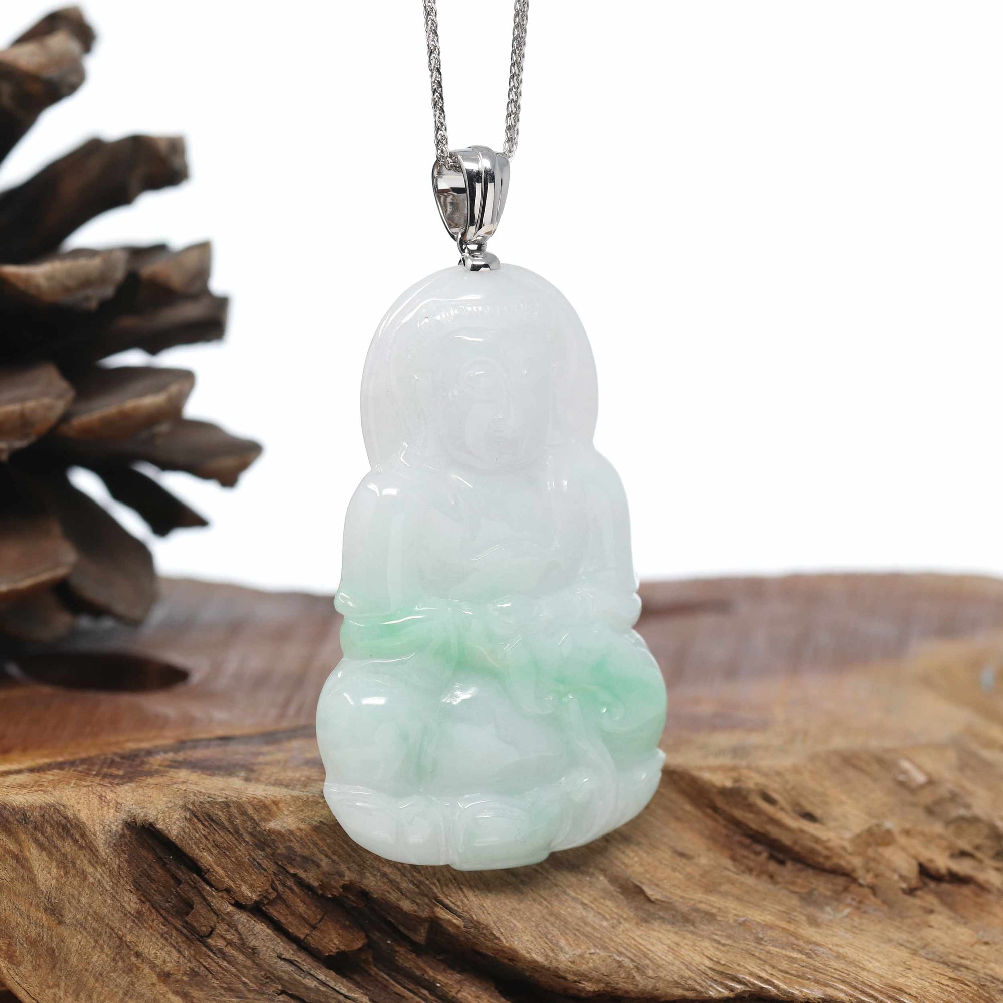 "Goddess of Compassion" Genuine Burmese Ice Blue Jadeite Jade Guanyin Necklace