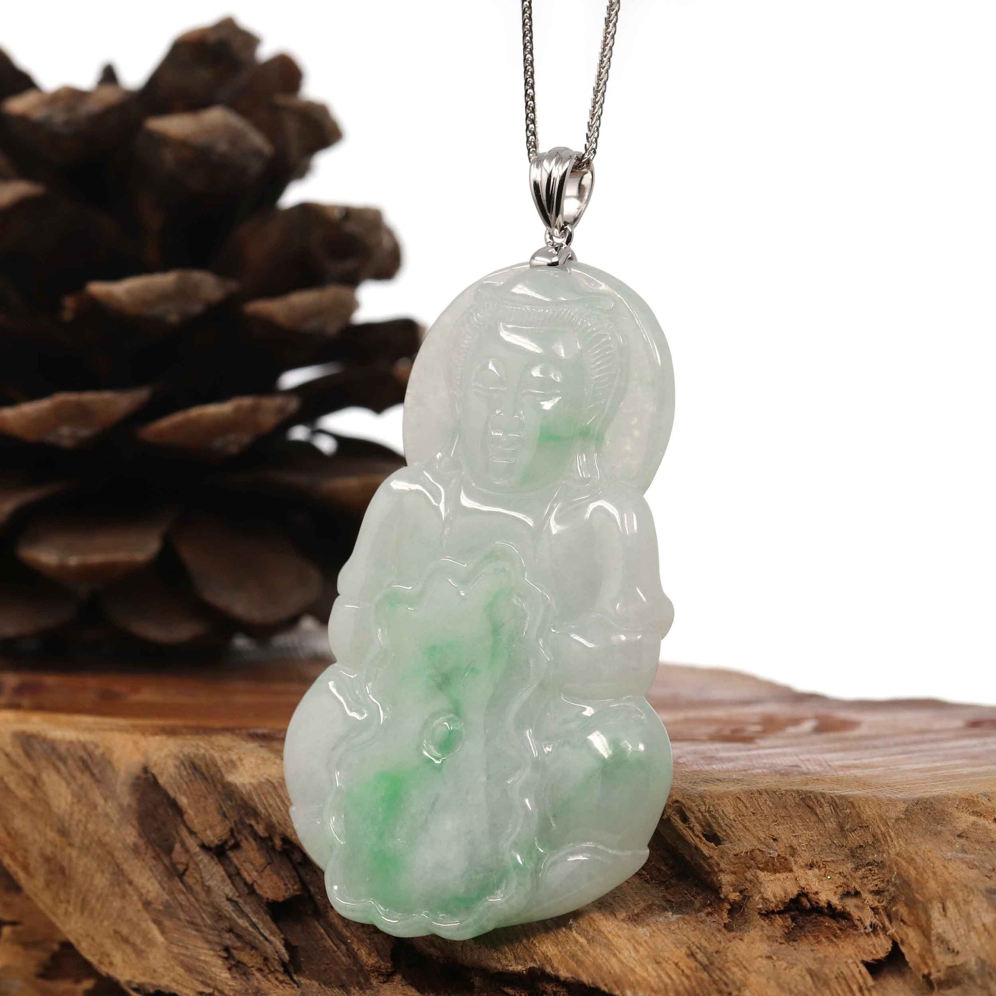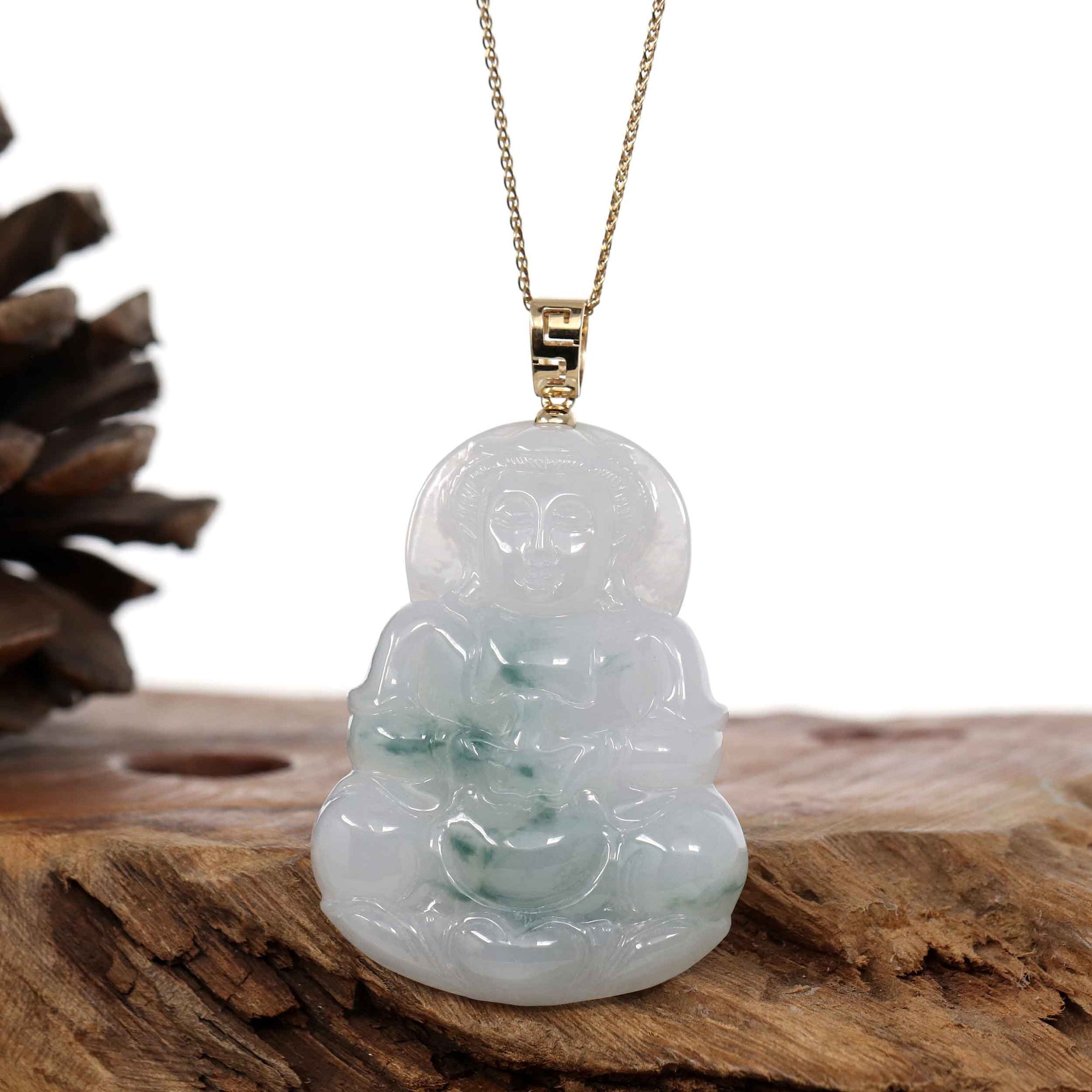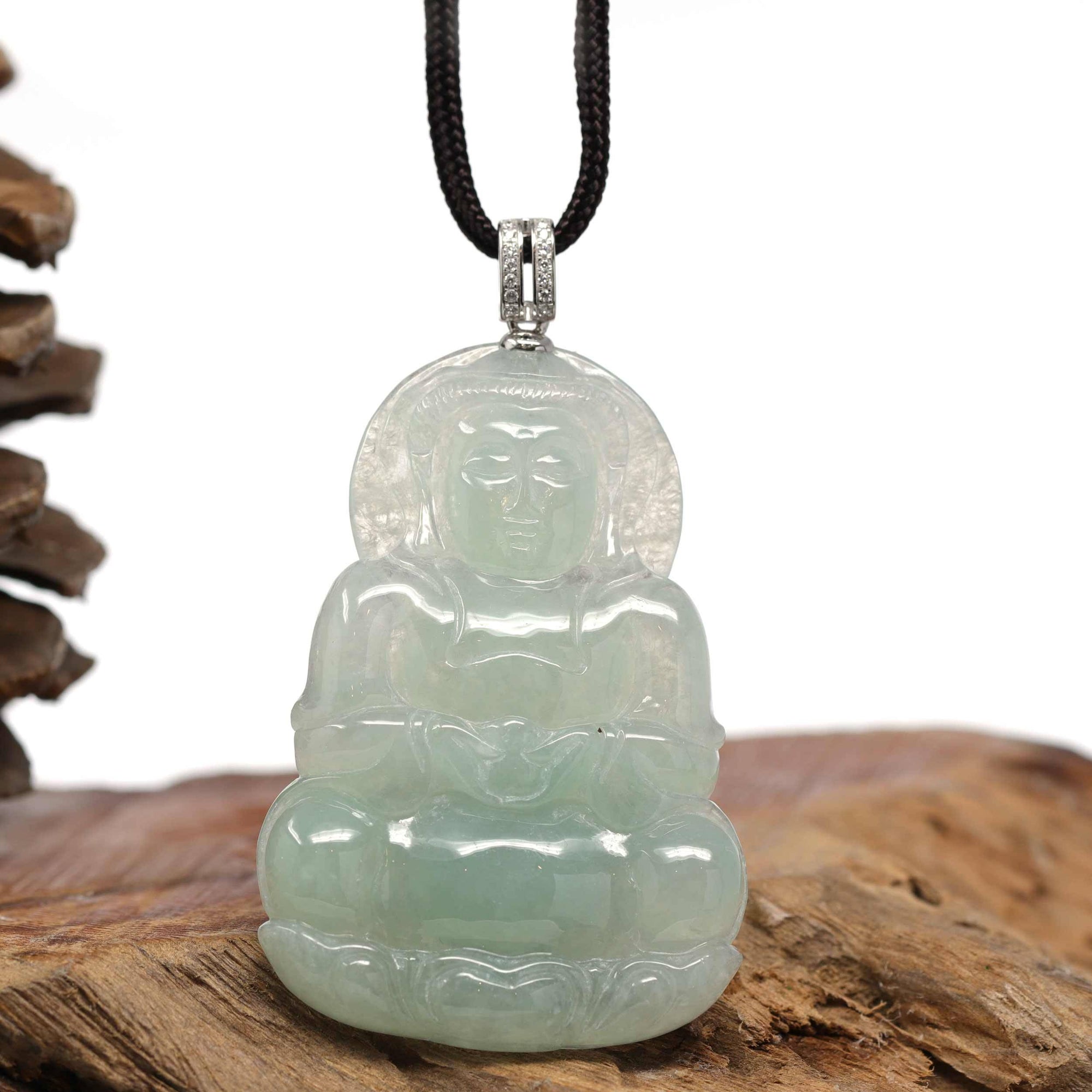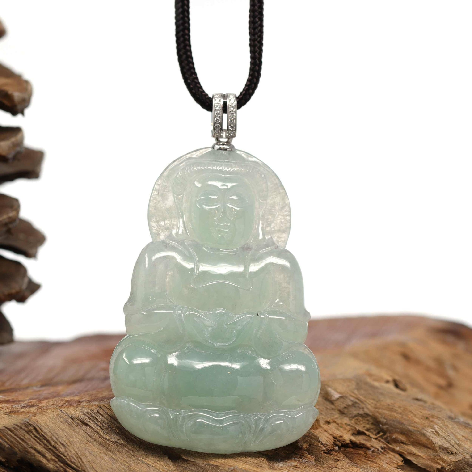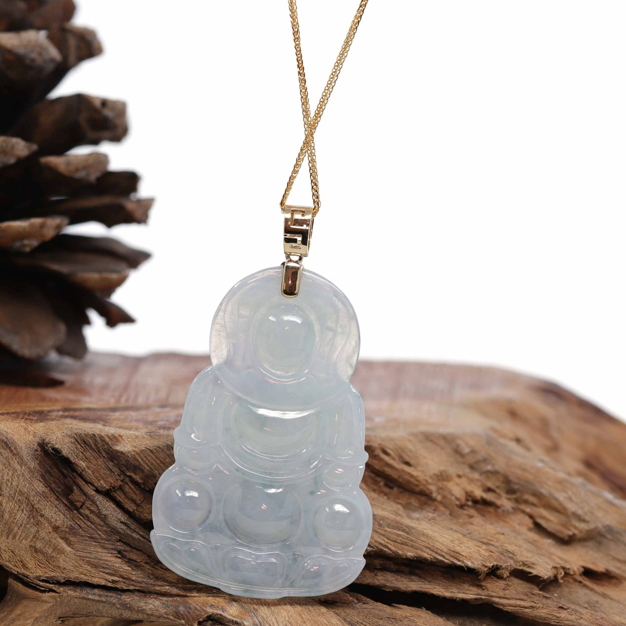 "Goddess of Compassion" Genuine Burmese Ice Blue Jadeite Jade Guanyin Necklace