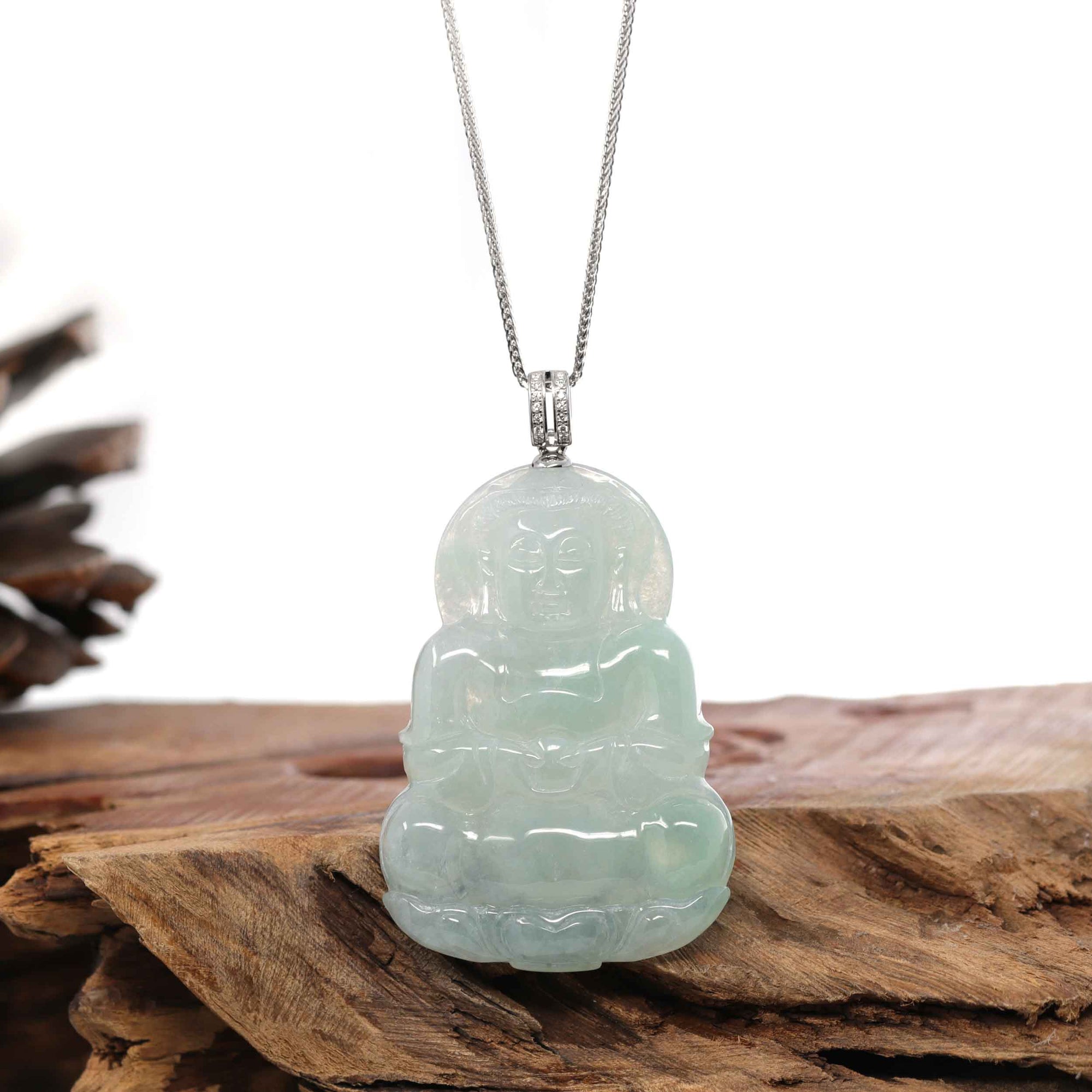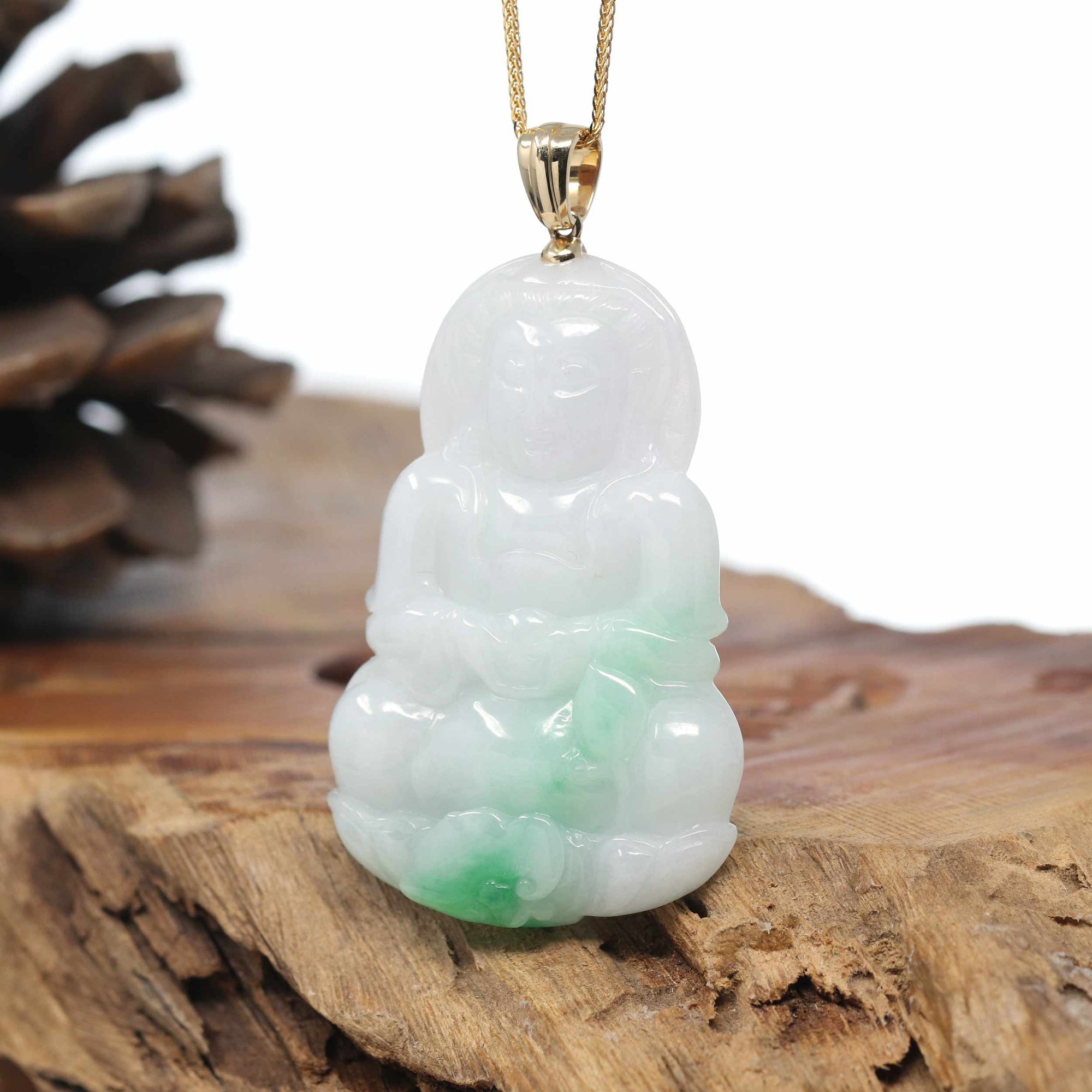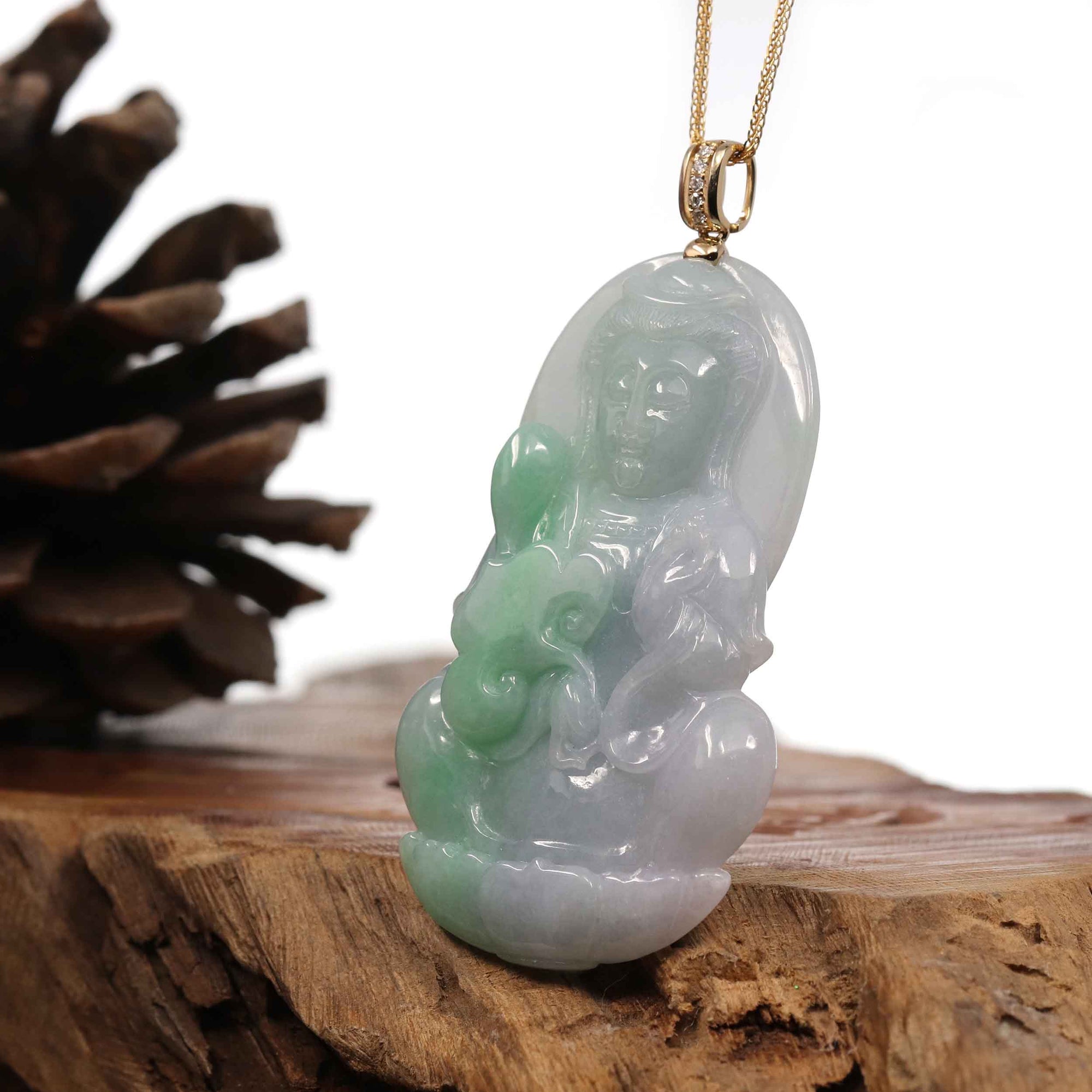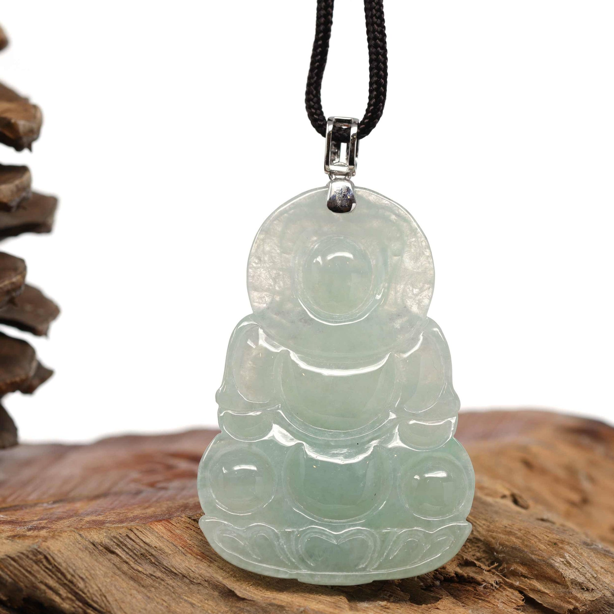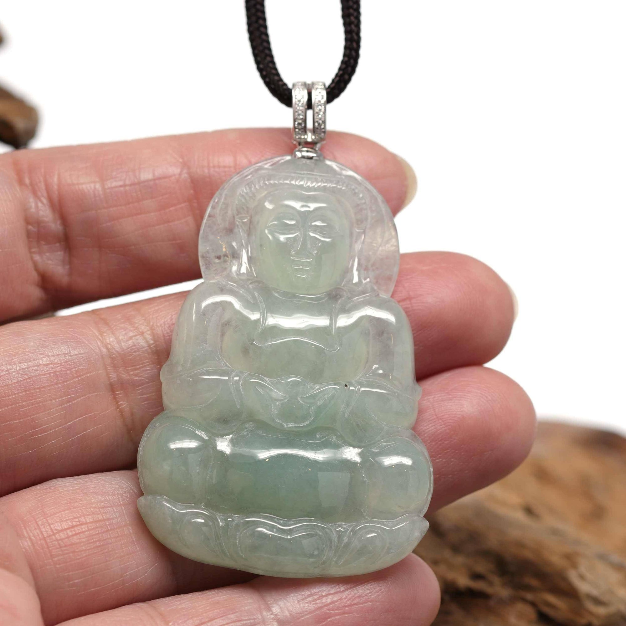 "Goddess of Compassion" Genuine Burmese Ice Blue Jadeite Jade Guanyin Necklace