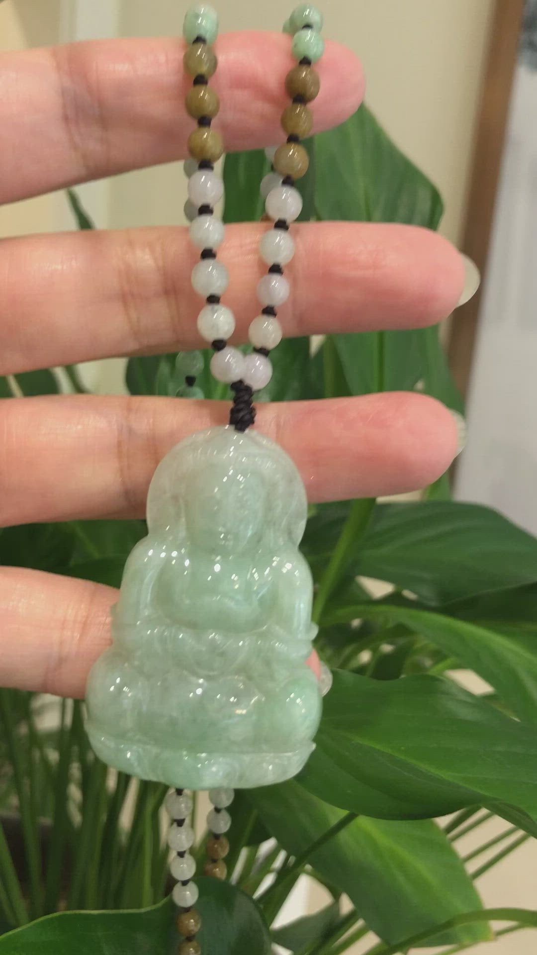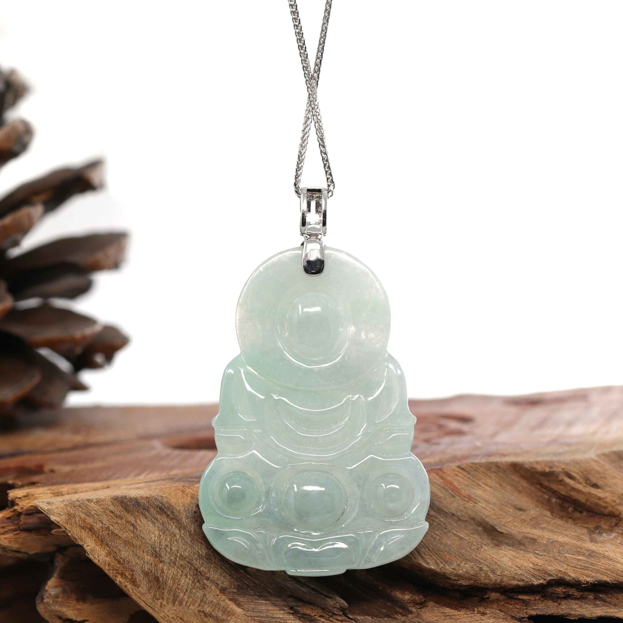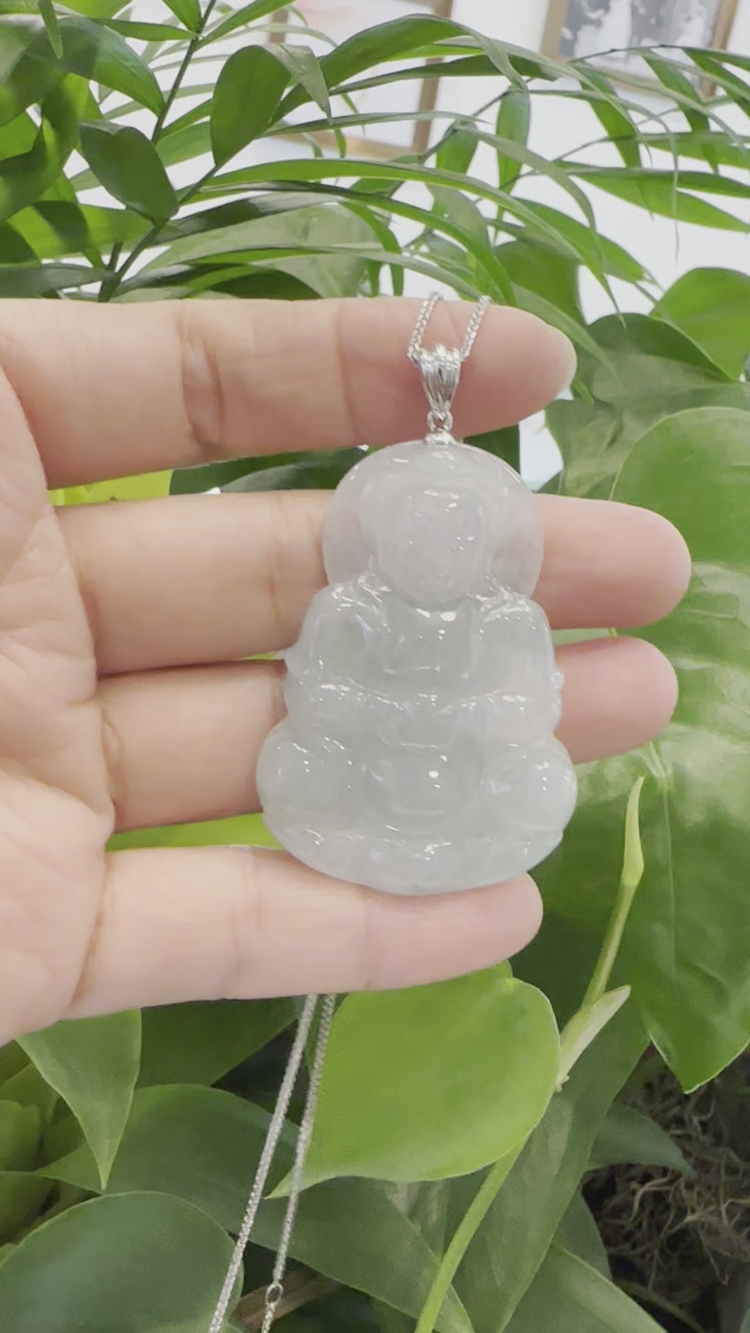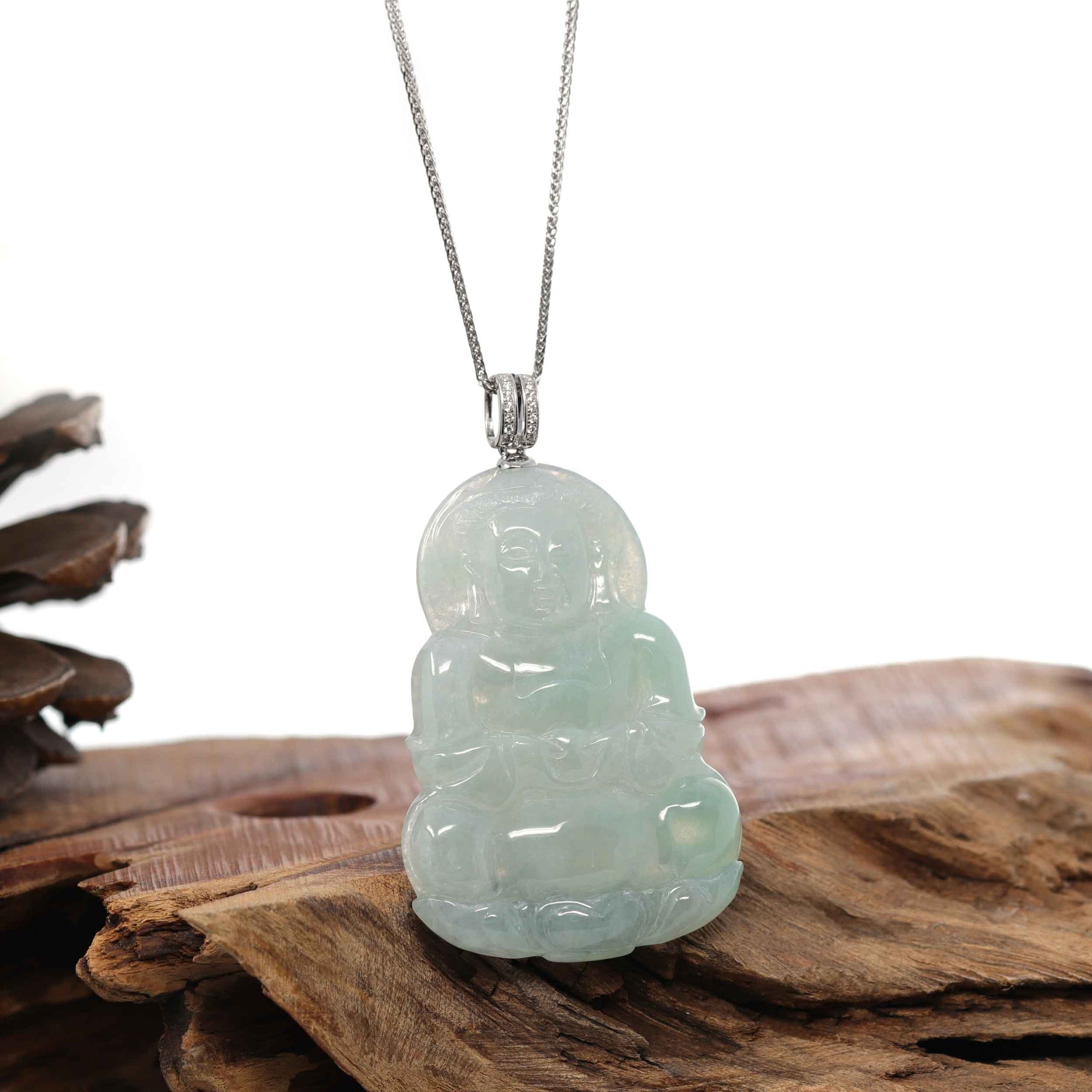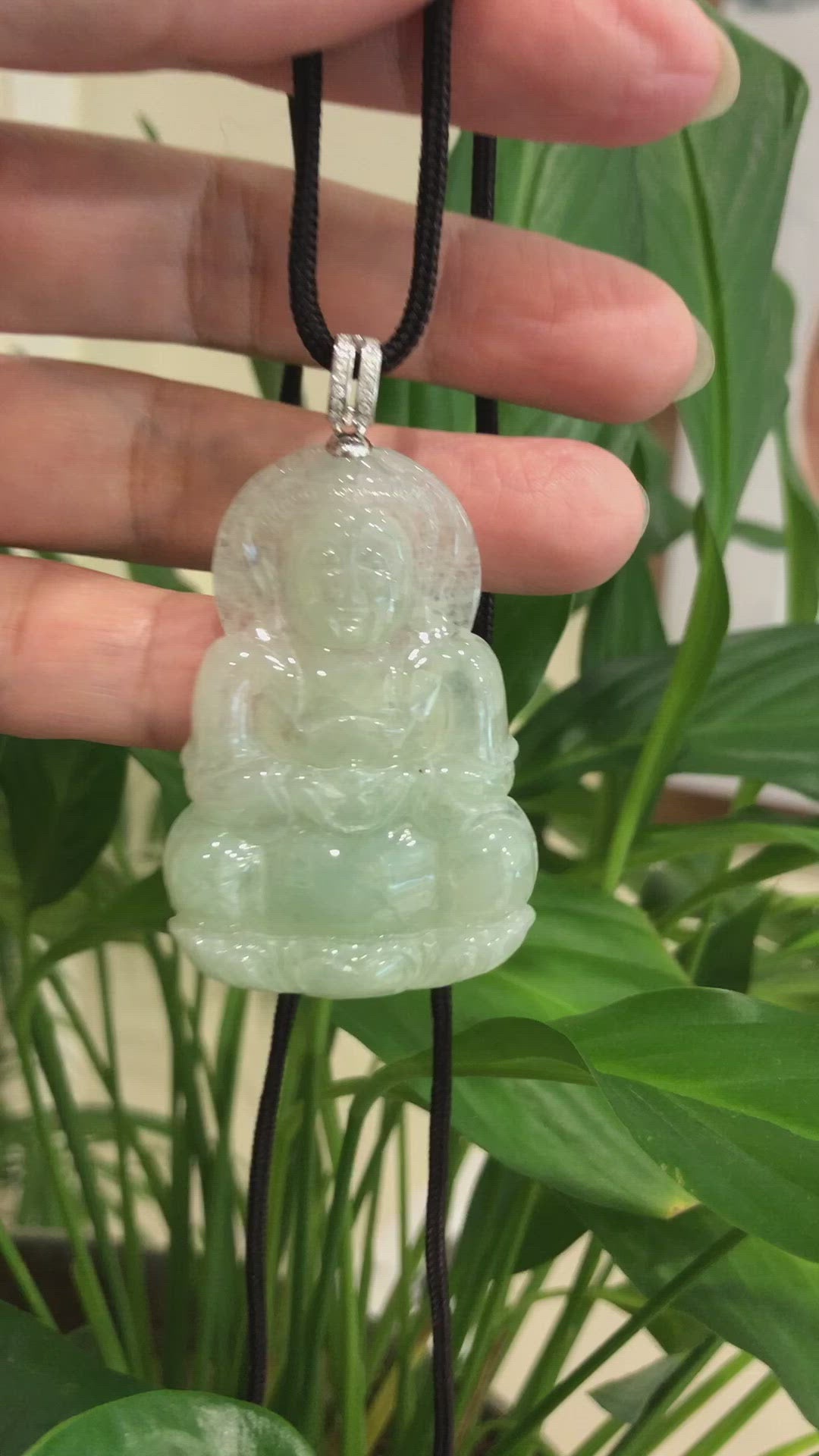 "Goddess of Compassion" Genuine Burmese Ice Blue Jadeite Jade Guanyin Necklace