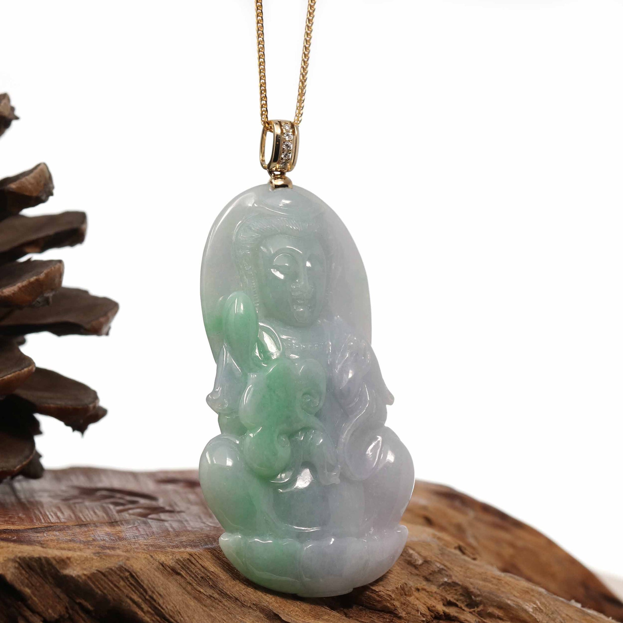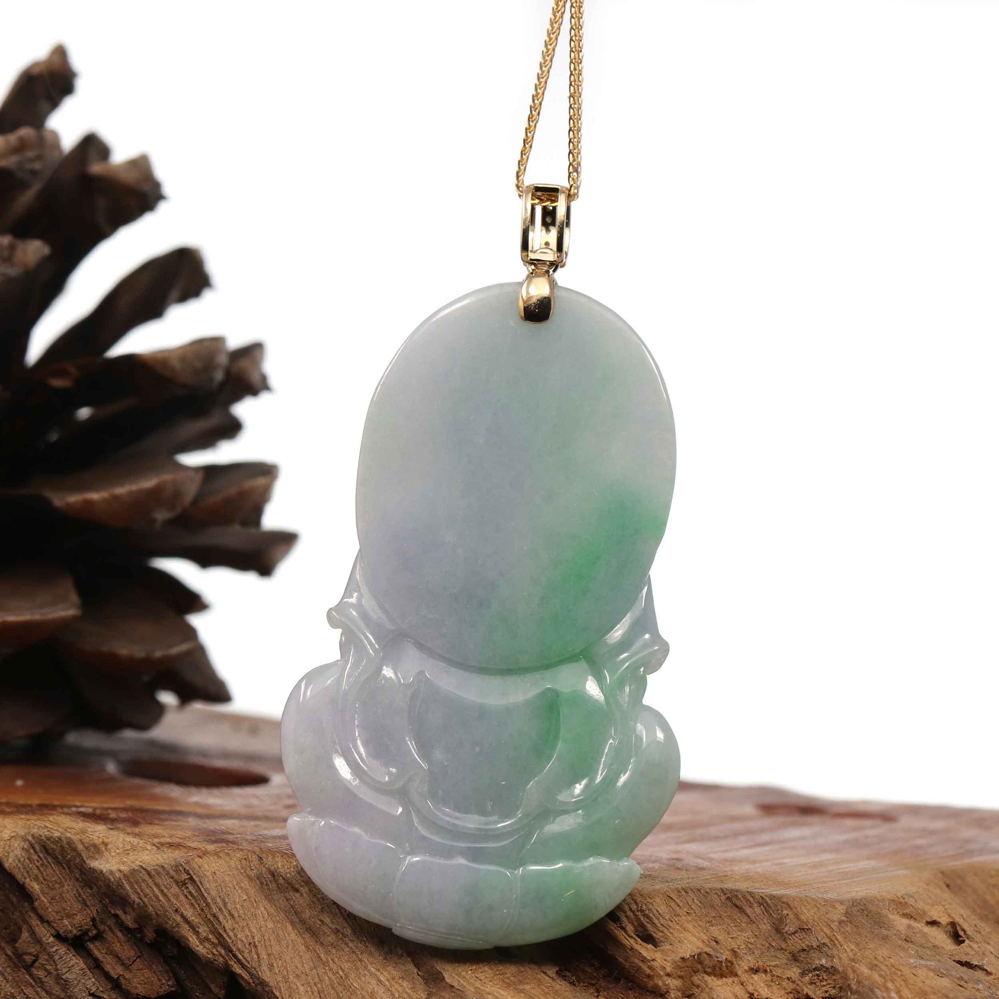 Baikalla "Goddess of Compassion" Genuine Burmese Jadeite Jade Guanyin Lotus Necklace
