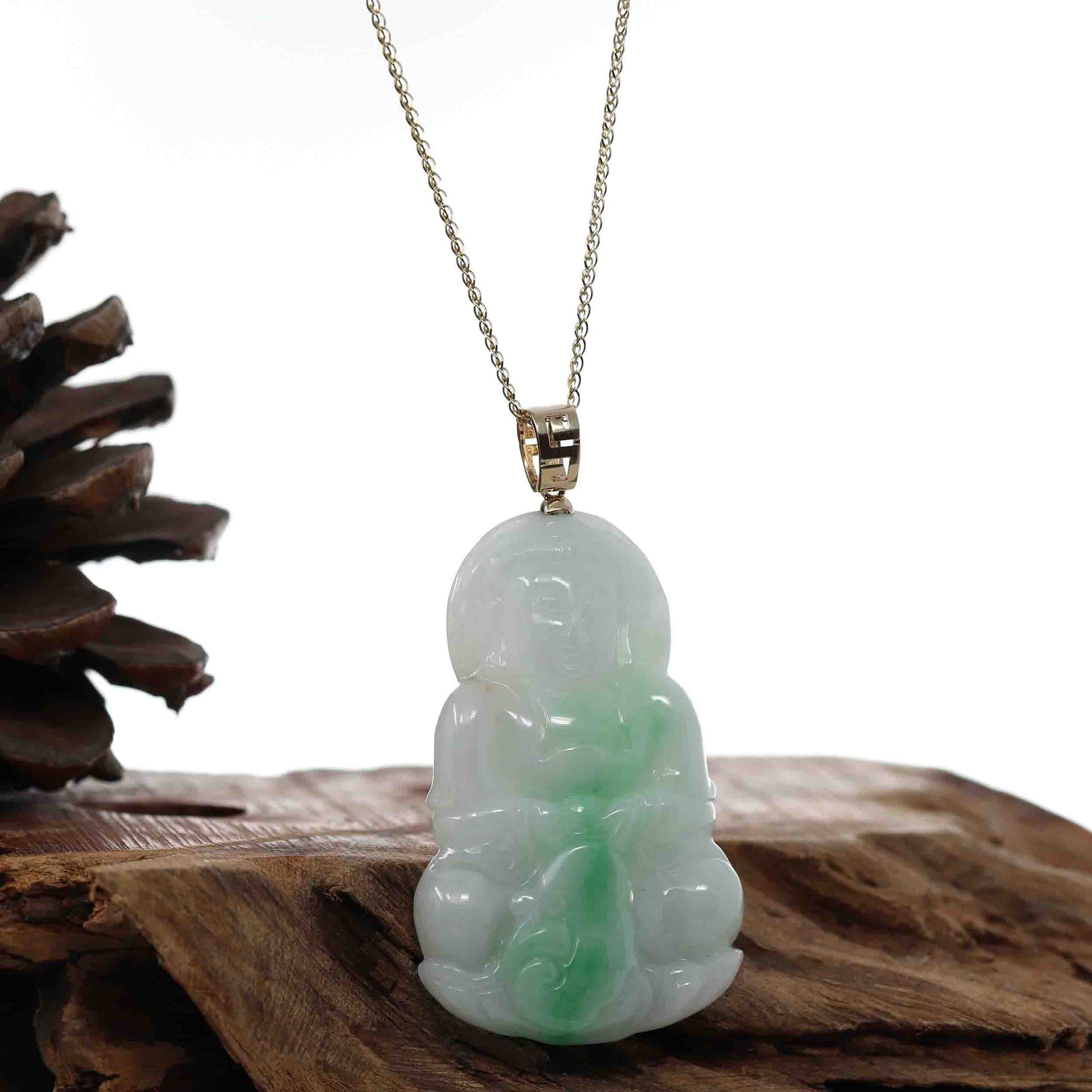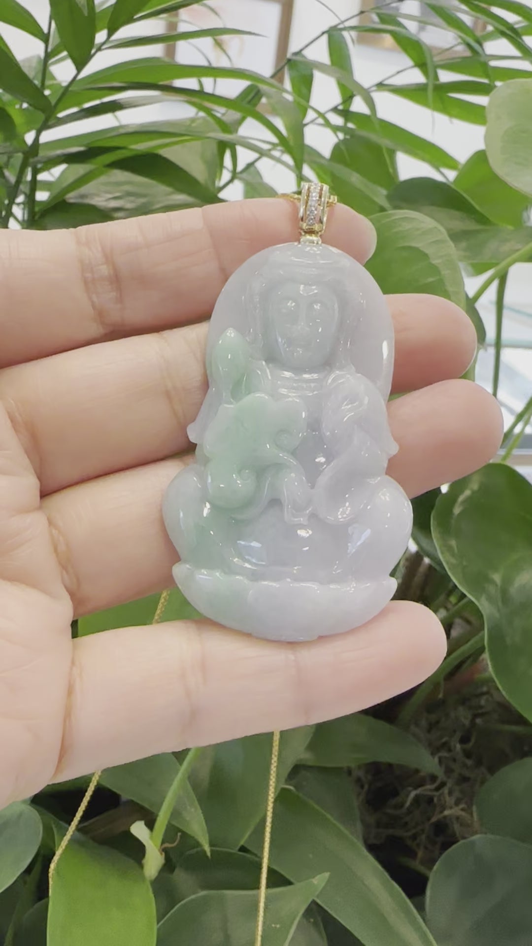 Baikalla 14k "Goddess of Compassion" Genuine Burmese Jadeite Jade Guanyin Necklace With Good Luck Design