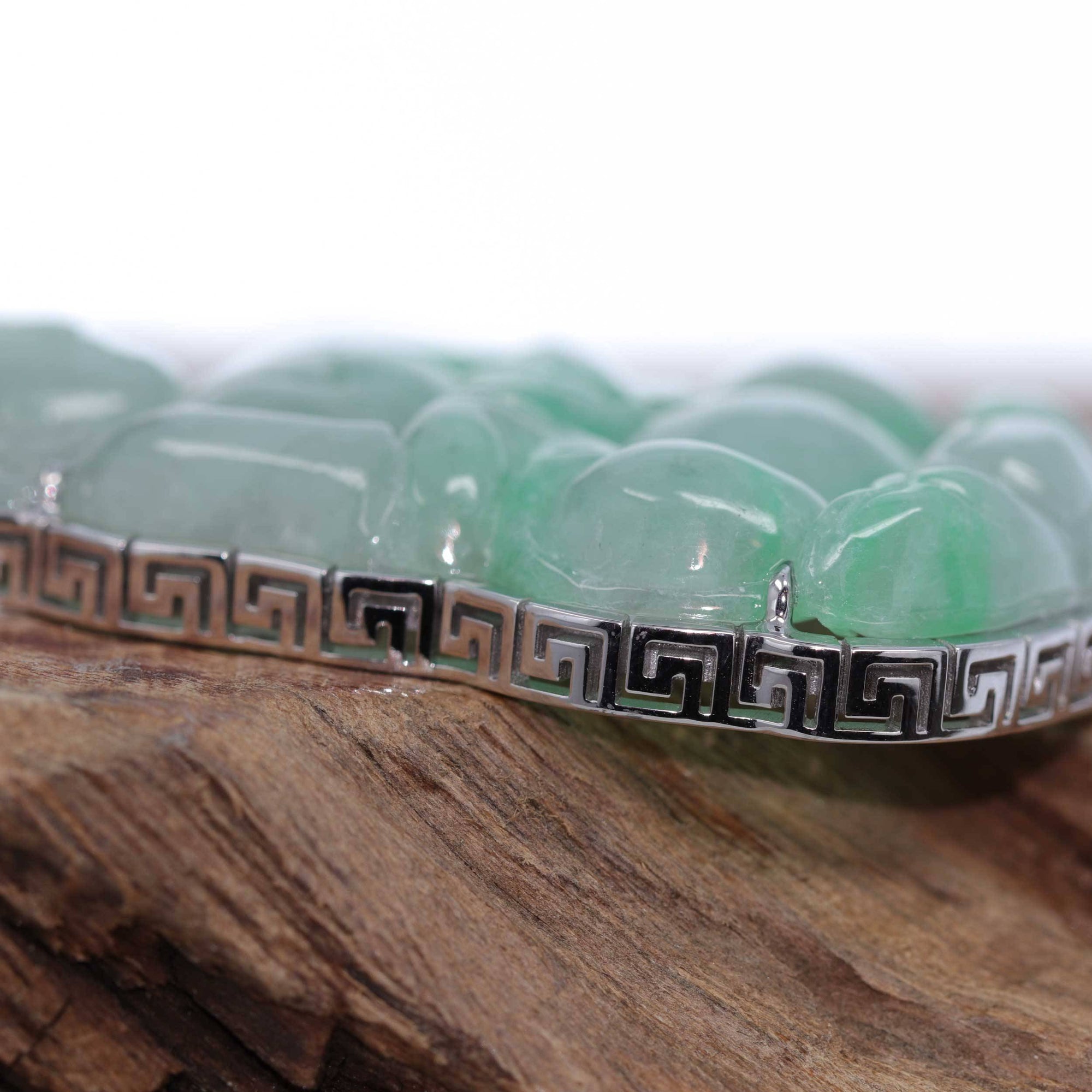 Only real jade is used in this collection, celebrated for its luminous polish, cool touch, and natural variations that make each piece truly singular. Shades of vibrant green, silken translucency, and delicate cloud-like patterns form organically within the stone, ensuring that no two pendants are ever alike. This inherent uniqueness is part of the luxury—an authenticity that cannot be replicated.