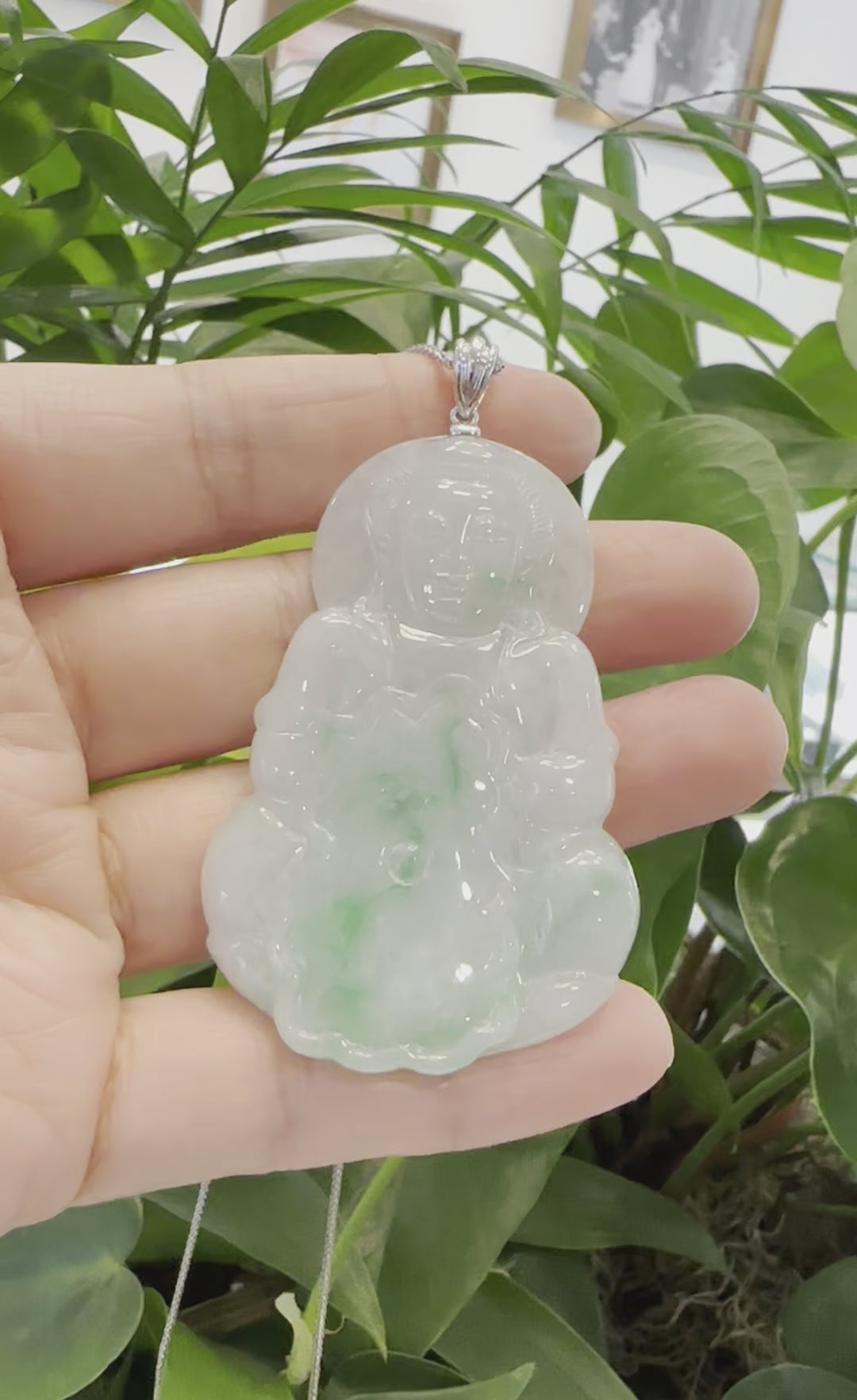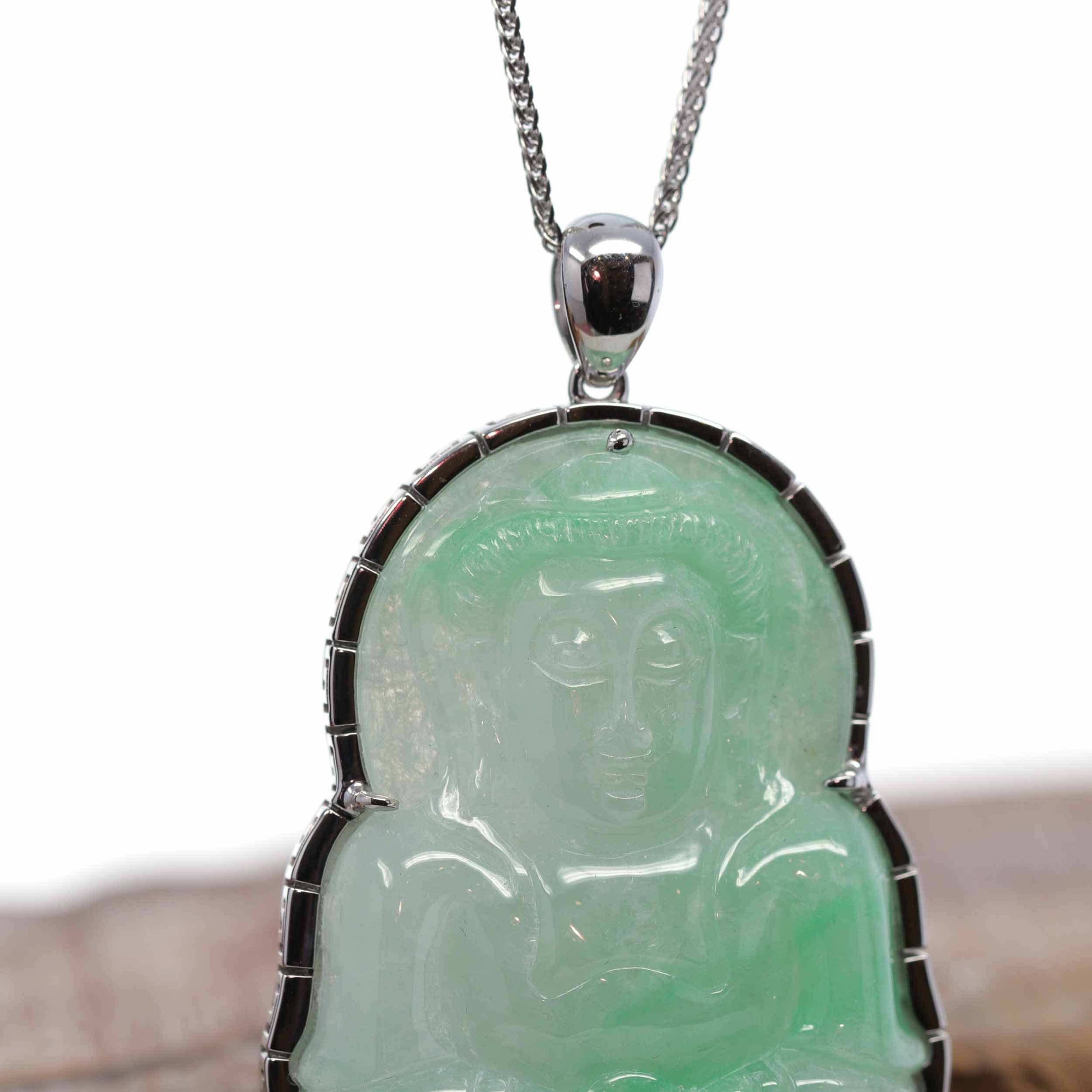 18K White Gold High-End Imperial Jadeite Jade "Goddess of Compassion" Guan Yin Necklace with Diamonds