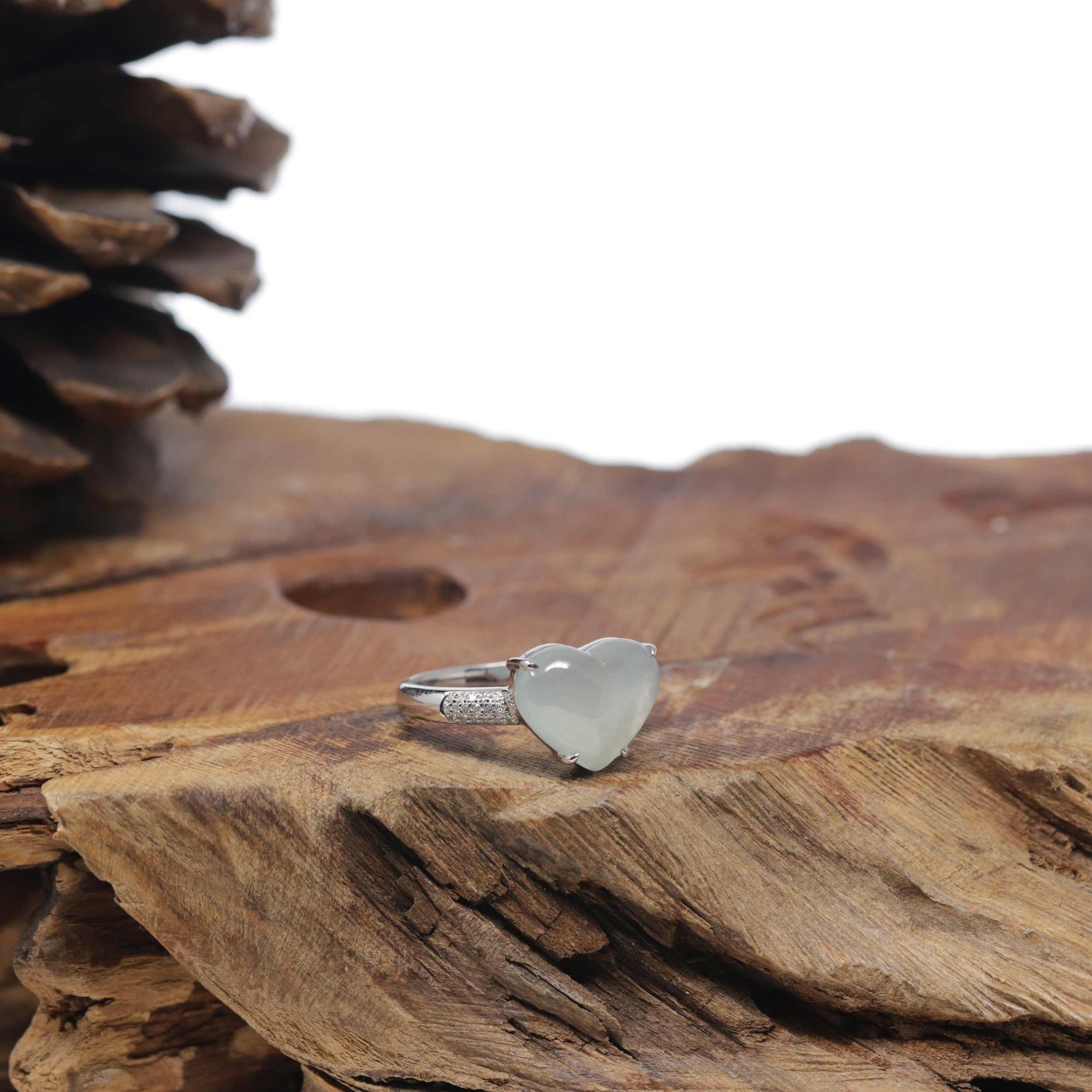Baikalla "Heart" 18k White Gold Natural Icy Light Green Burmese Jadeite Jade Ring #7