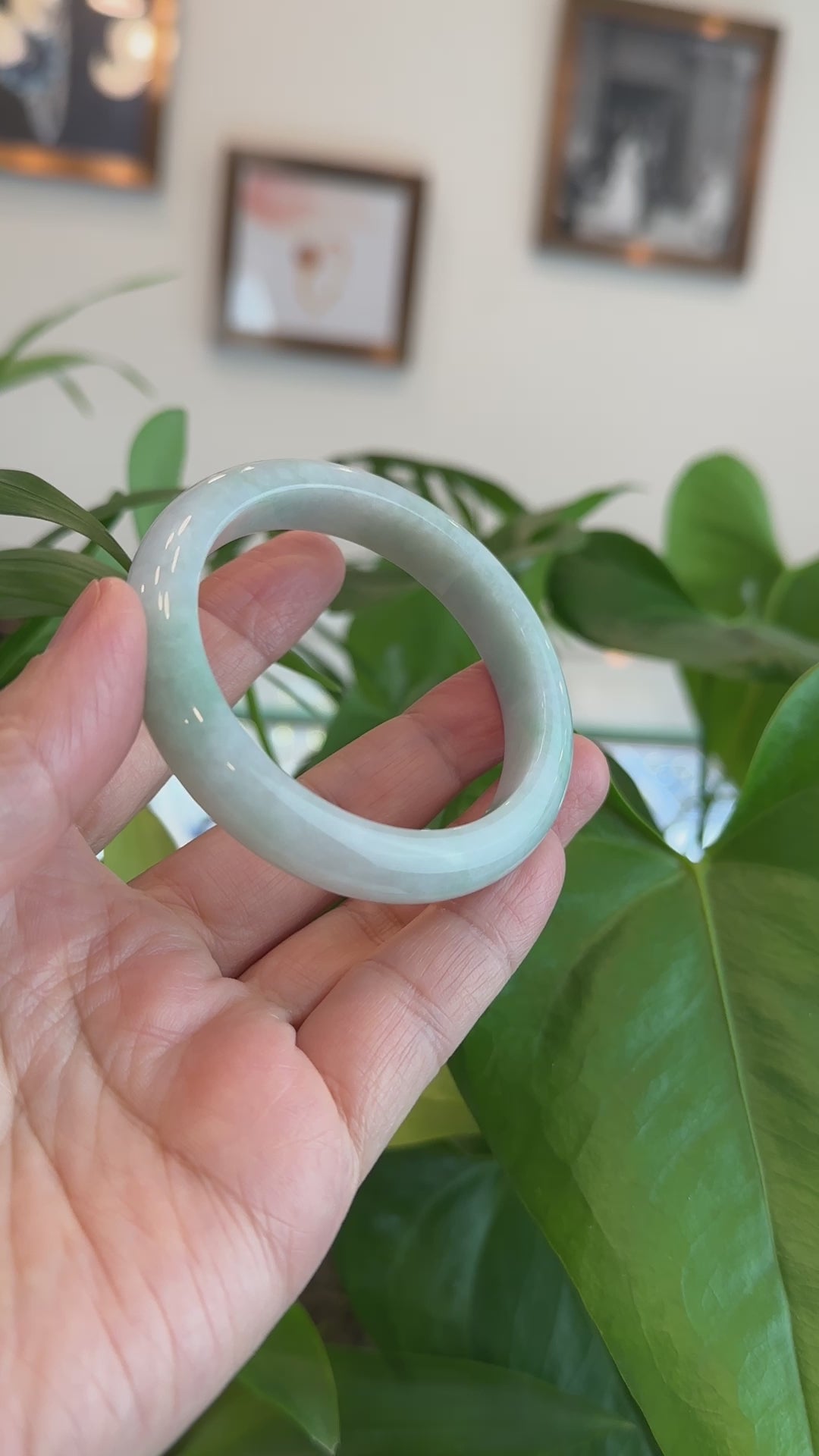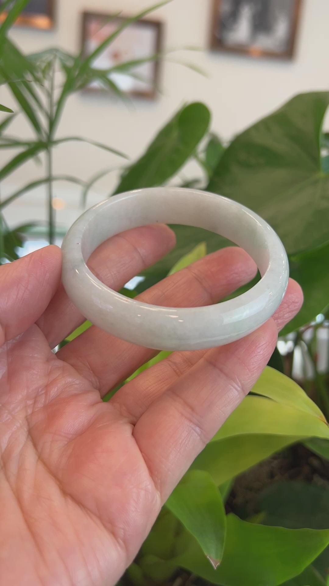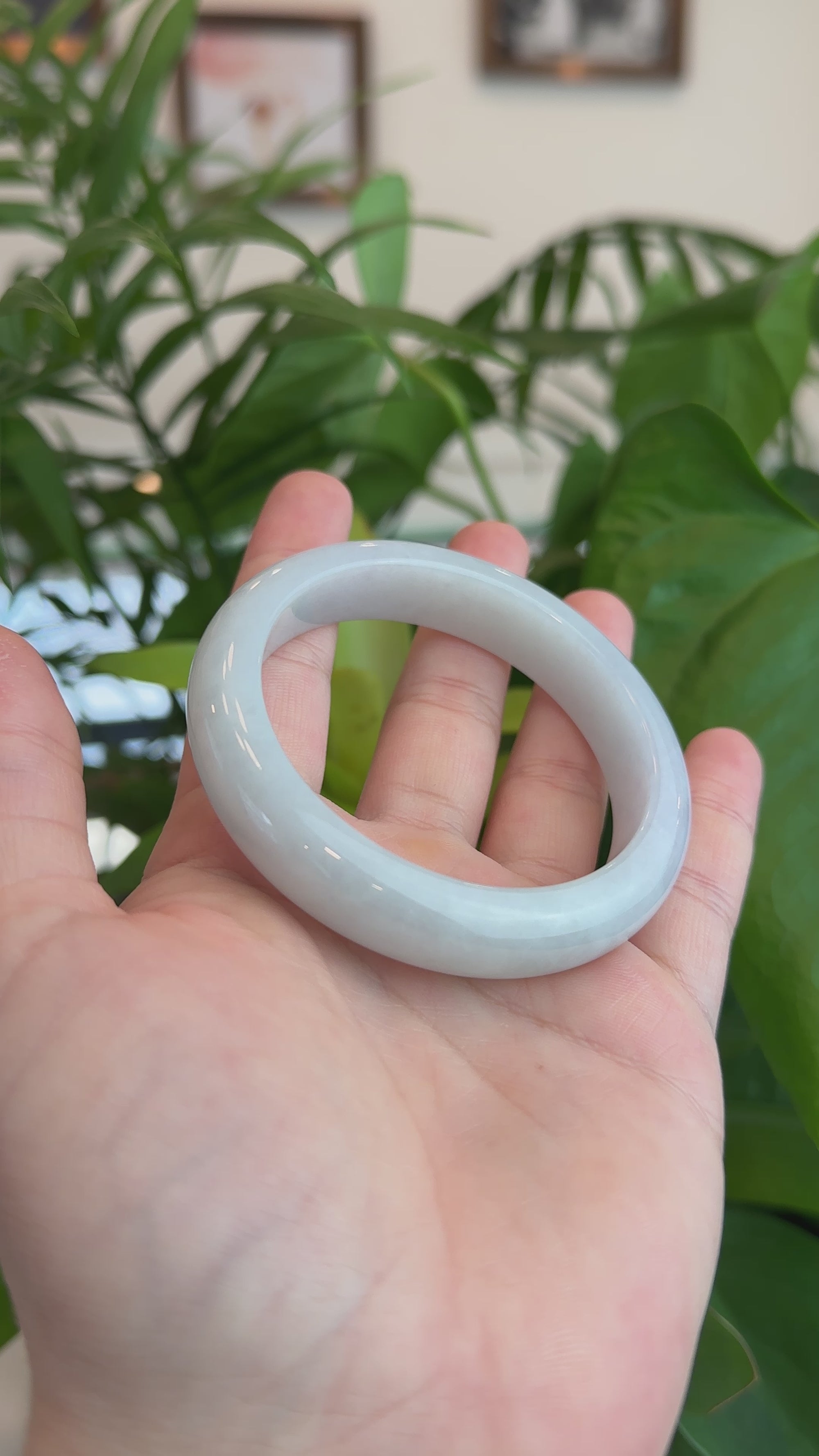 High-Quality Lavender-Green Natural Burmese Wider Jadeite Jade Bangle (57.46 mm) #430