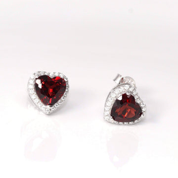 Baikalla™ Classic Heart Sterling Silver Natural Amethyst Citrine Garnet Earrings With CZ