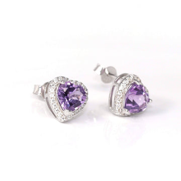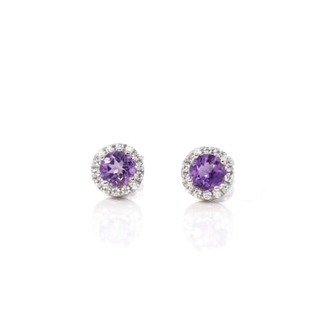 Baikalla™ Classic Sterling Silver Natural Amethyst Topaz Stud Earrings With CZ