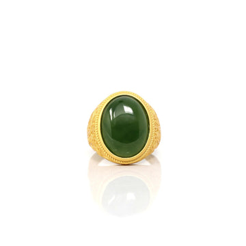 Baikalla™ "Classic Signet" Gold Plated Sterling Silver Real Green Jade Classic Men's Ring