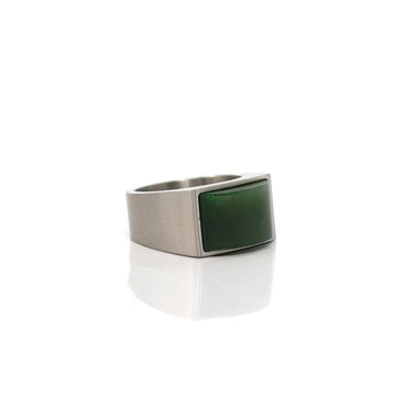 Baikalla™ "Signature Signet" Stainless Steel Real Green Nephrite Jade Classic Men's Band