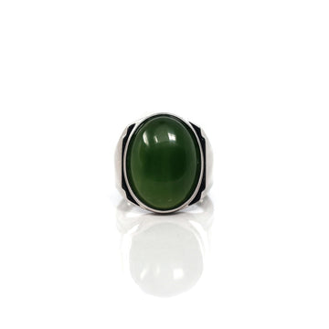 Explore silver jade ring, setting with natural jade, nephrite green jade, it's available for men  and women.