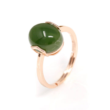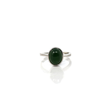 Baikalla™ "Classic Oval" Sterling Silver Real Green Nephrite Jade Classic Ring For Her