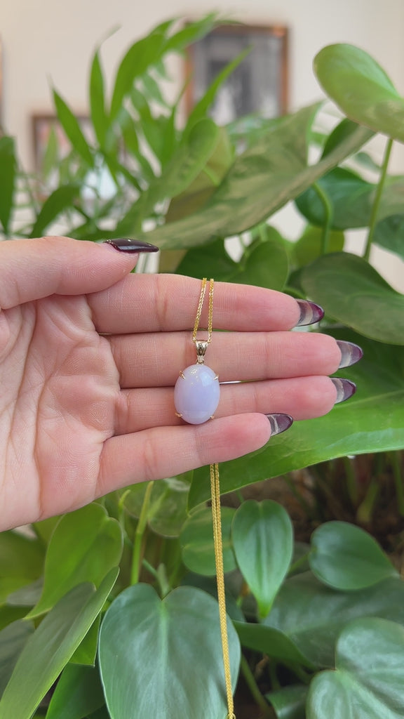 14K Gold Natural Lavender Burmese Jadeite Cabochon Necklace