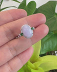 14k White Gold Natural Rich Lavender Oval Jadeite Jade Engagement Ring With Diamonds