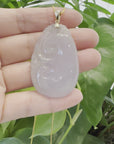 Baikalla Jewelry Jade Pendant Copy of Copy of Copy of 14k Yellow Gold Genuine Burmese Light Lavender Jadeite Happiness and Safety (Fu & Pingan) Pendant Necklace