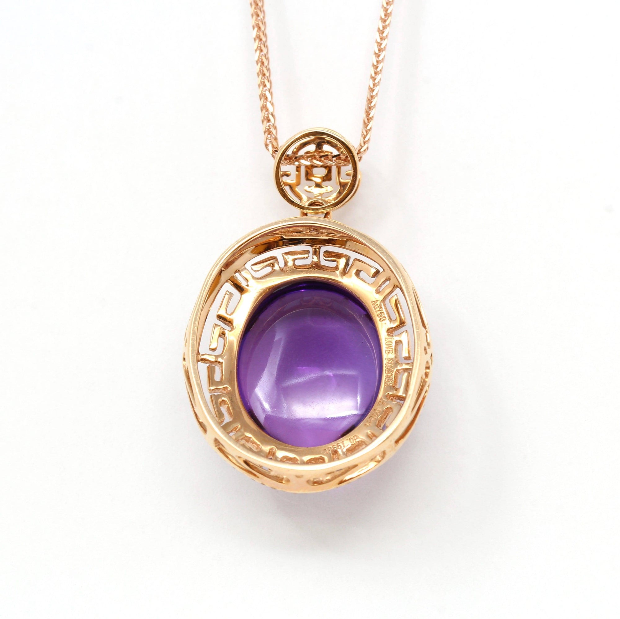 18k Rose Gold Genuine AAA Royal Amethyst Pendant Necklace