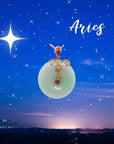18k Rose Gold Genuine Burmese Jadeite Constellation (Aries) Necklace Pendant with Tourmaline