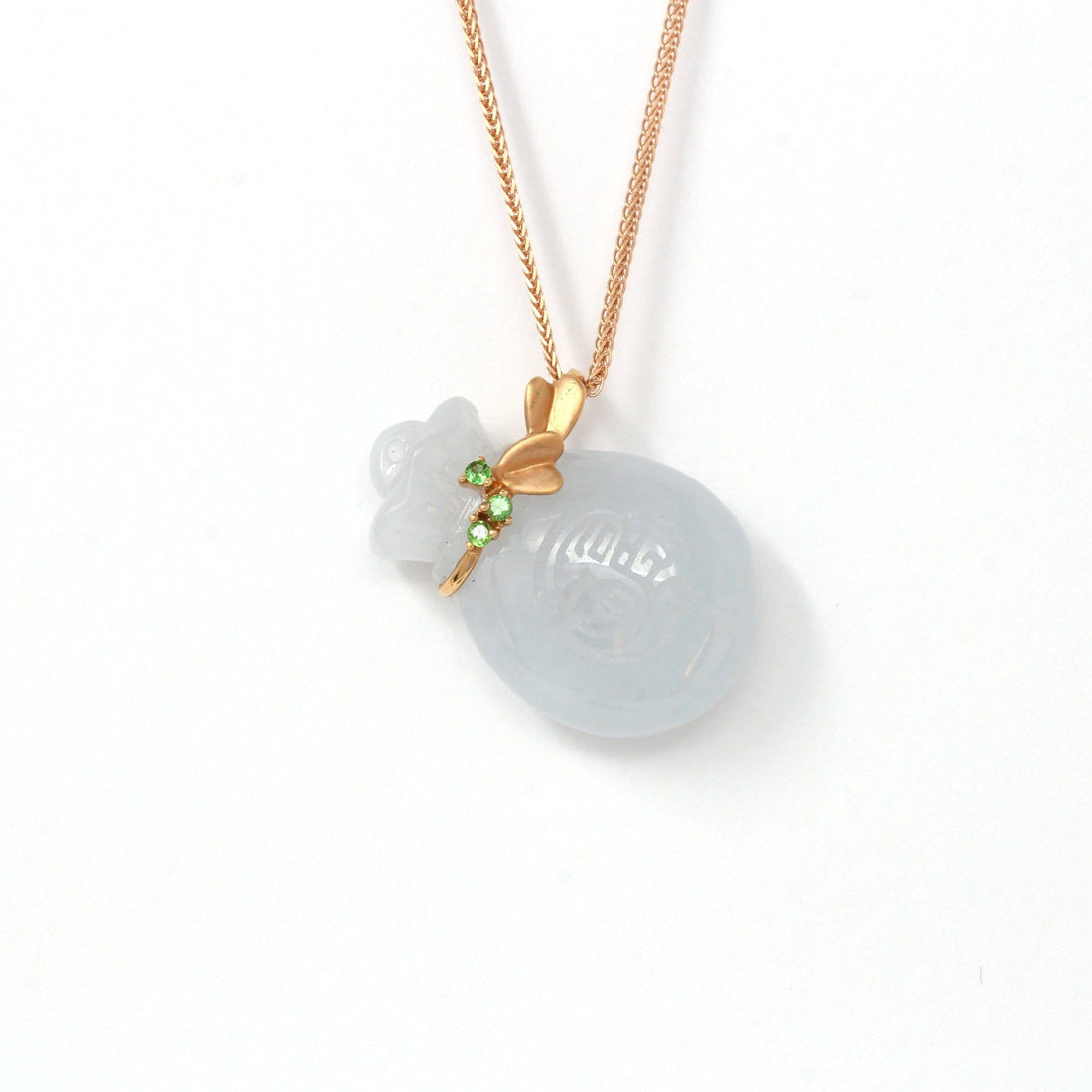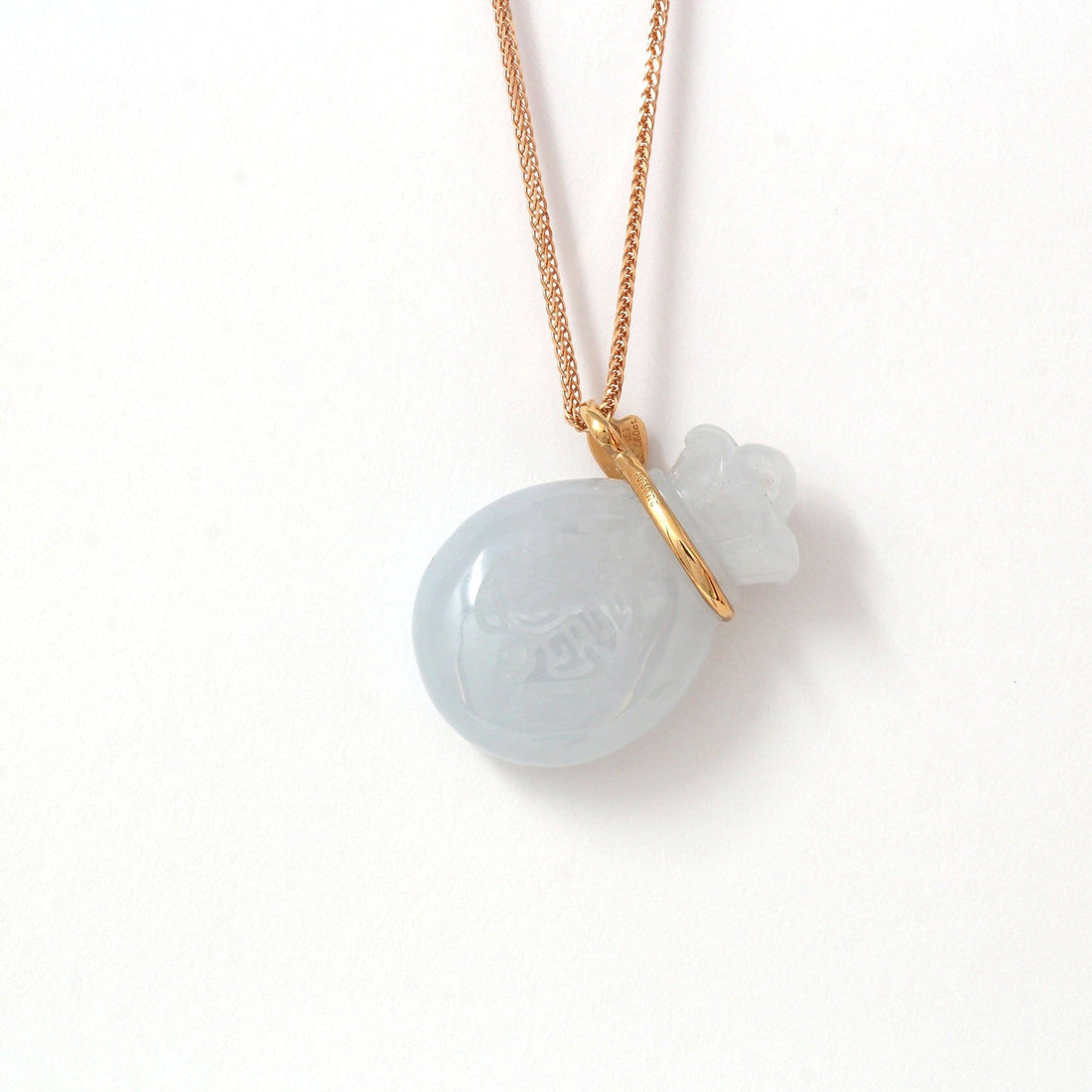 18k Rose Gold Genuine Burmese Jadeite Money Bag Pendant Necklace