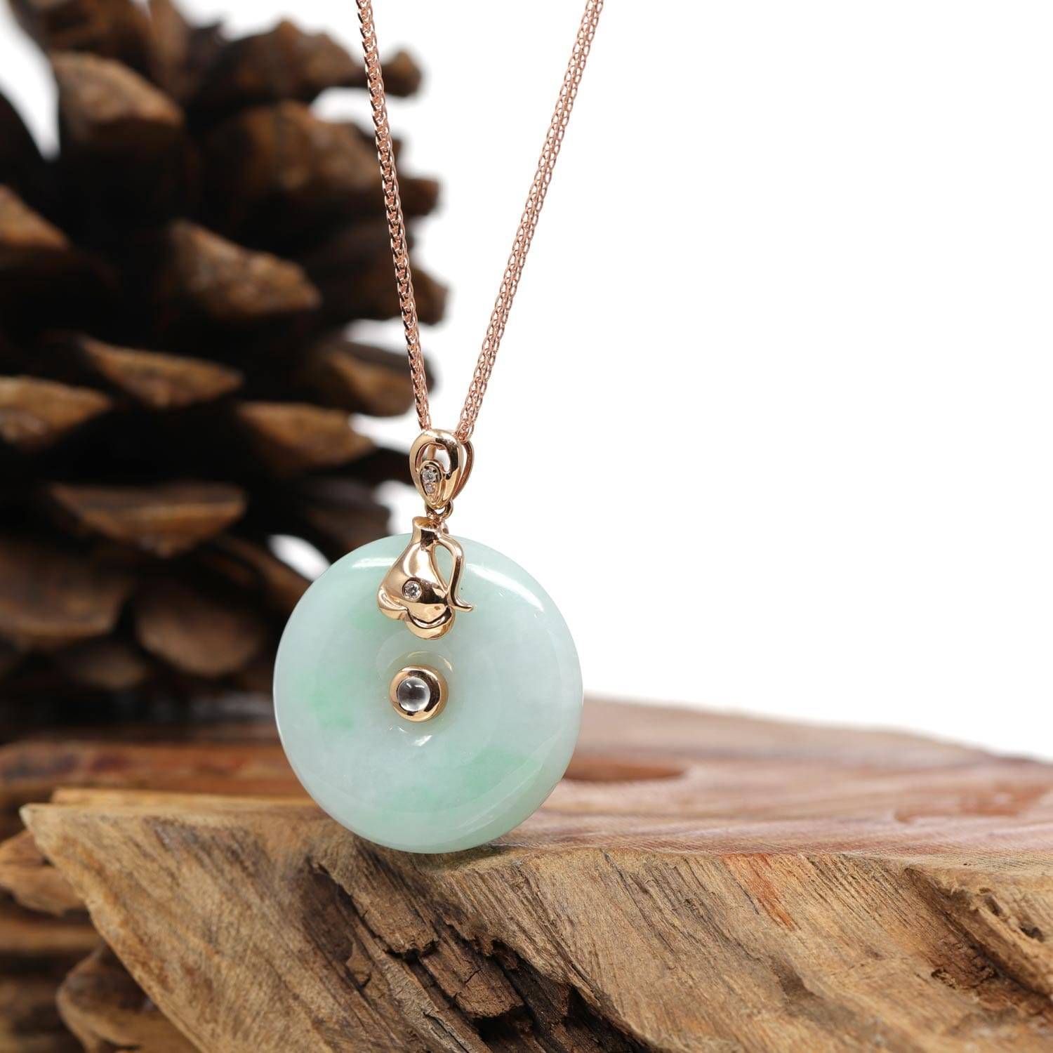 18k Rose Gold Genuine Jadeite Constellation (Aquarius) Necklace Pendant with Diamond