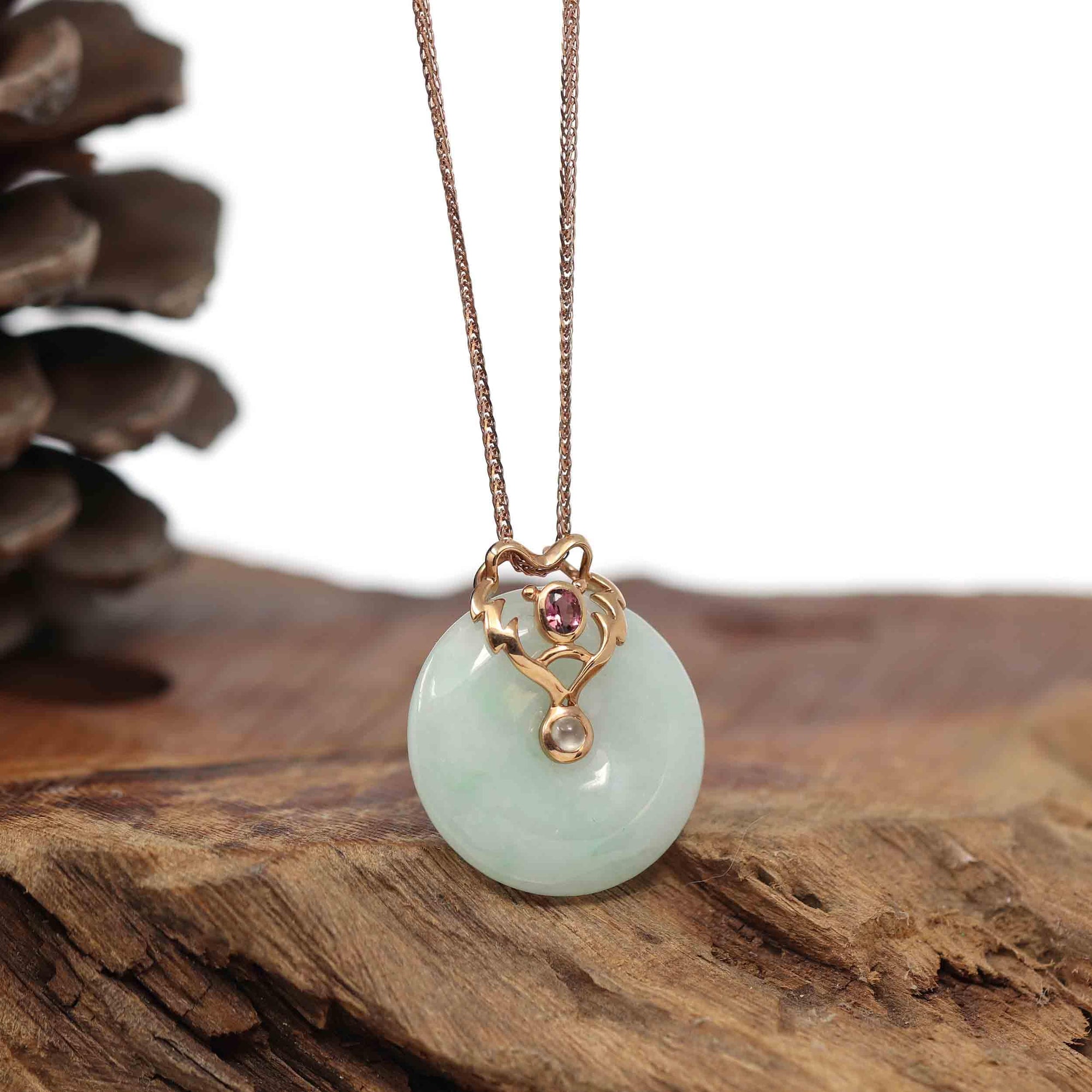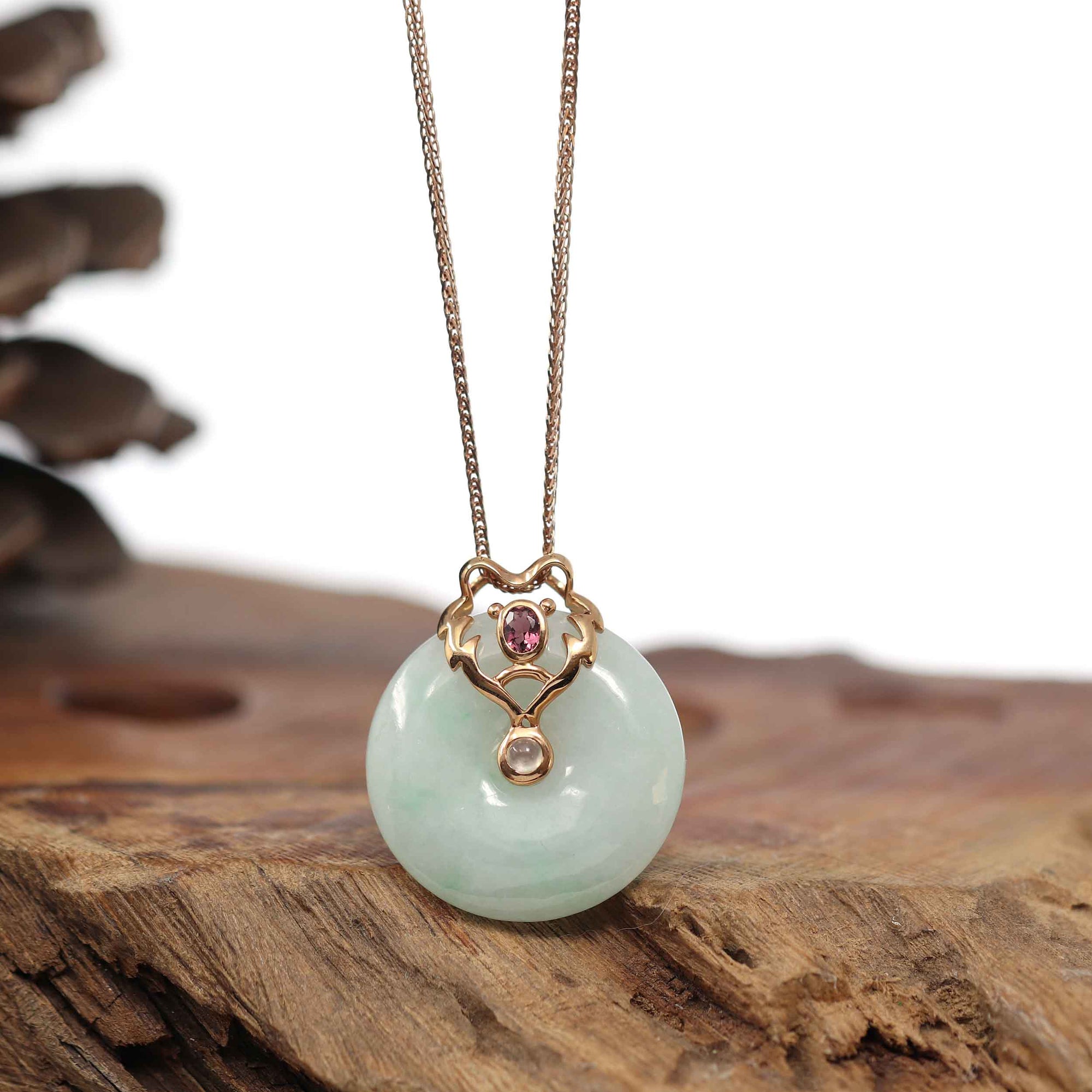 18k Rose Gold Genuine Jadeite Constellation (Leo) Necklace Pendant with Tourmaline