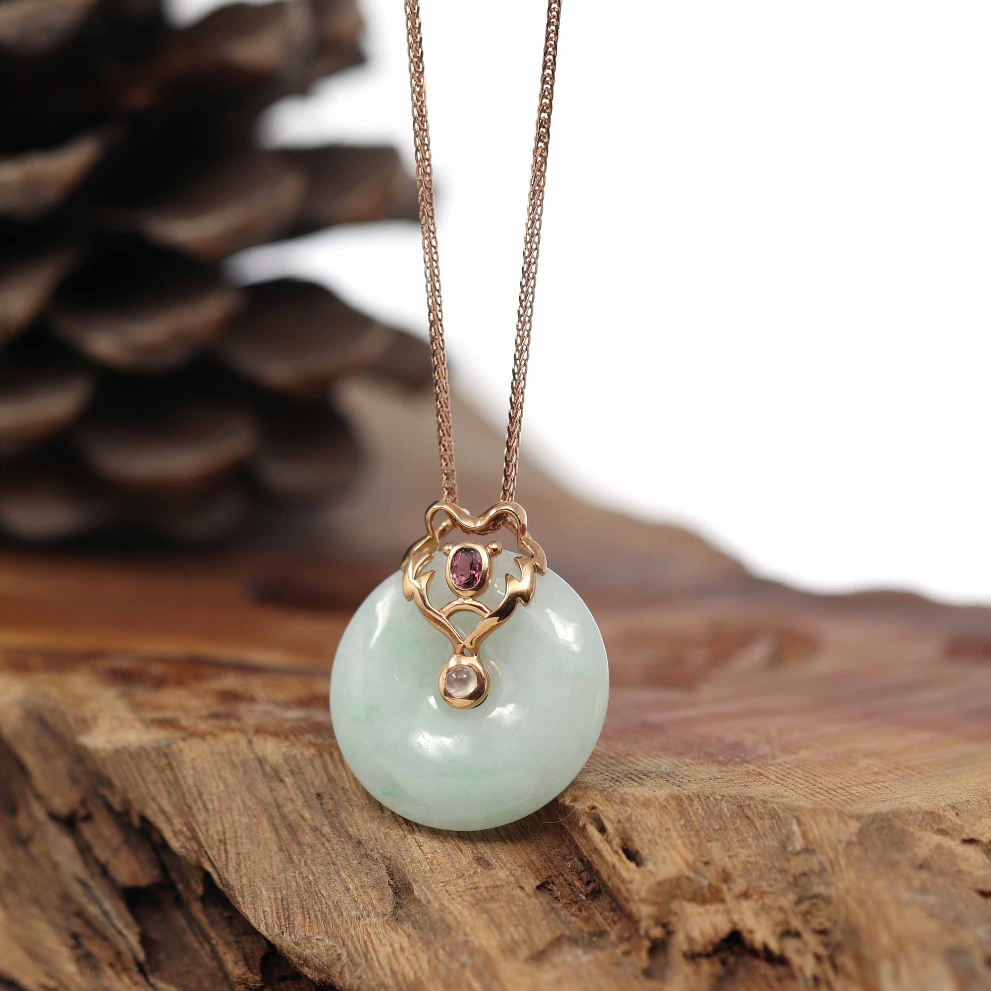 * INTRODUCTION--- Elevate your style with our 18k Rose Gold Genuine Jadeite Constellation Leo Necklace Pendant with AA Tourmaline, a stunning combination of elegance, astrological symbolism, and vibrant gemstone. The Leo constellation, representing strength and regal qualities, is intricately carved into this precious jadeite jade, celebrating the lion's noble spirit. Whether you are a Leo, or appreciate astrological symbolism, or simply admire the beauty of jadeite and tourmaline, this pendant is the perfect choice.