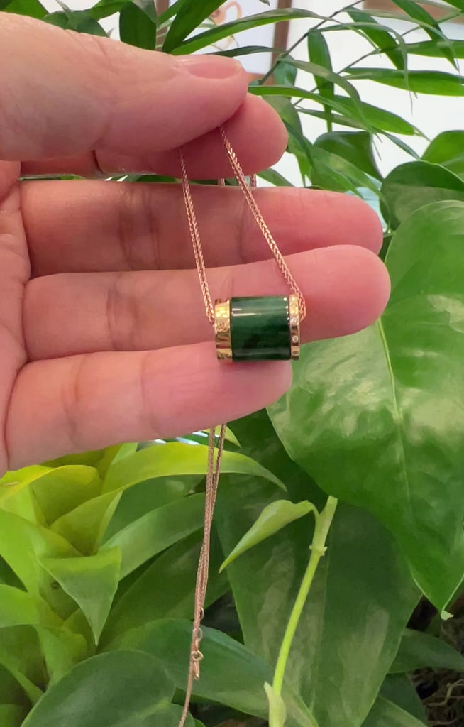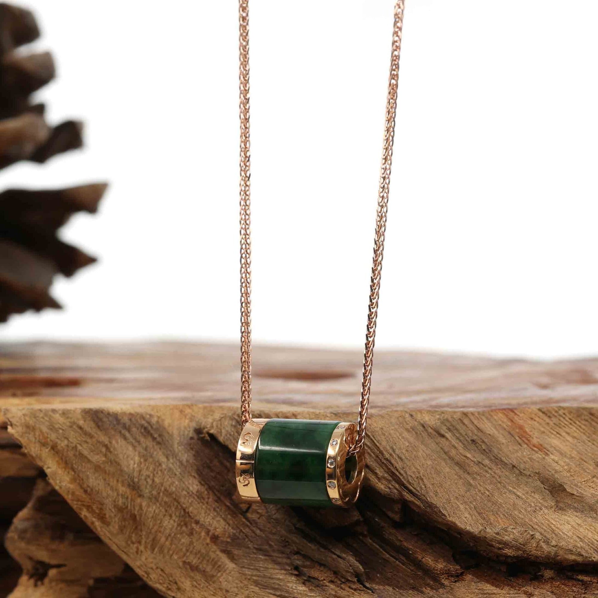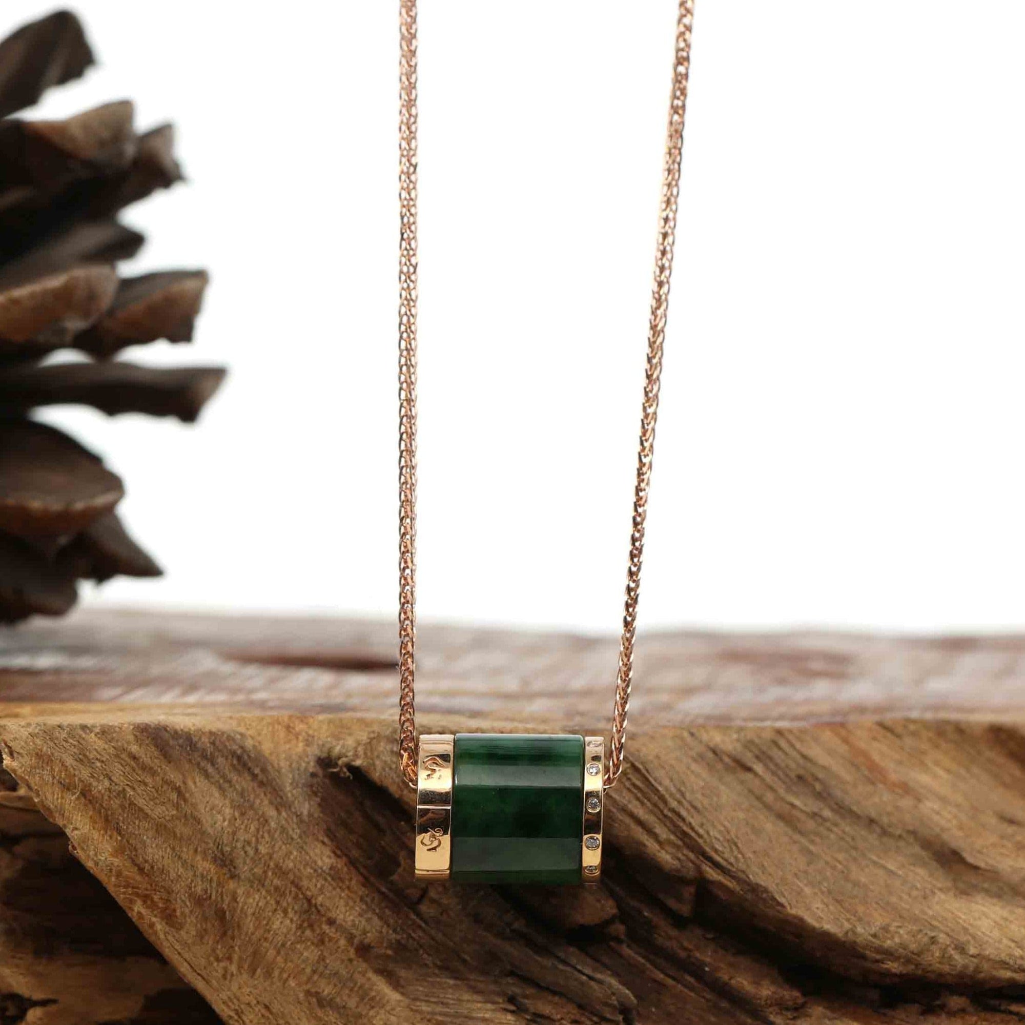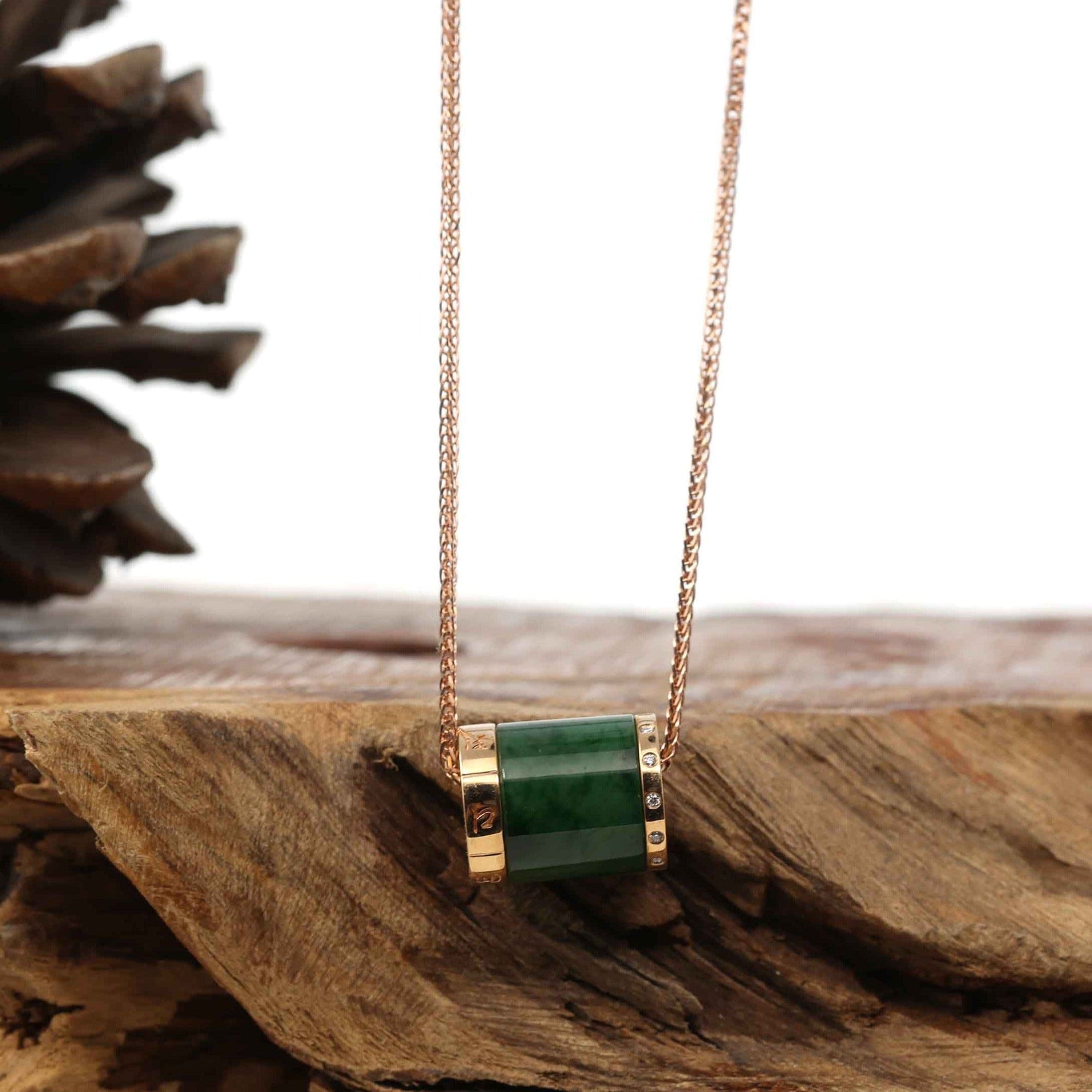 18k Rose Gold Jadeite Jade Diamond Pendant Necklace