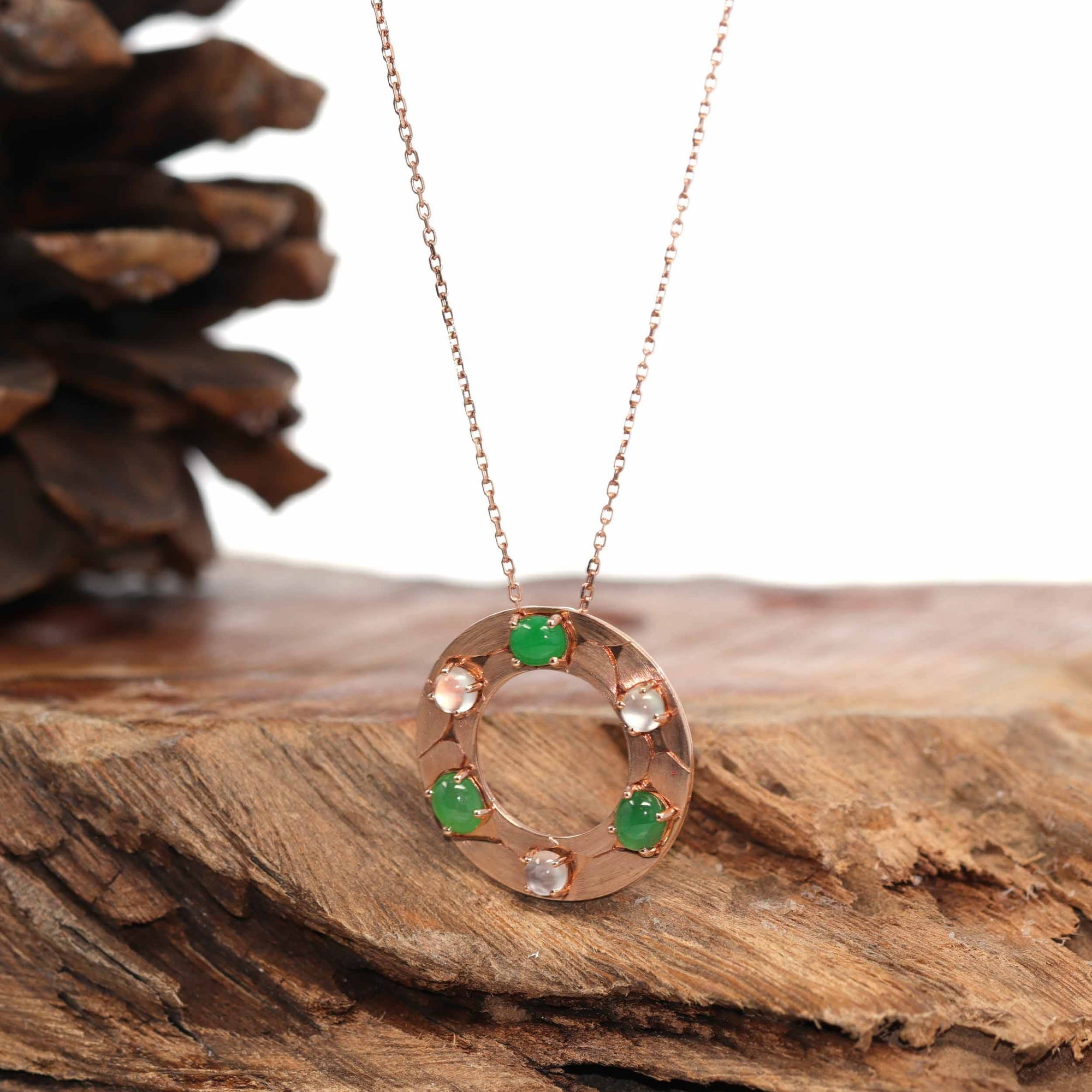 Baikalla Jewelry 18k Gold Jadeite Necklace 18K Rose Gold "Multi-Color Jadeite" Genuine Ice and Imperial Jadeite Jade Pendant with Diamonds