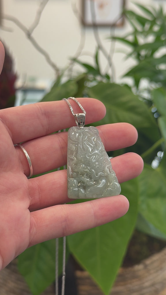 18k White Gold Genuine Burmese Ice Jadeite Jade Jade Dragon Necklace