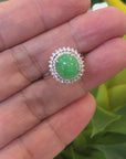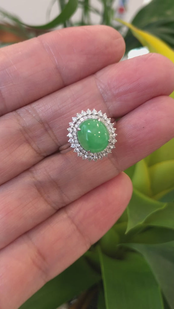 18k White Gold Natural Imperial Green Jadeite Jade Engagement Ring With Diamonds