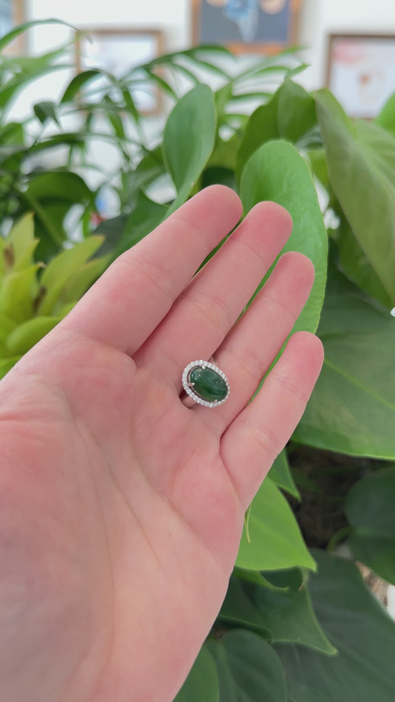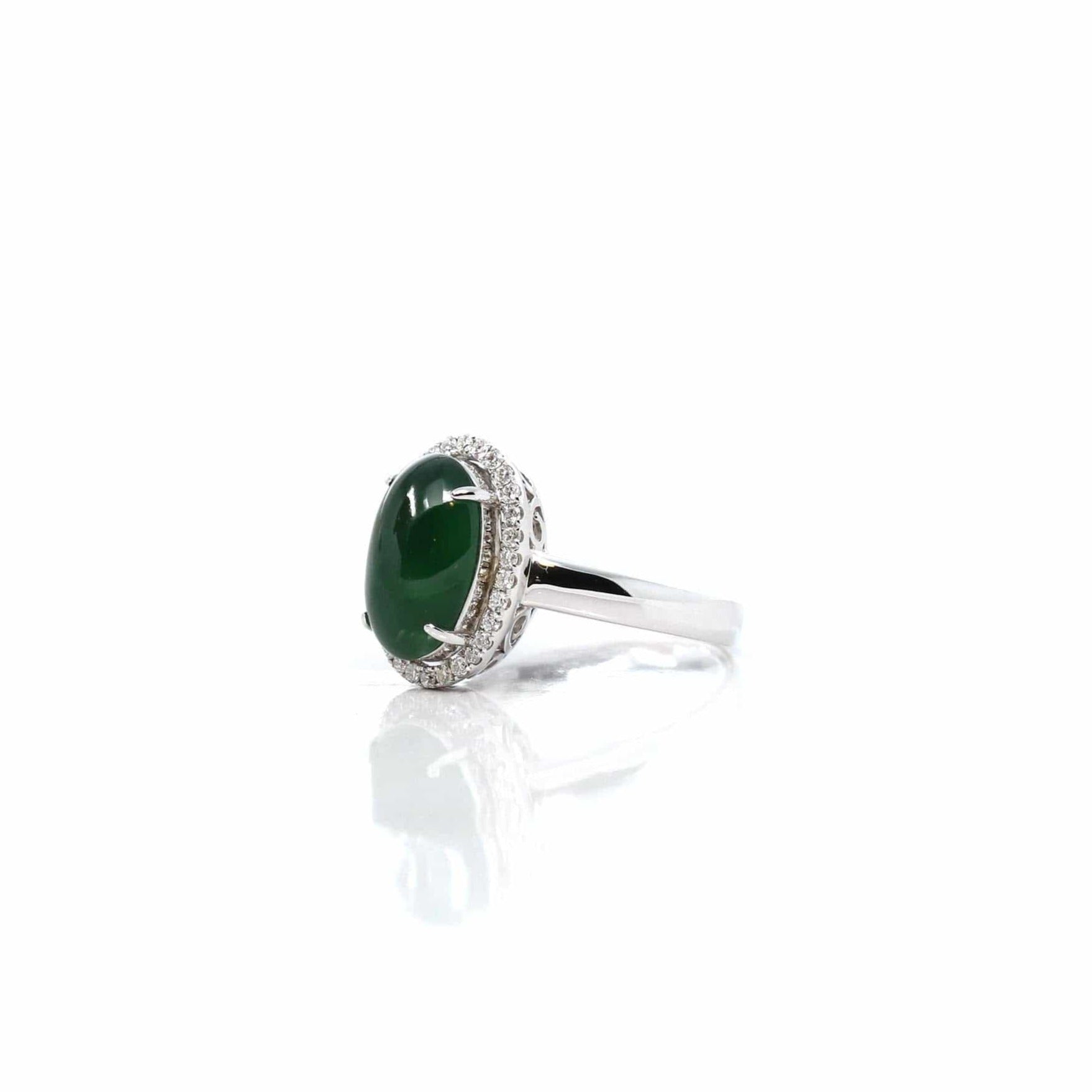 18k White Gold Natural Imperial Green Jadeite Jade Engagement Ring With Diamonds