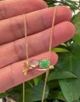 18k Yellow Gold Jadeite Jade Ginkgo Leaf Pendant Necklace with Diamond