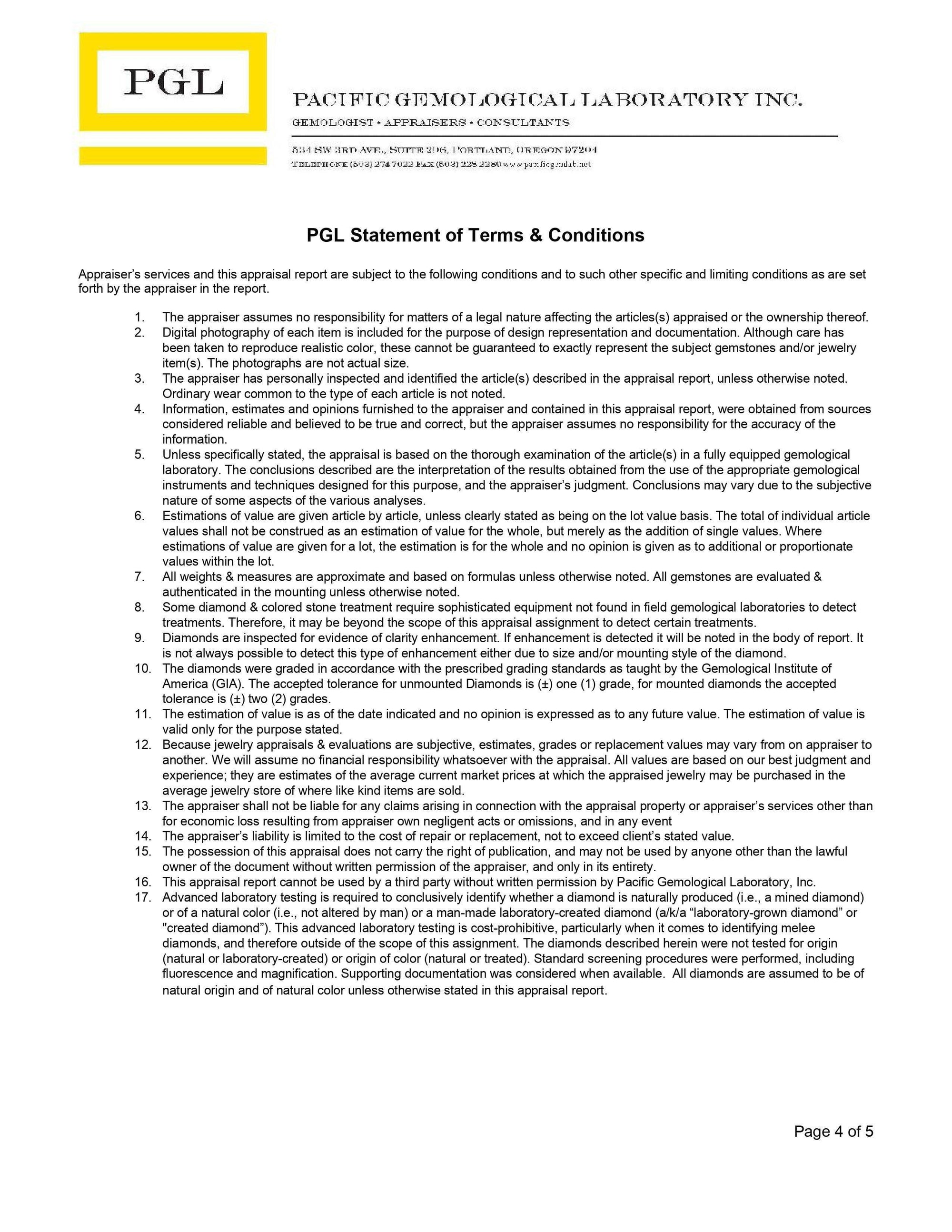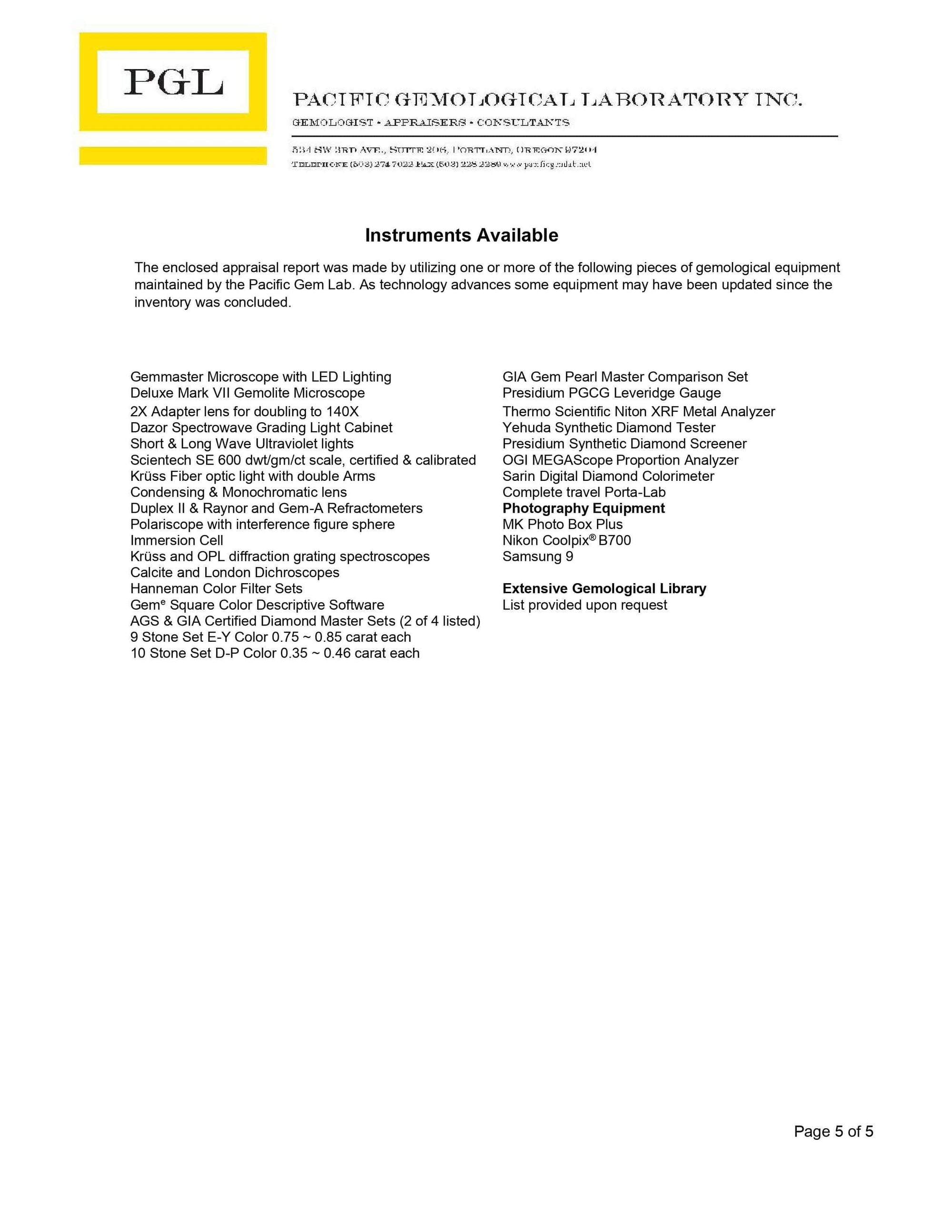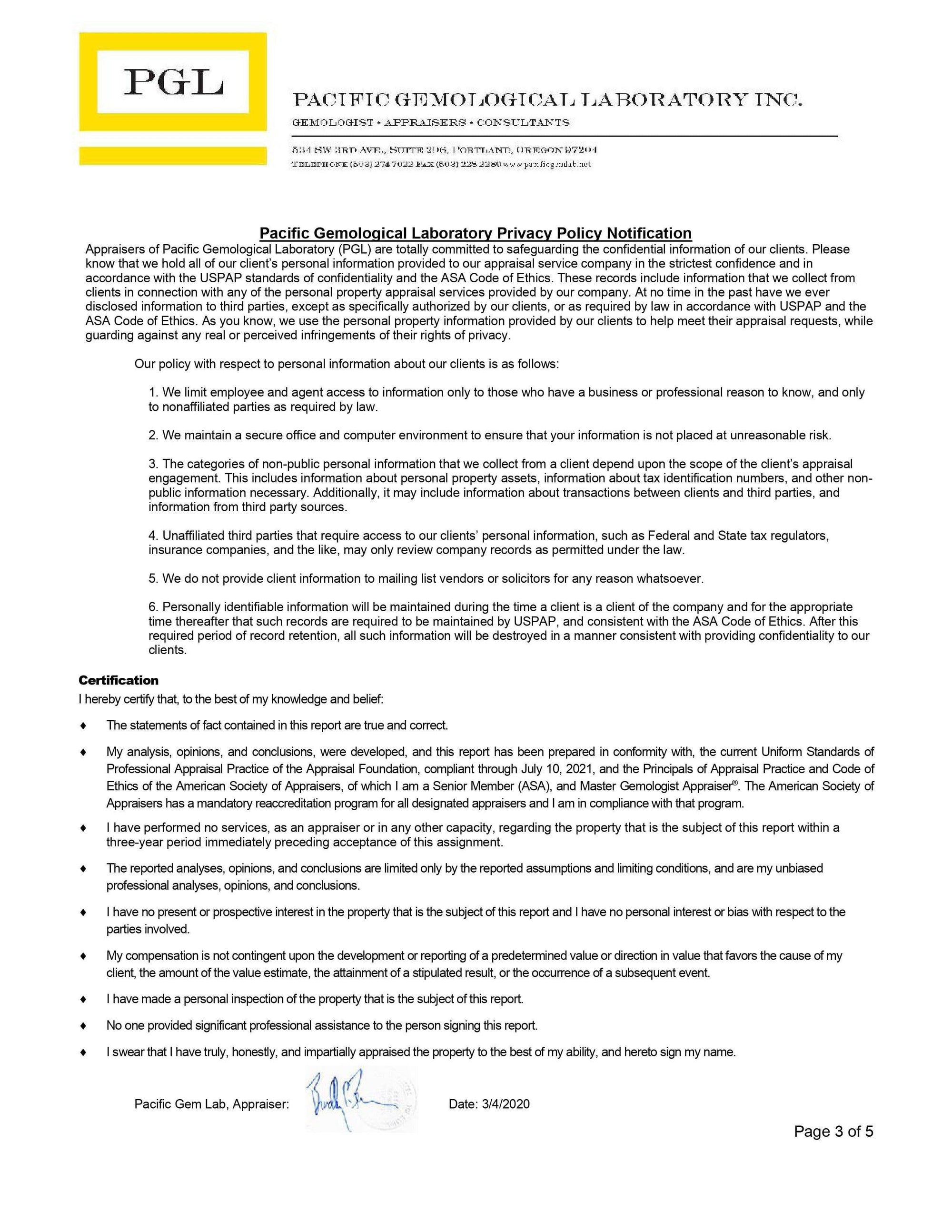 One professionally prepared appraisal by the Pacific Gem Lab, a very reputable lab right here in Portland, Oregon, USA.