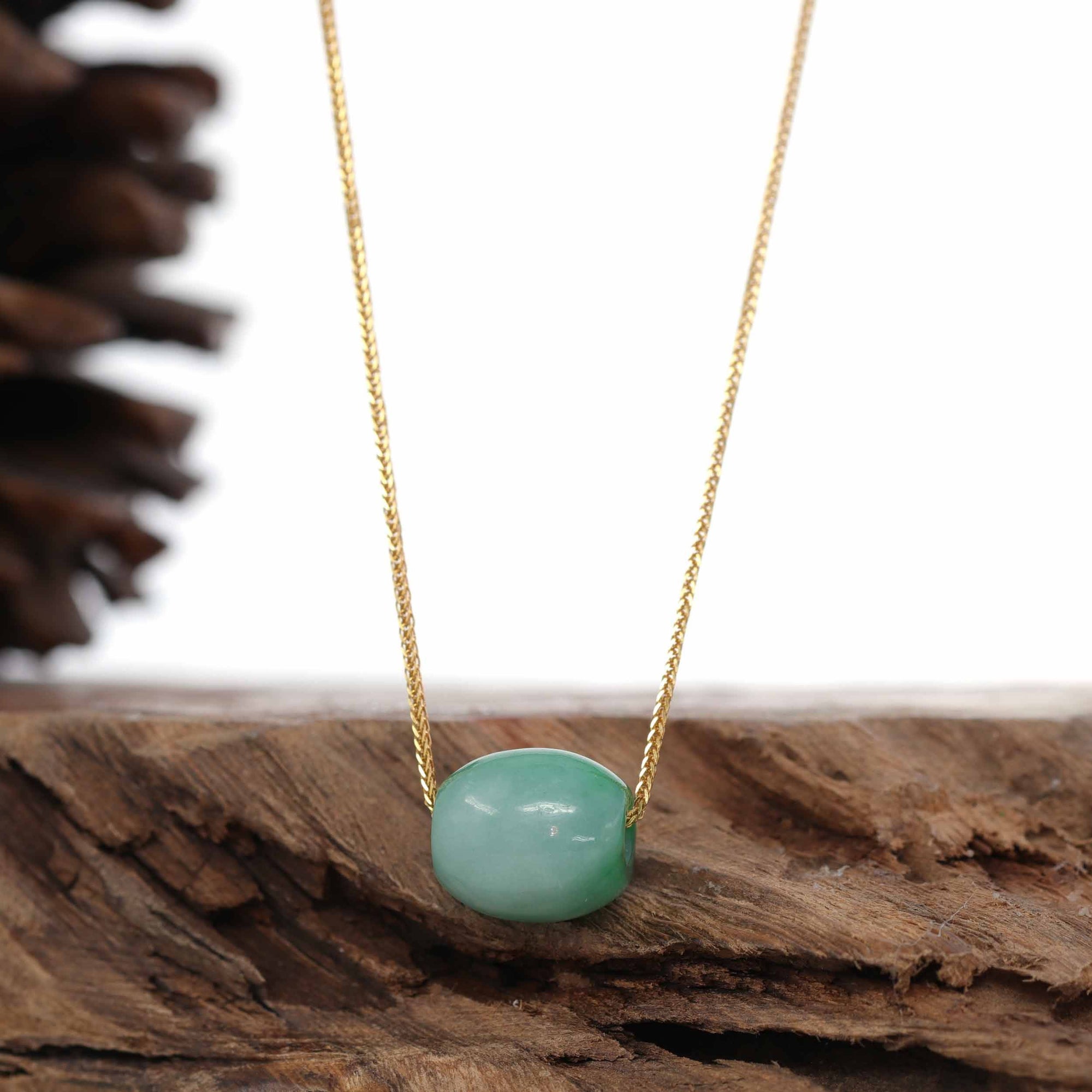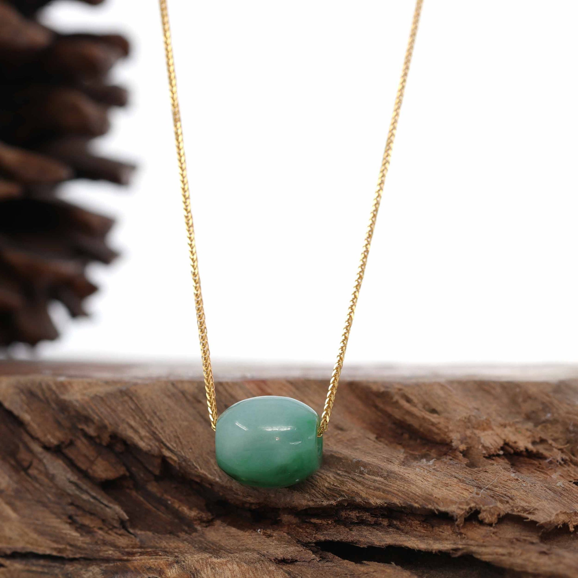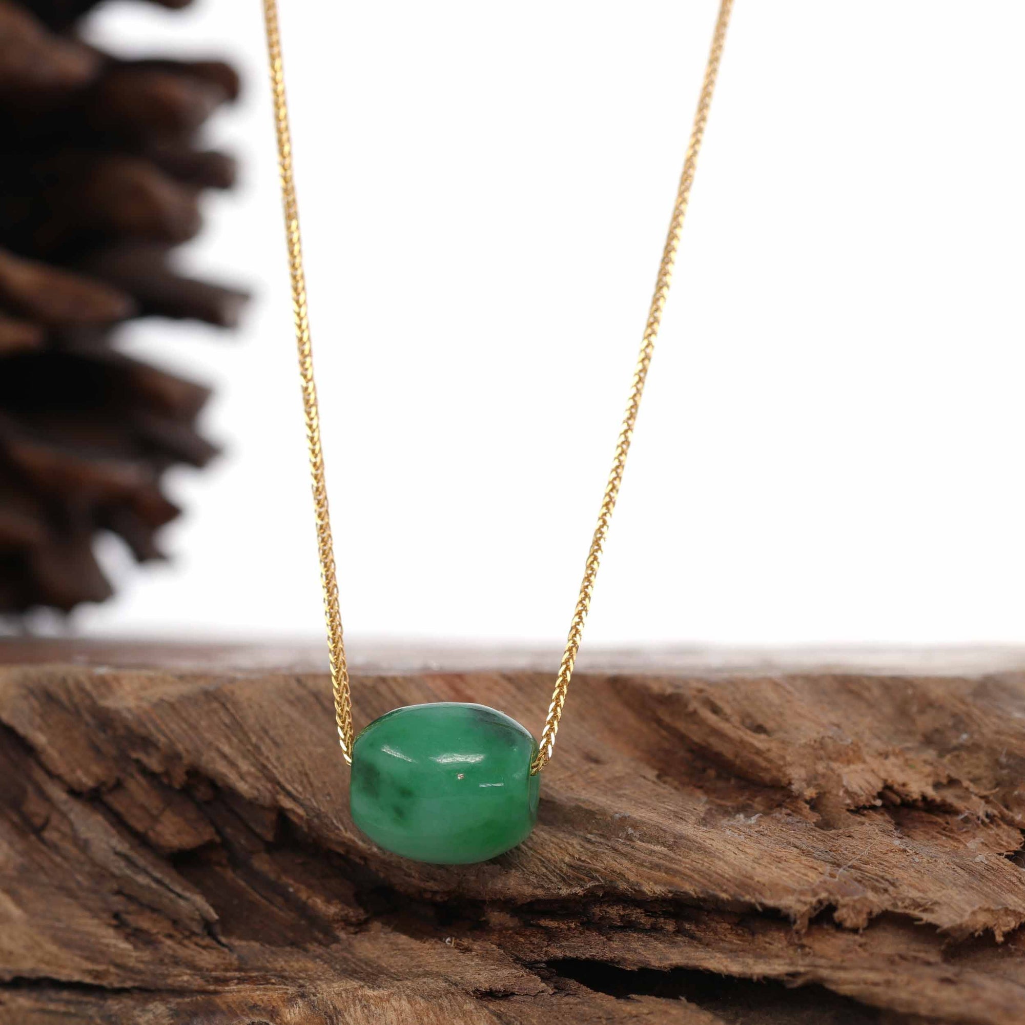 Design Concept--- The simple shape of a circle represents things such as happiness, wholeness, and prosperity. Or as Sotheby's auction house called a jade bangle. "Circle of Heaven". This necklace is made with very high-quality genuine rich forest green Burmese jadeite jade. Refined, exquisite. Very very slightly included. Gifting one of these is like wishing the best luck upon your family or loved ones. It's a perfect gift.