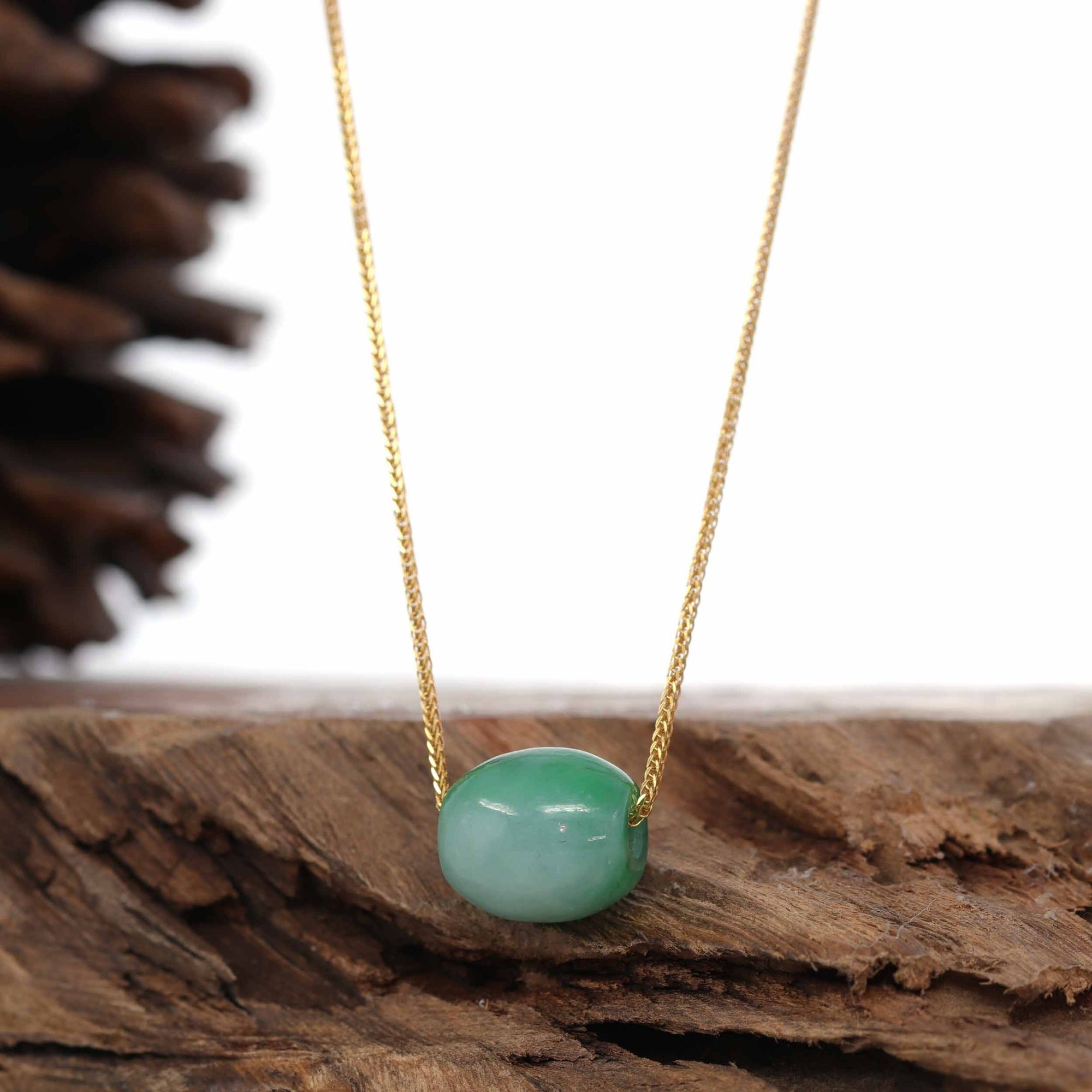 Baikalla™ "Good Luck Button" Necklace Rich Forest Green Jade Lucky TongTong Pendant Necklace