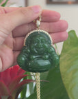 Baikalla™ "Laughing Buddha" Large 14k Yellow Gold Genuine Nephrite Green Jade Buddha Pendant