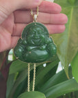 "Laughing Buddha" Large 14k Yellow Gold Genuine Green Jade Buddha Pendant