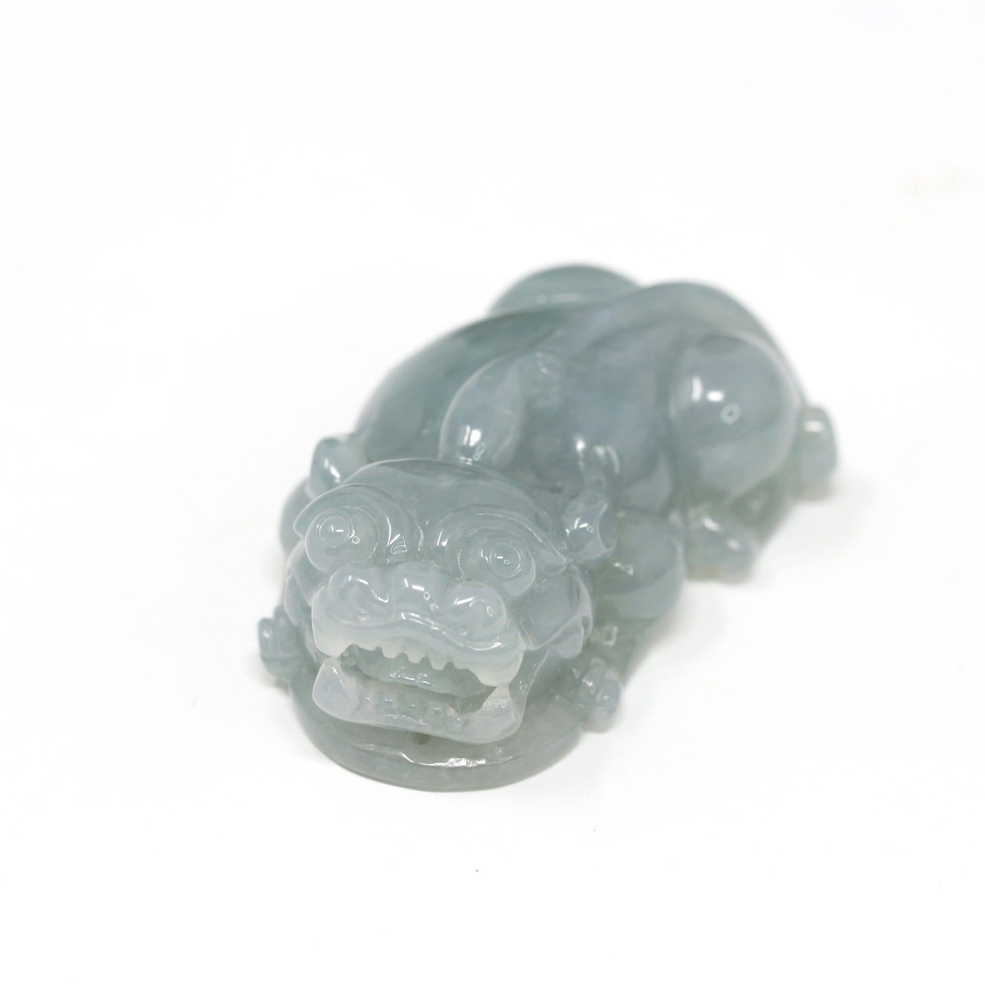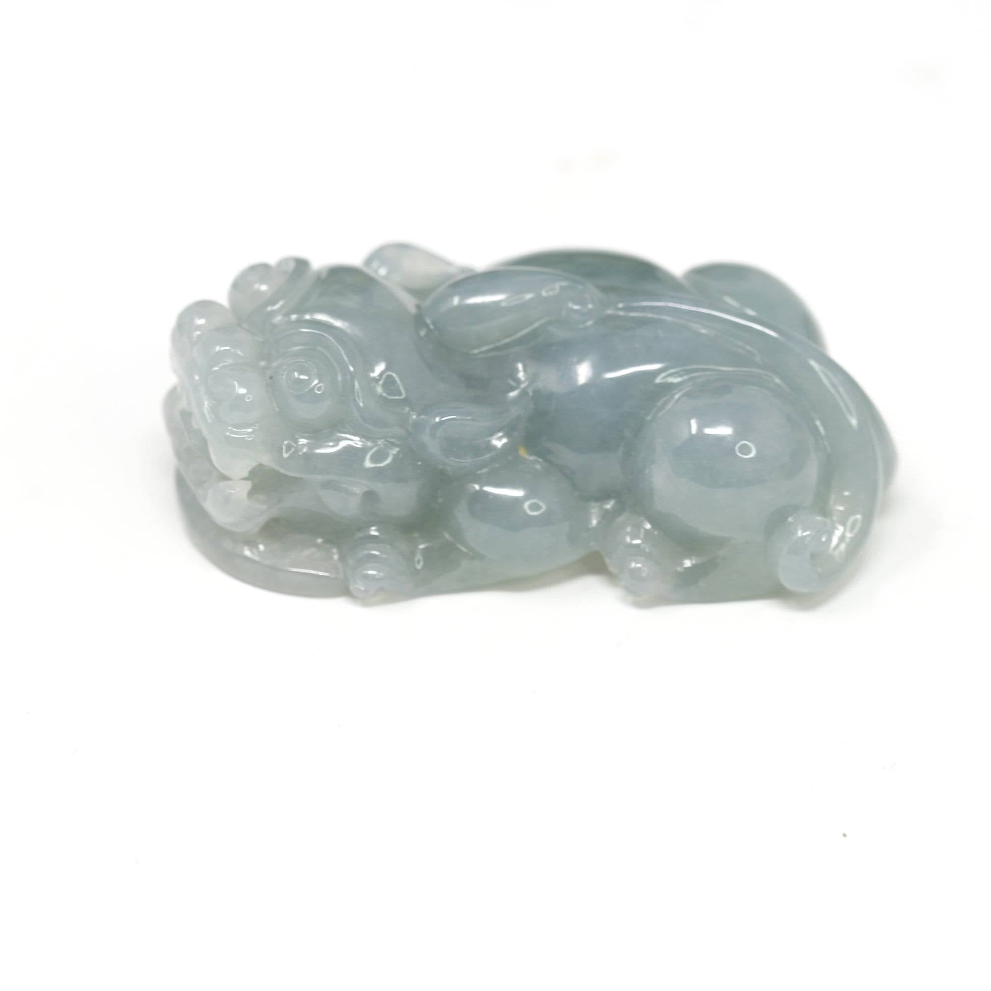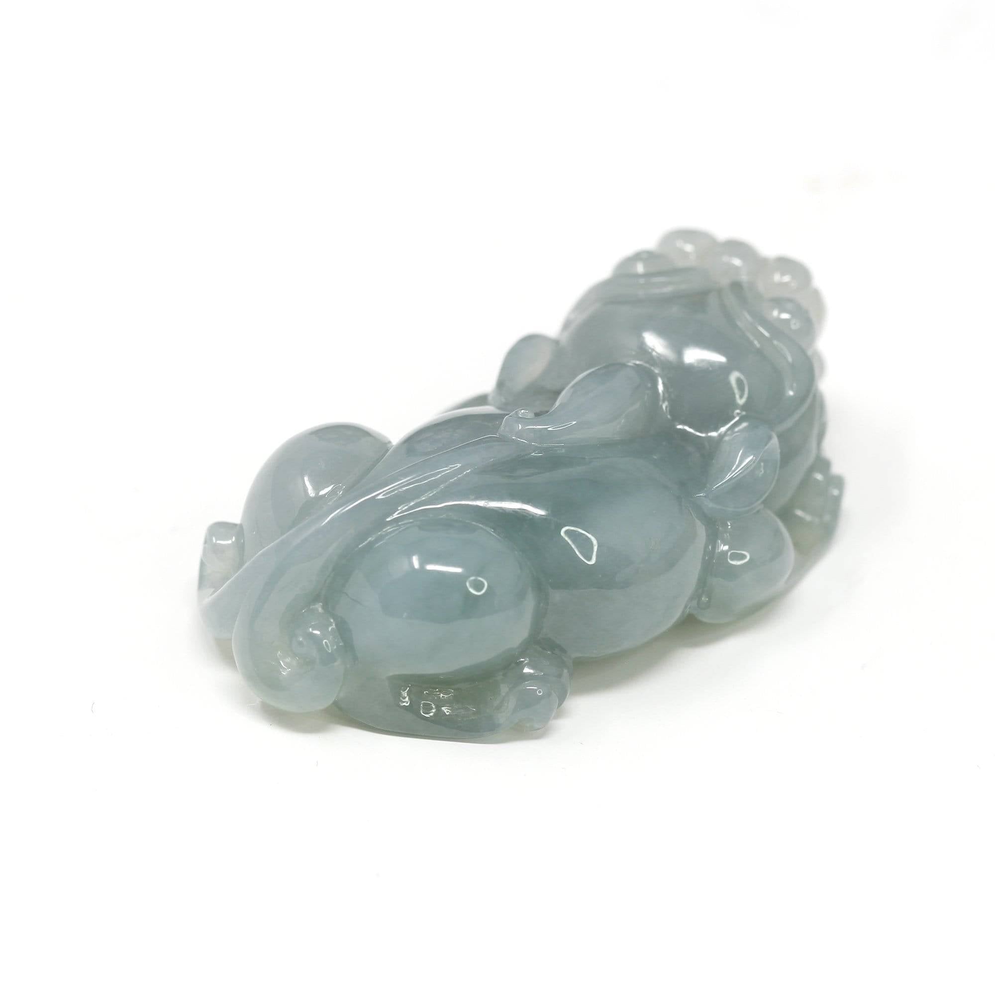 * DESIGN CONCEPT--- Genuine Jadeite Jade PiXiu Pendant Necklace. This pendant is made with very high-quality genuine ice jadeite, The jadeite texture is so smooth and transparence. It's very perfect with little clouds. The handcraft is spiritual, And the main PiXiu looks very exquisite with small lavender color. About PiXiu. they say PiXiu is a lucky animal, it's the dragon's ninth son, it's good at for money. So lots of people believe that it is "Zhao Cai Pi Xiu". This PiXiu is carving so nice, Every detail and angle is perfect. The whole piece is completely beautiful with perfect texture jadeite. It's a bigger size 45.6 * 24.1 mm for the collector. It's a very unique gift for yourself or your love.