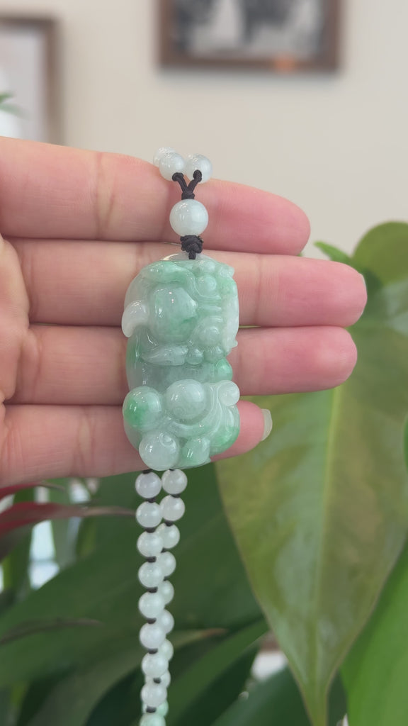 Baikalla™ Pi Xiu Genuine Burmese Lavender Green Jadeite Jade PiXiu Pendant Necklace (FengShui Lucky)