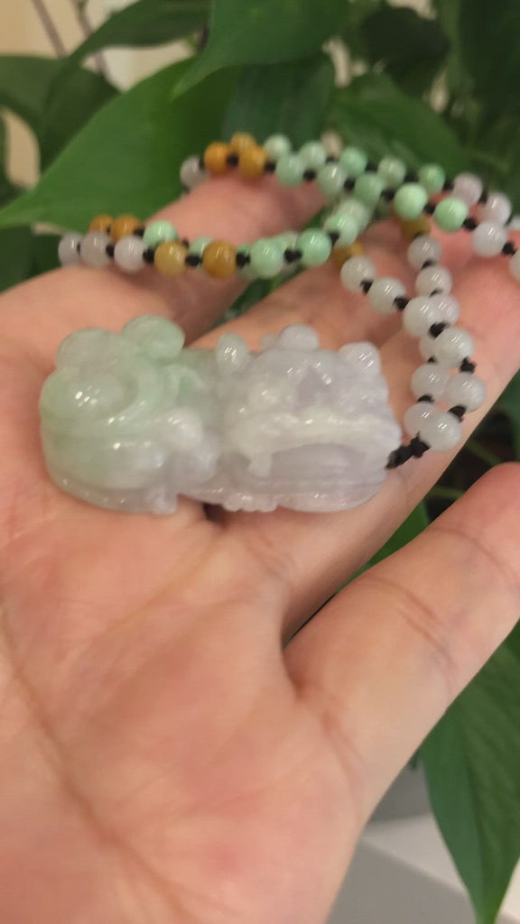 * DESIGN CONCEPT--- Genuine Jadeite Jade PiXiu Pendant Necklace, meticulously crafted from authentic lavender green jadeite jade. This pendant showcases a smooth and transparent texture, emphasizing its high quality. The main PiXiu centerpiece features exquisite patches of lavender green color, symbolizing luck and prosperity. Meticulous carving ensures every detail is perfected, making it a beautiful and meaningful piece for yourself or your loved ones.
