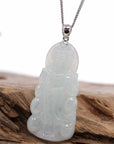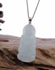 *Design concept--- Made with genuine Burmese ice-blue jadeite jade. The excellent craftsmanship portrays the "goddess of compassion", the Guan Yin. The handcraft is stunning. This particular necklace has amazing translucency, with a very special icy color matrix. Great size for both men and women.