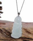 Baikalla 14k White Gold "Goddess of Compassion" Genuine Ice Burmese Jadeite Jade Guanyin Necklace With Gold Bail